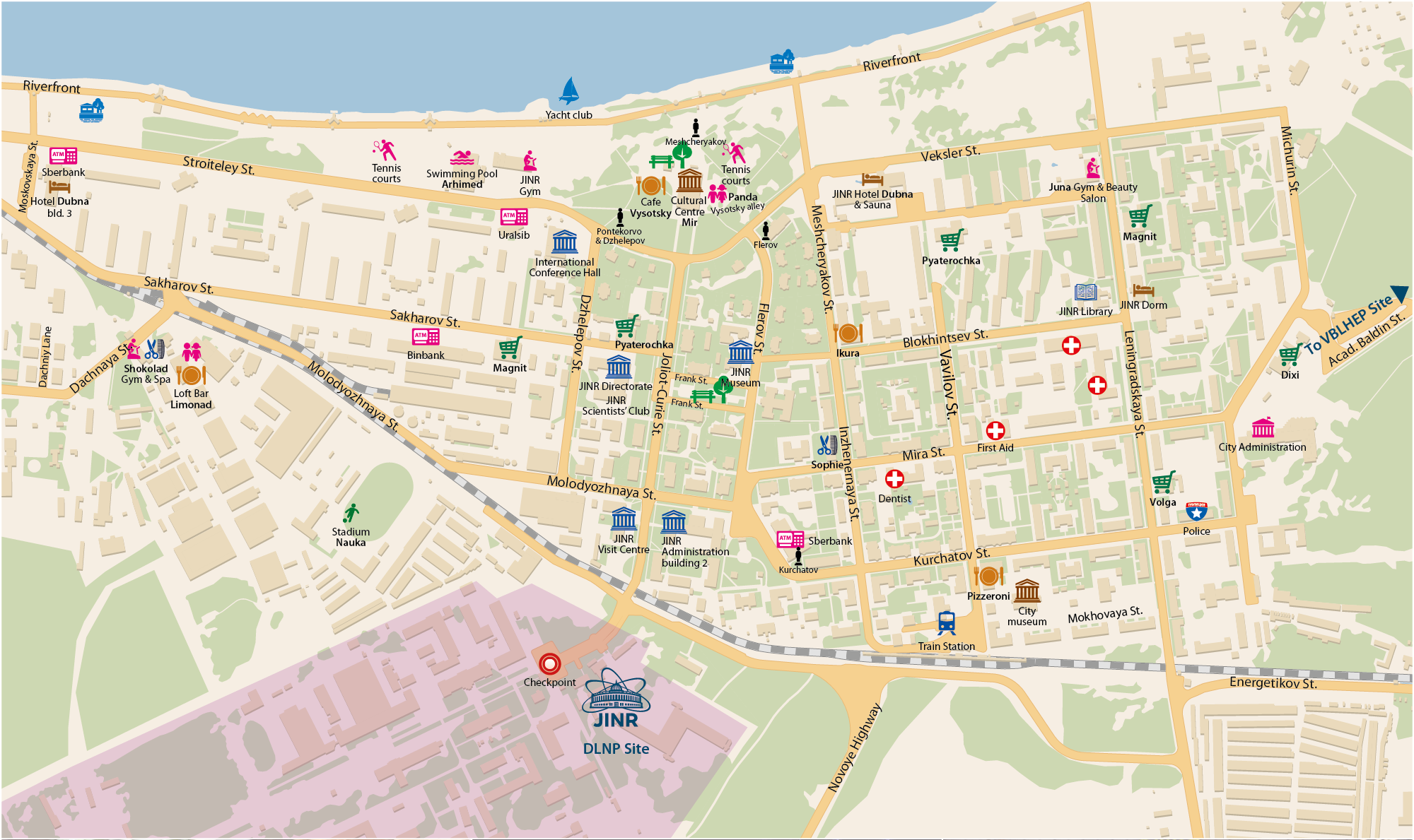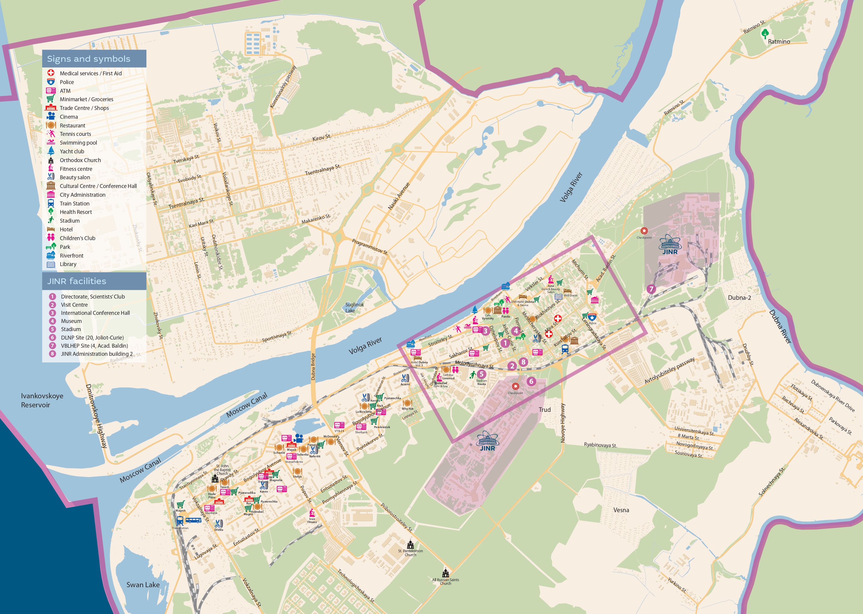 Освоиться в ОИЯИ и Дубне также может помочь общественный проект, содержащий справочную информацию для гостей ОИЯИ и Дубны: транспорт, развлечения, спорт и все, что нужно для жизни в Дубне. А также специальные предложения для сотрудников и гостей ОИЯИ.