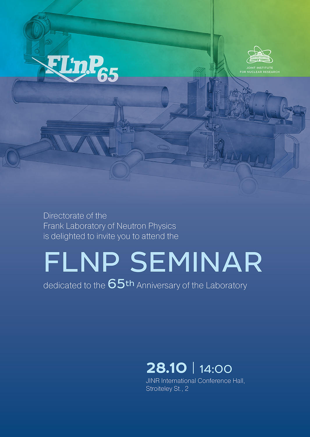 On Friday, 28 October 2022 anniversary seminar dedicated to the 65th anniversary of the Frank Laboratory of Neutron Physics will be held in the International Conference Centre.