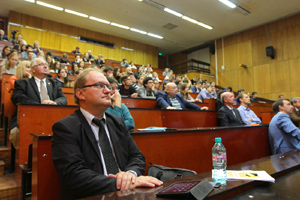 Студентов и аспирантов Казанского университета приветствовал директор Института Физики КФУ С.И. Никитин, проректор по образовательной деятельности КФУ Д.А. Таюрский, Председатель оргкомитета симпозиума Ю.Э. Пенионжкевич и Председатель оргкомитета школы С.З. Пакуляк. В первый день участники школы прослушали ряд лекций по современной ядерной физике, а также узнали о деятельности и направлениях исследований ОИЯИ, а именно о синтезе сверхтяжелых элементов в Лаборатории ядерных реакций ОИЯИ, об экспериментах с экзотическими ядрами, проводимых в ОИЯИ, о проекте формата мегасайенс NICA – сверхпроводящем коллайдере тяжелых ионов, строящемся в ОИЯИ для изучения барионной материи и загадок мироздания, о нейтринной программе в Лаборатории ядерных проблем, о физике конденсированного состояния вещества, исследованиях и экспериментах, проводимых на реакторе ИБР-2 в Лаборатории нейтронной физики ОИЯИ, и ядерном материаловедении.