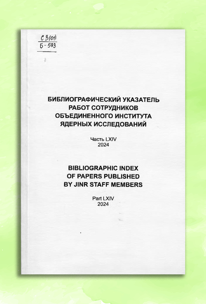 The first issue of the Bibliographic Index was published in 1966, covering papers by JINR employees for ten years (1956-1966). It is currently released annually. Bibliographic Indexes of previous years are available in digital form on the home page of the JINR Science and Technology Library website in Services.