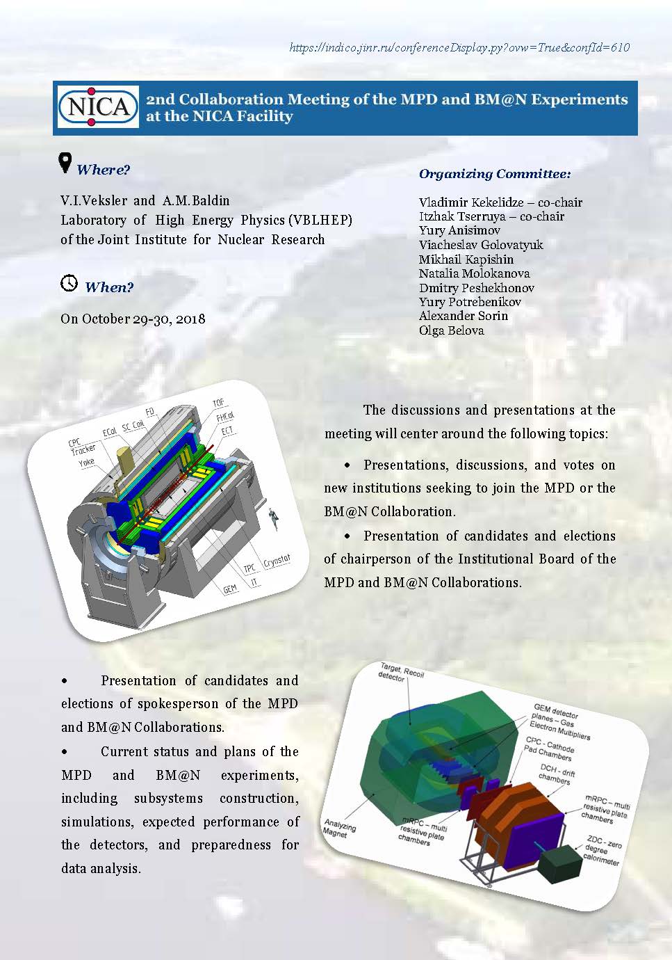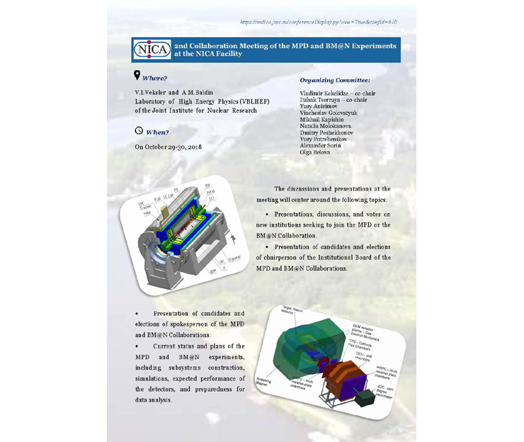 The 2nd Collaboration Meeting of the MPD and BM@N Experiments at the NICA Facility will be launched on 29 October 2018. The Meeting will continue for two days and will be held in the Veksler and Baldin Laboratory of High Energy Physics JINR.