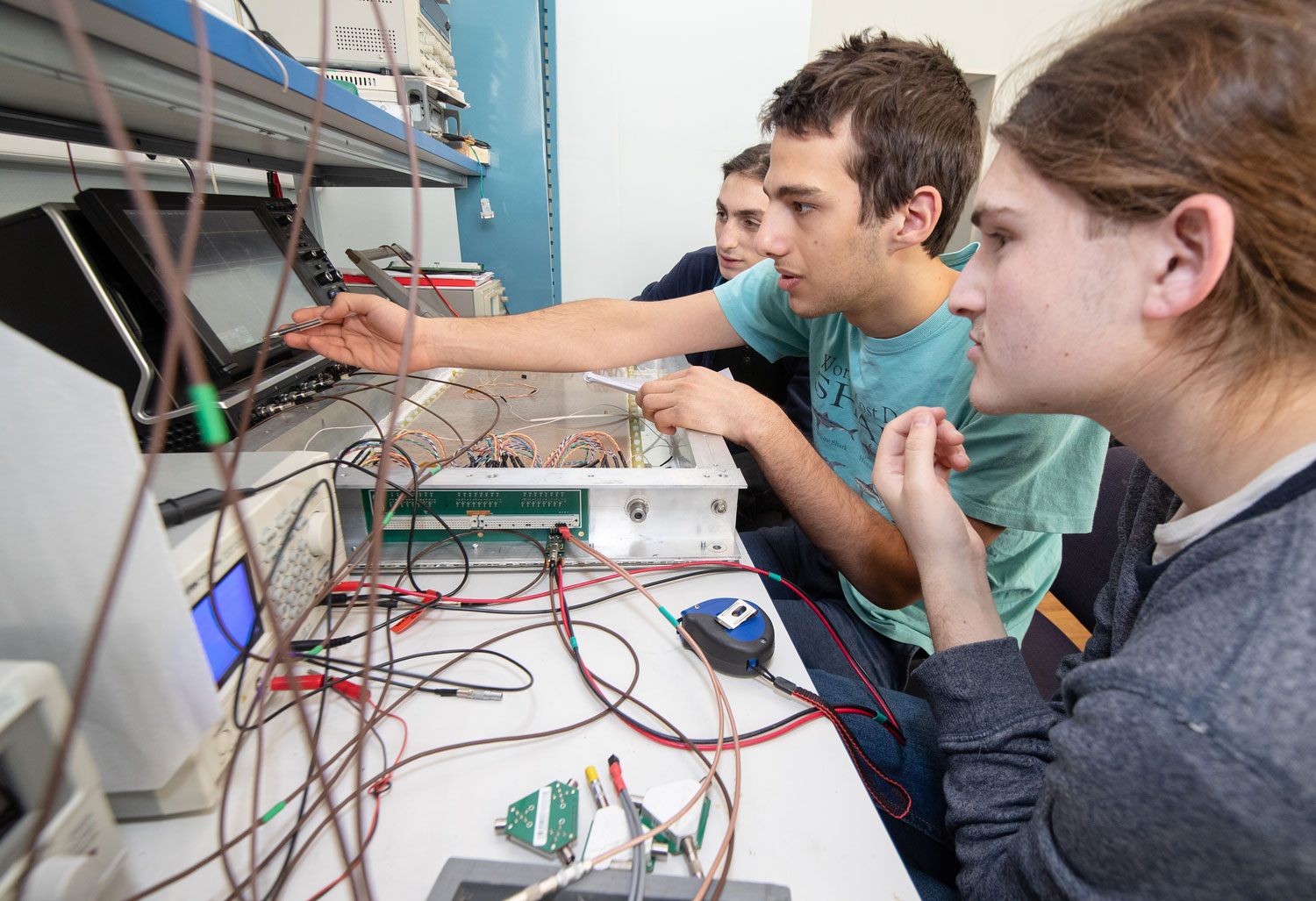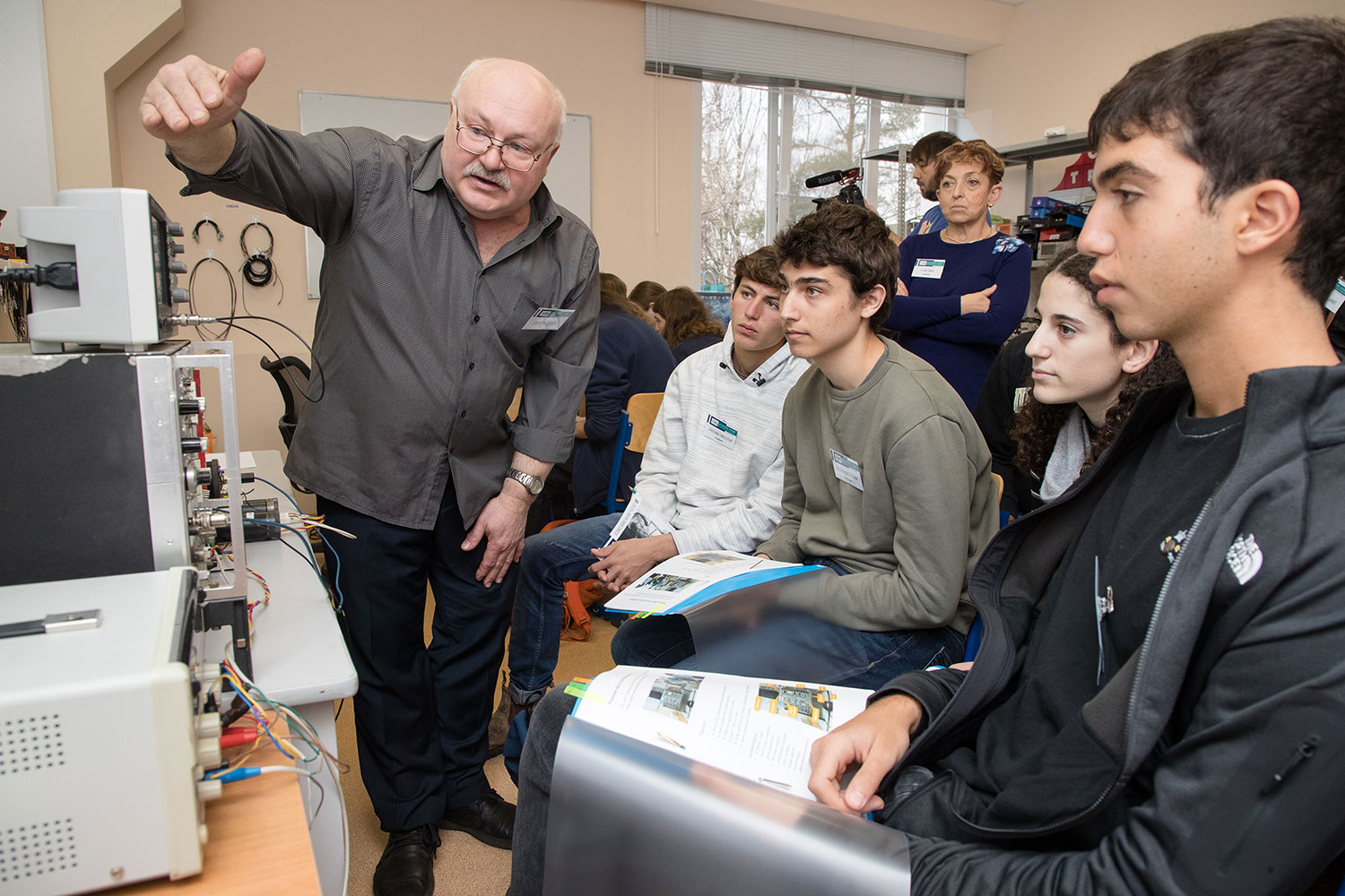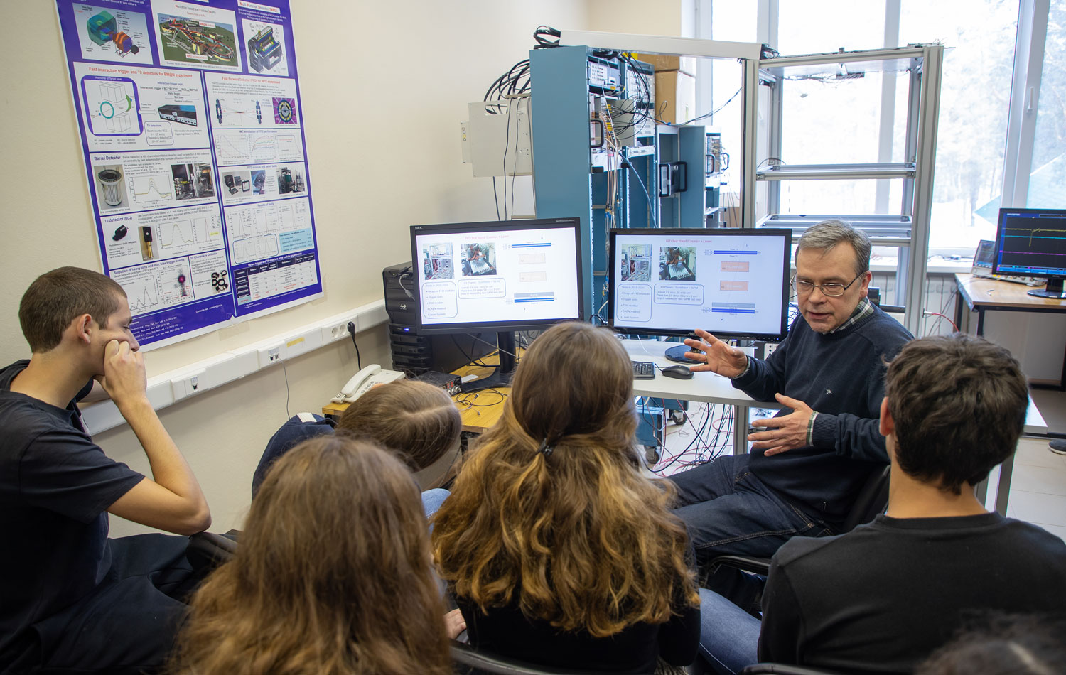 The third day of the visit of the Israeli group was held at the Laboratory of High Energy Physics, involving the leading staff of the Laboratory A. Butenko, S. Kostromin, Yu. Murin, V. Yurevich, S. Sedykh, V. Golovatyuk, and I. Tyapkin. The guests visited the magnet factory, the Synchrophasotron, the Nuclotron, and the laboratory producing track detectors. The highlight of the day was work at the test benches, which are intended for building the MPD detector for the NICA collider. Under the guidance of young staff members V. Babkin, M. Rumyantsev, A. Dmitriev, B. Dabrowska, V. Rogov, and N. Lashmanov, the students performed a number of measurements.