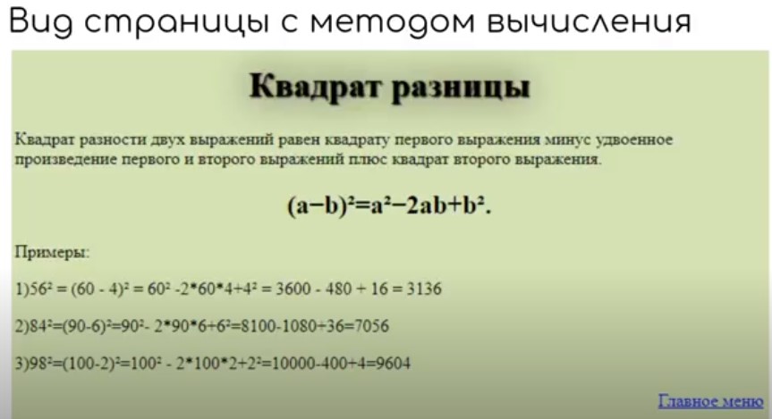 Целью проекта «Системы устного счета» (руководители Сергей Игоревич Никифоров и Сергей Николаевич Сергеев) была попытка спроектировать и создать компьютерную среду для обучения школьников быстрому счету без использования счетных устройств. В качестве основного математического инструмента использовались формулы сокращенного умножения. В качестве среды разработки применялся Python.