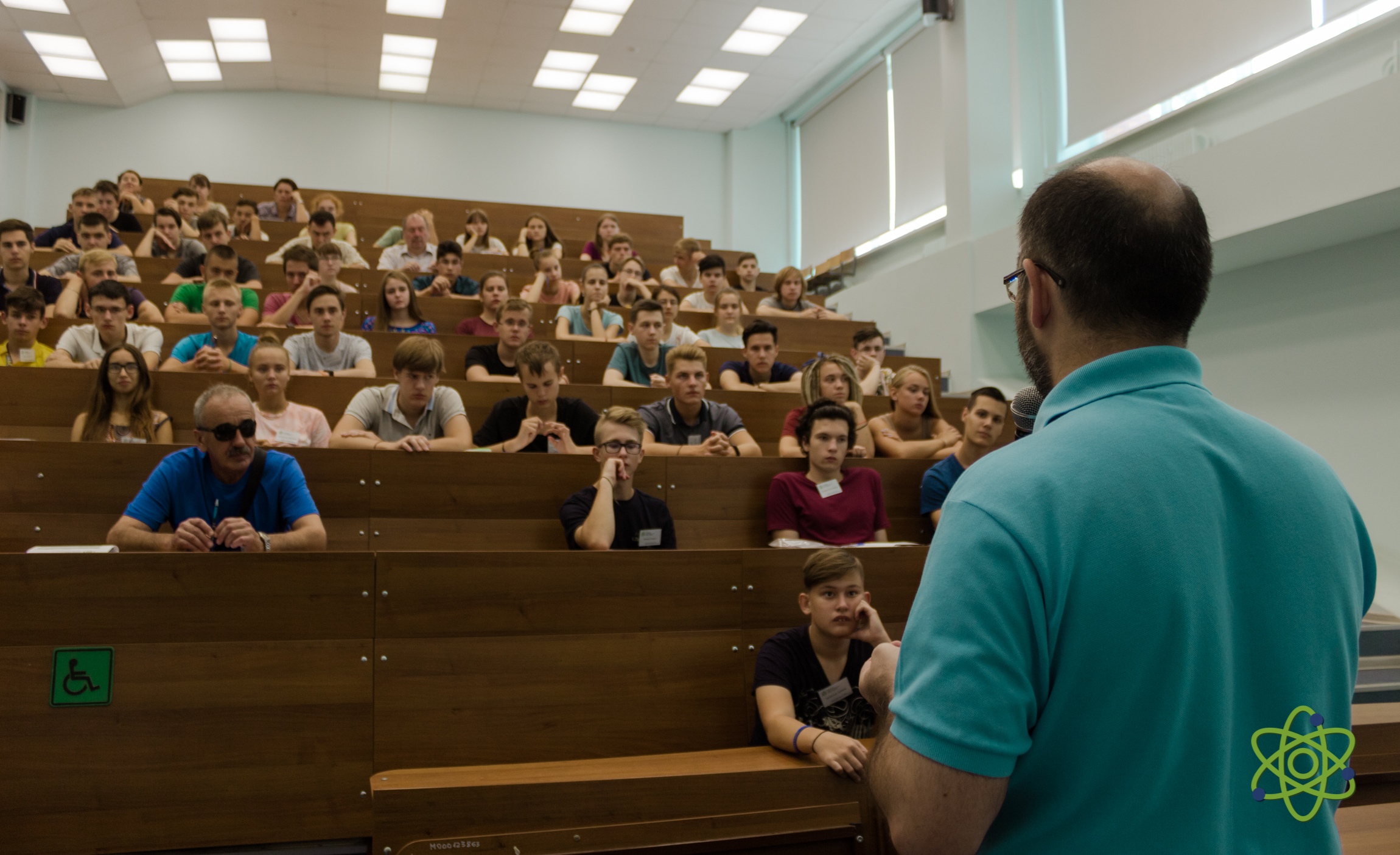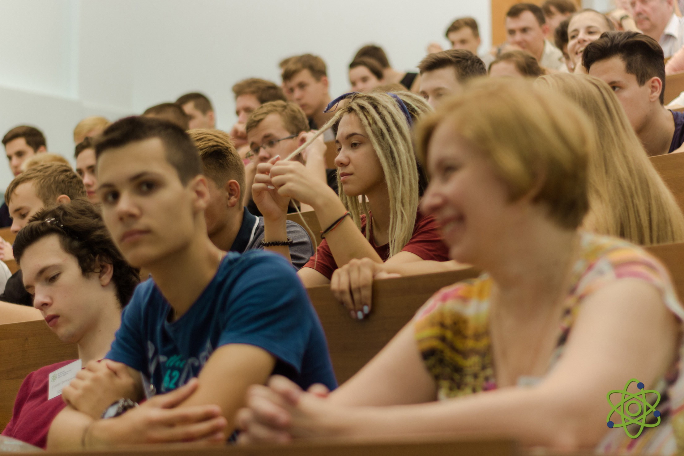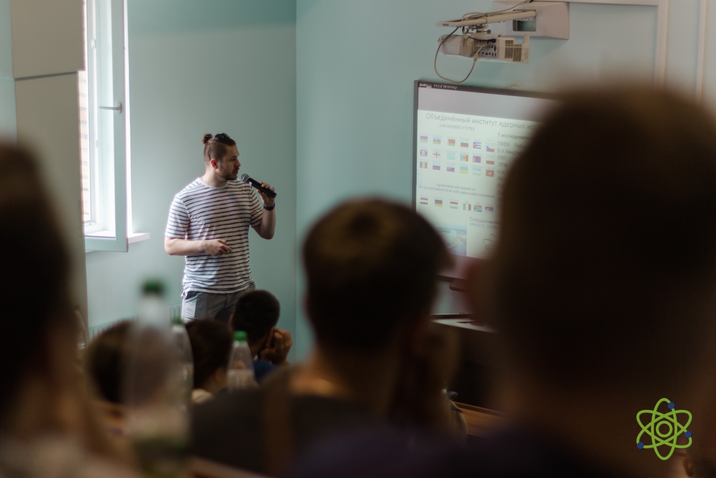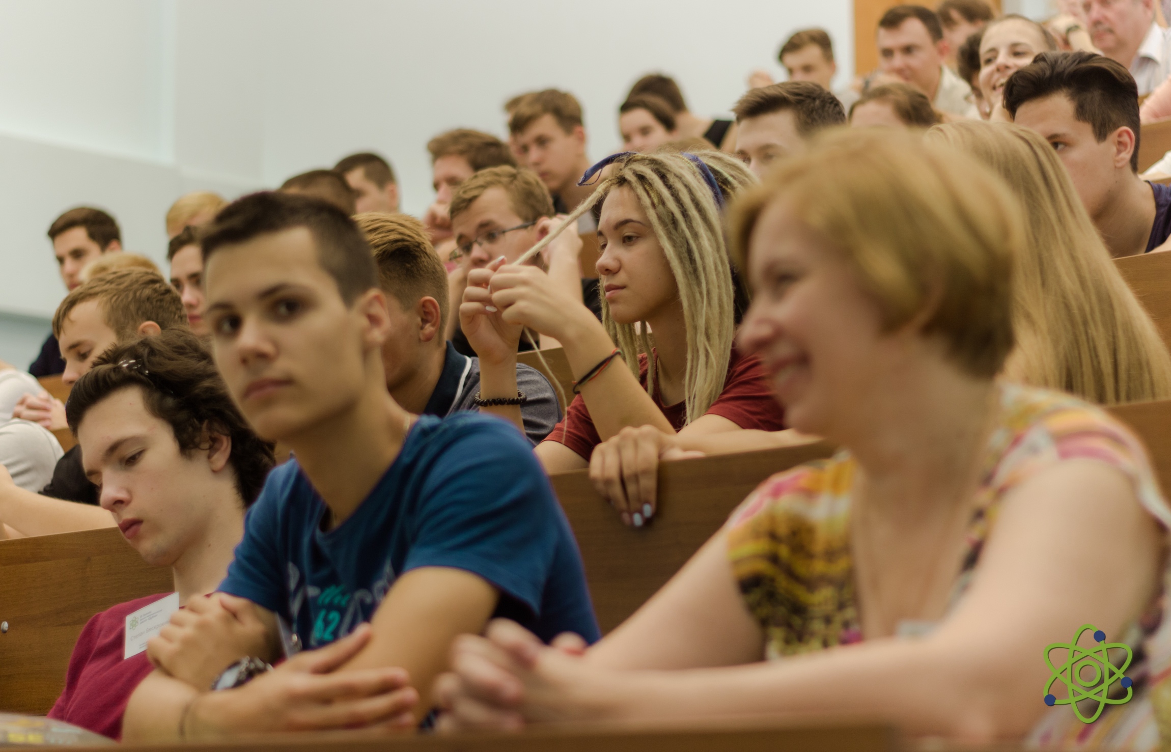 At the opening of the school, the Vice-Rector of the University “Dubna” A.S. Denikin welcomed the participants, among whom there were about 50 students from the Moscow, Vologda and Yaroslavl regions of the Russian Federation the winners and finalists of the regional school physics and mathematics competitions, and 9 accompanying teachers. A.S. Denikin presented the programme of the upcoming School to the audience, which was followed by discussion of the work plan of the event. Later, an excursion tour around the University campus was held for students and teachers. The lecture programme of the first day of the school included a presentation by K. Roslon (VBLHEP, JINR) about JINR and its flagship project NICA, and also a lecture by A.S. Denikin (FLNR JINR) devoted to modern nuclear physics.