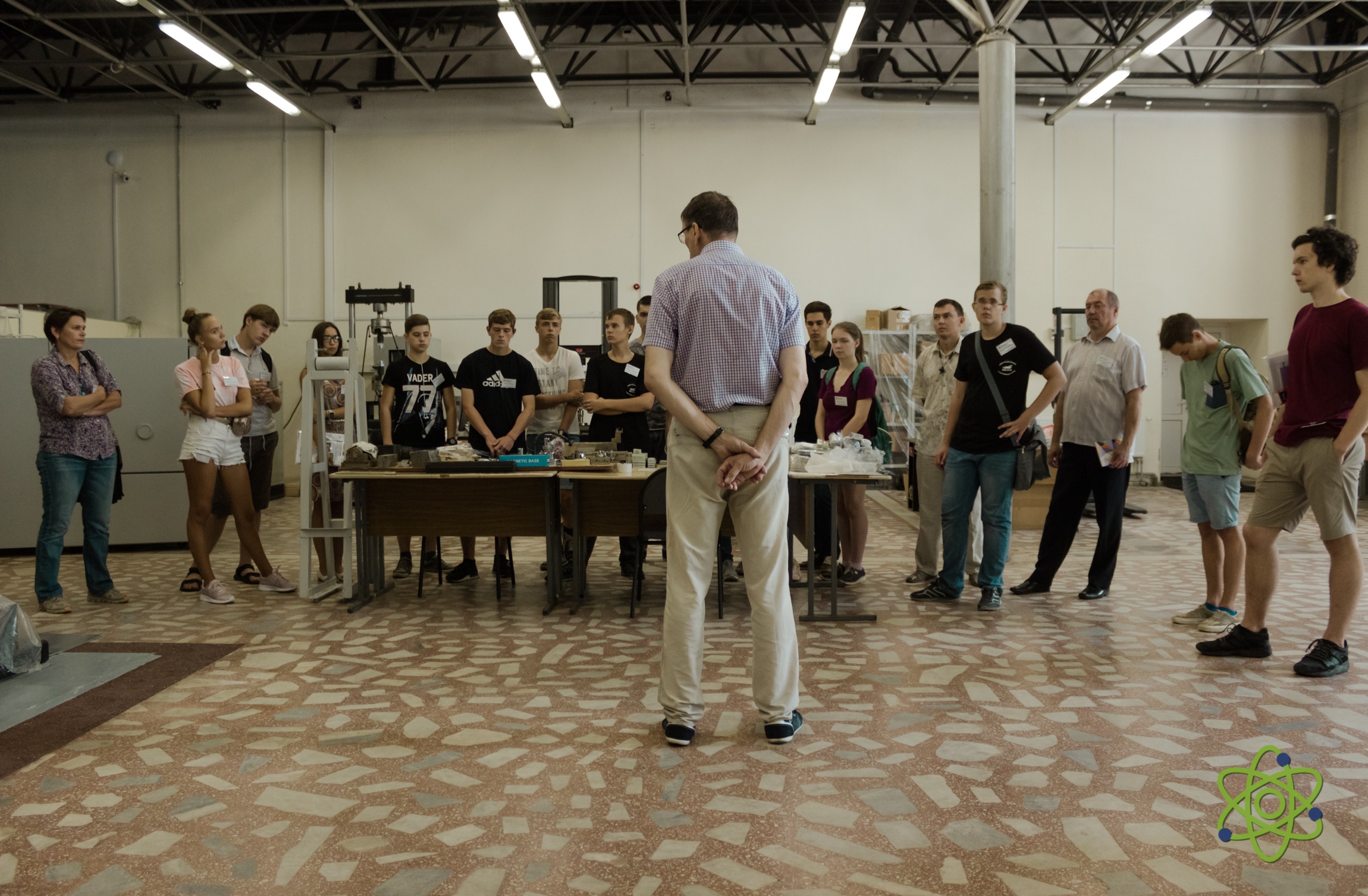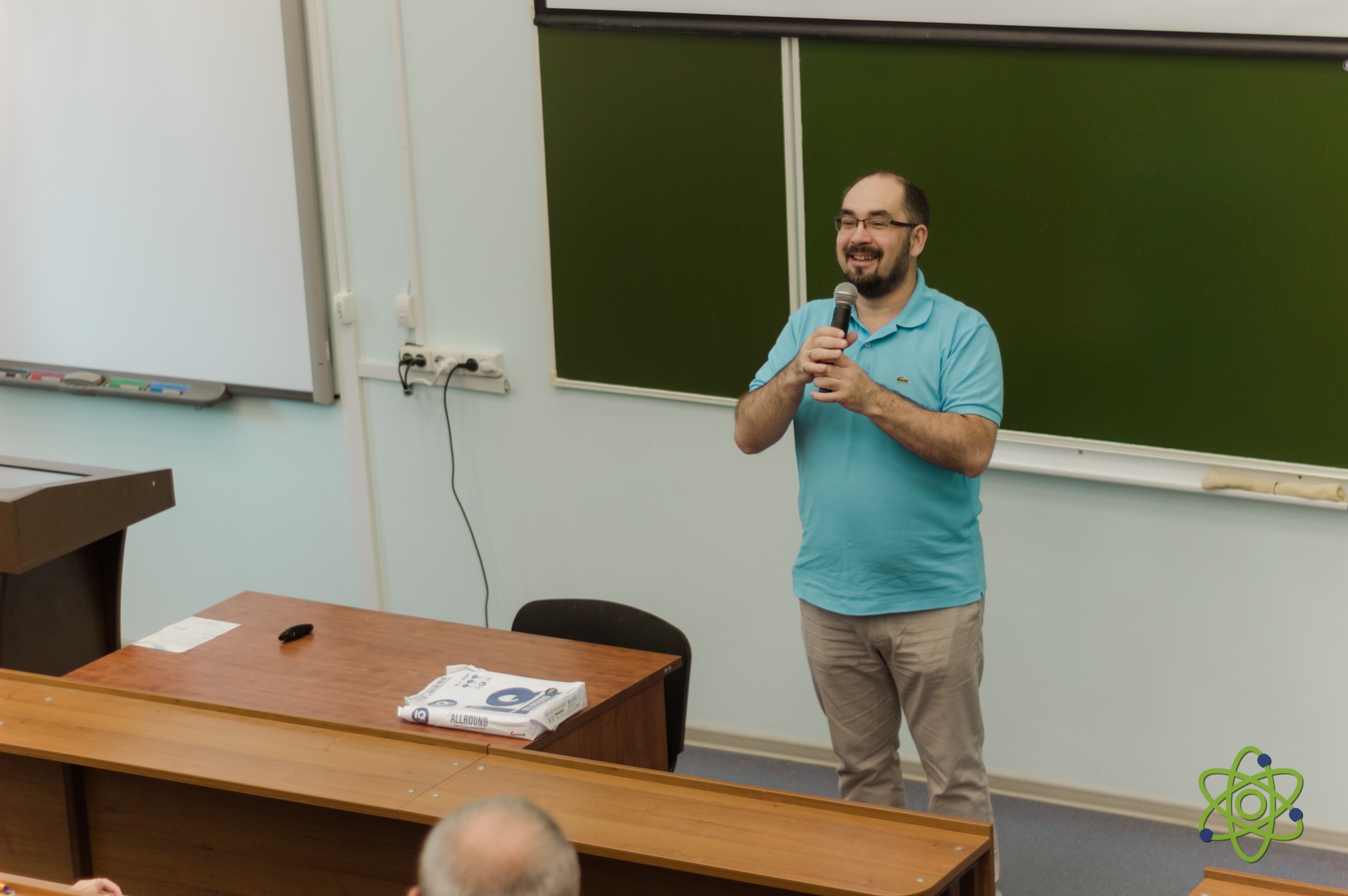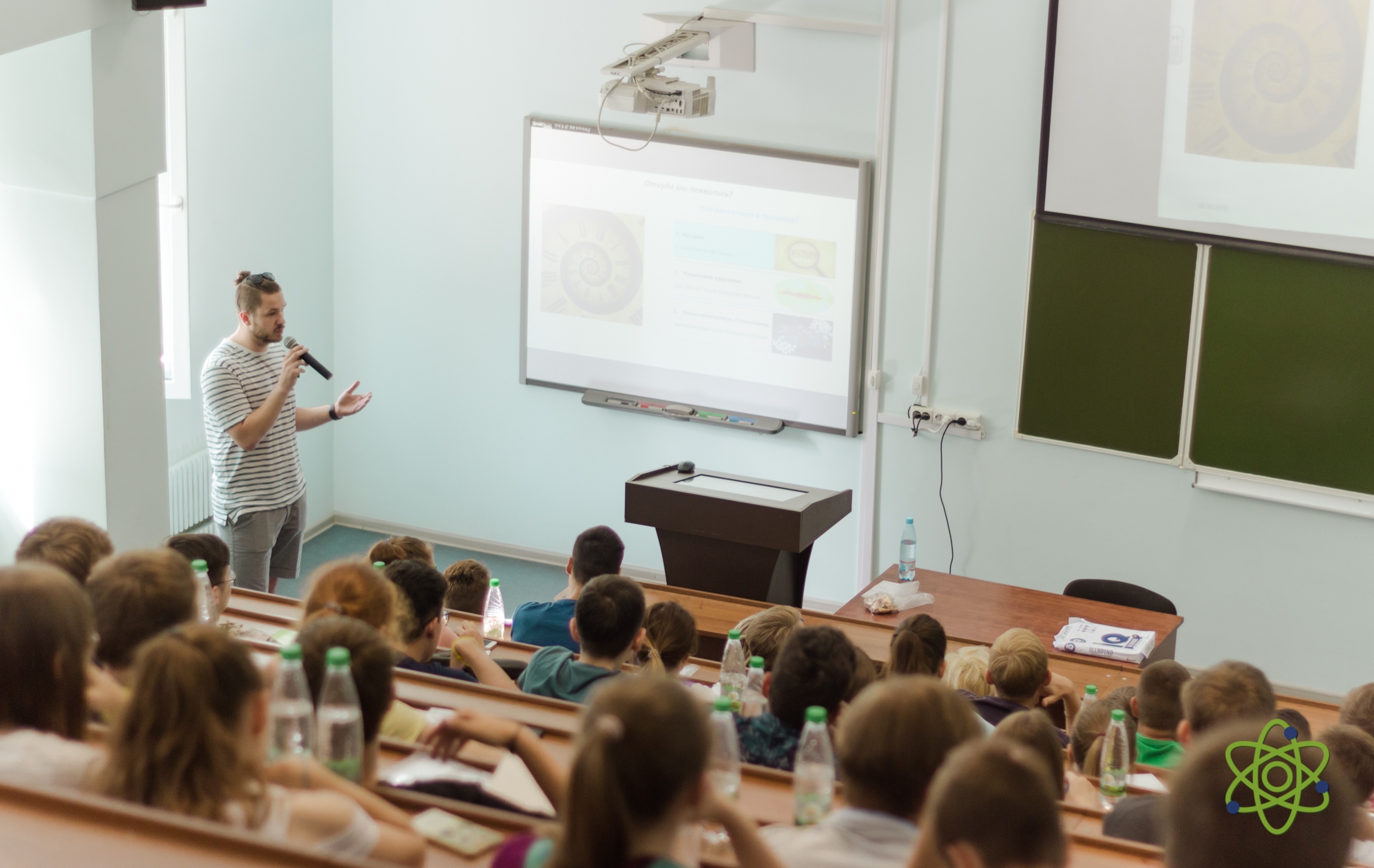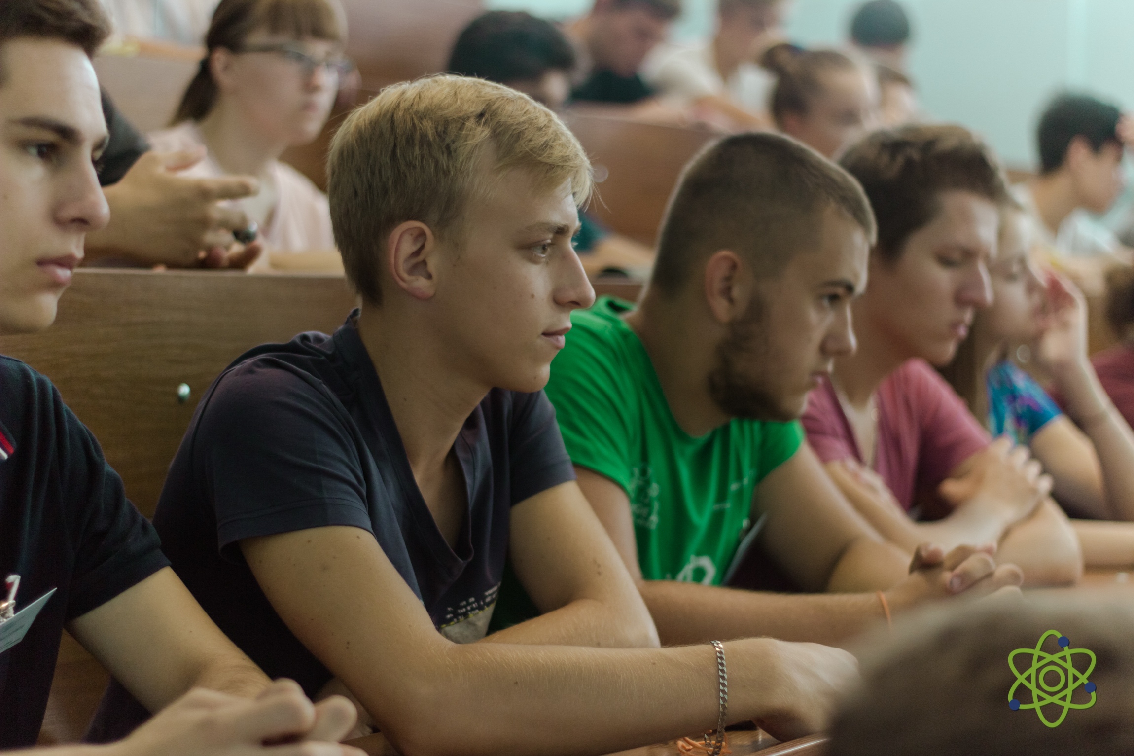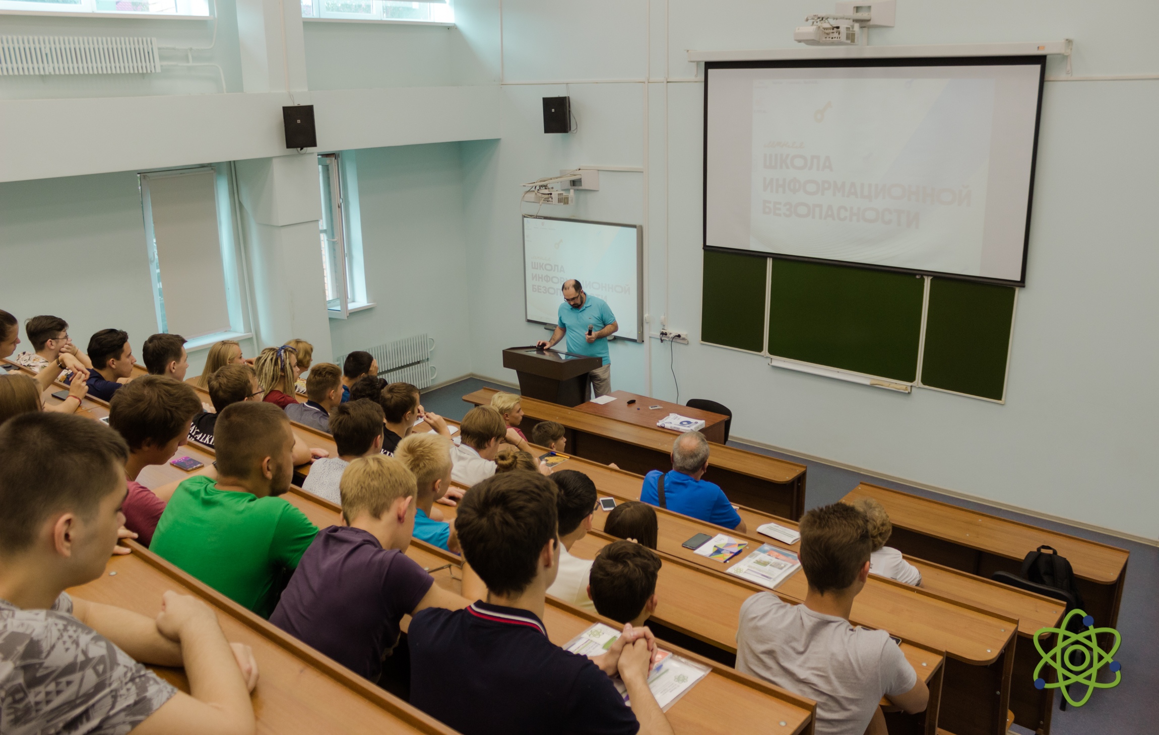 At the opening of the school, the Vice-Rector of the University “Dubna” A.S. Denikin welcomed the participants, among whom there were about 50 students from the Moscow, Vologda and Yaroslavl regions of the Russian Federation the winners and finalists of the regional school physics and mathematics competitions, and 9 accompanying teachers. A.S. Denikin presented the programme of the upcoming School to the audience, which was followed by discussion of the work plan of the event. Later, an excursion tour around the University campus was held for students and teachers. The lecture programme of the first day of the school included a presentation by K. Roslon (VBLHEP, JINR) about JINR and its flagship project NICA, and also a lecture by A.S. Denikin (FLNR JINR) devoted to modern nuclear physics.
