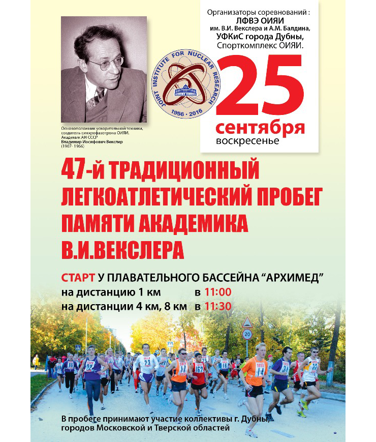The 47th traditional track and field run in the memory of Academician V.I.Veksler will be held on 25 September 2016.