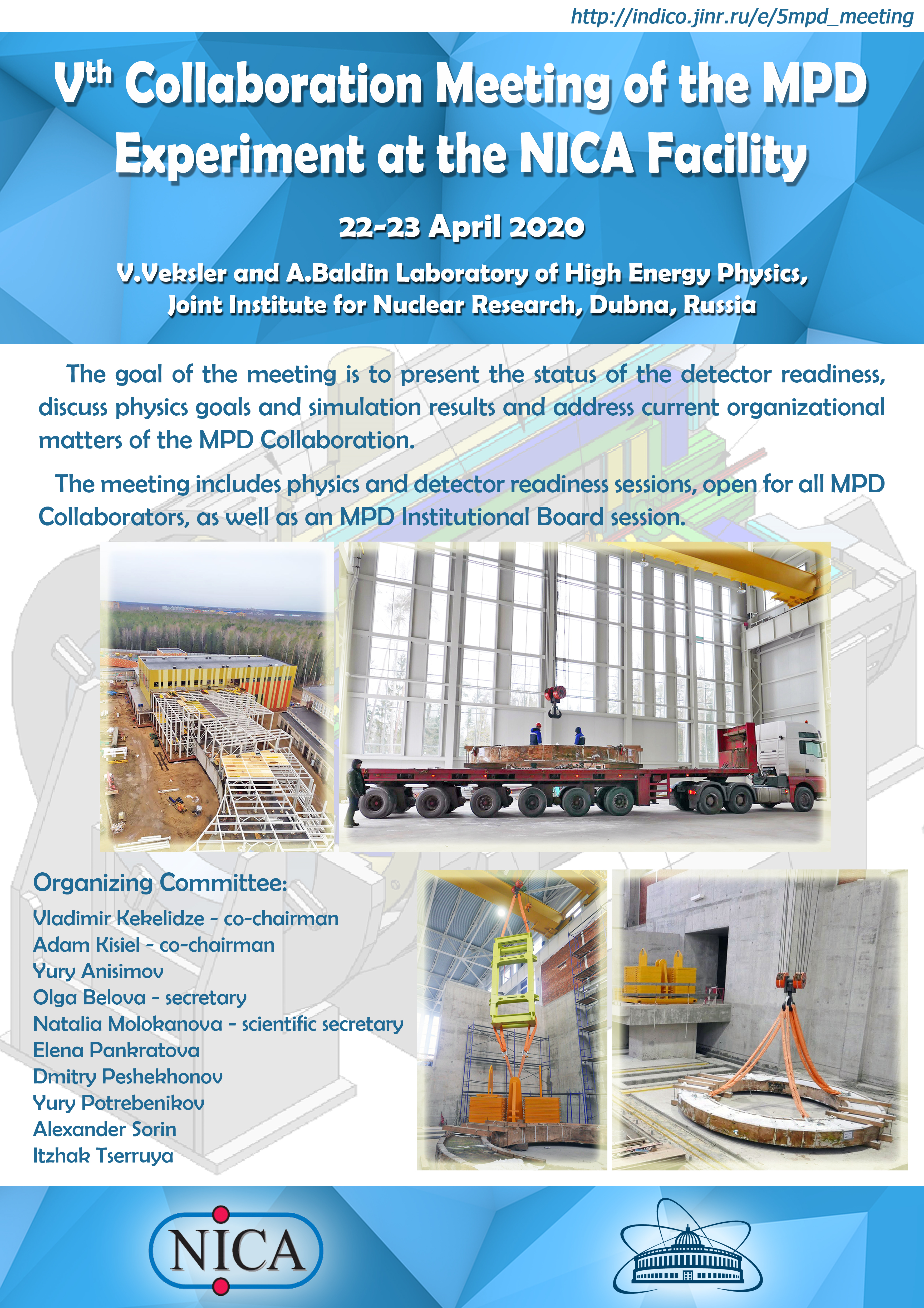 On 23 — 24 April 2020, the 5th Collaboration Meeting of the MPD Experiment at the NICA was held by the Veksler and Baldin Laboratory of High Energy Physics JINR.