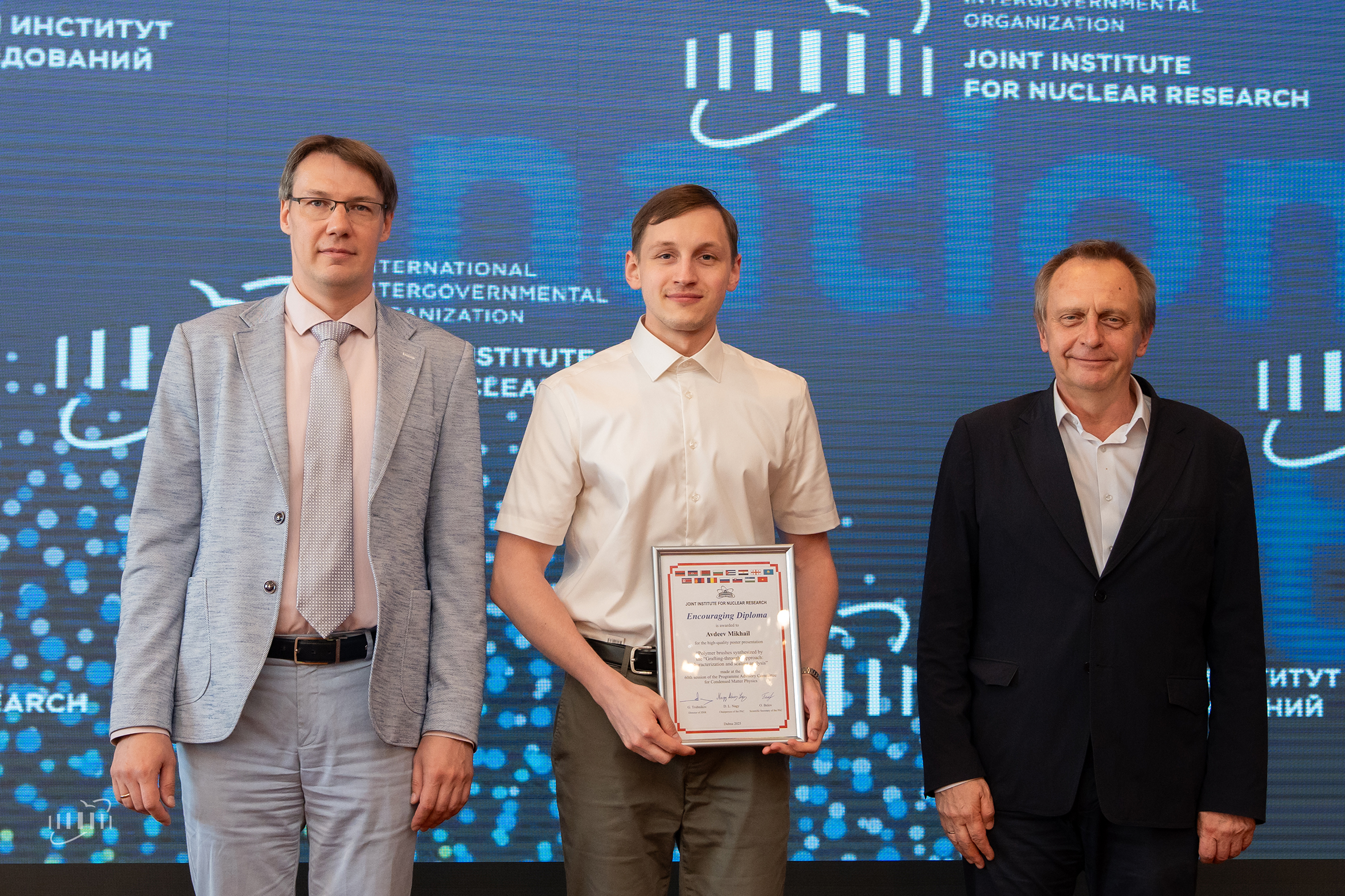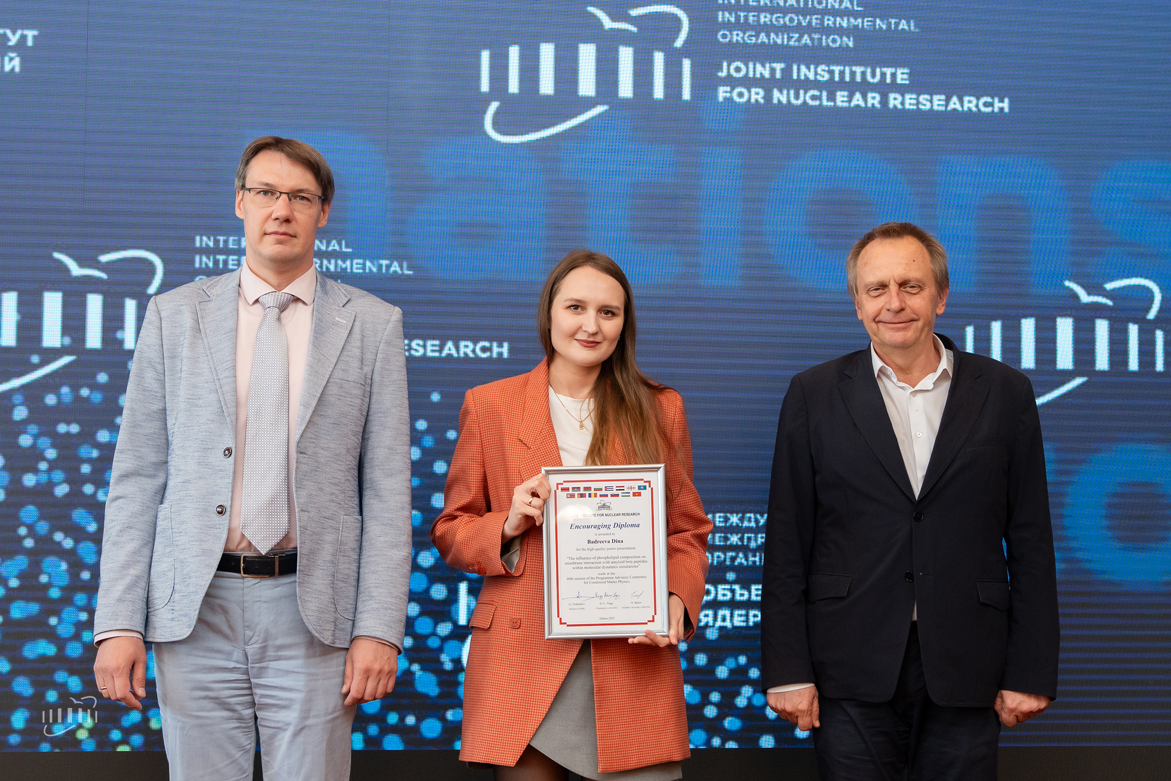 The winners of the previous poster session, Anton Rutkauskas, Dina Badreeva, and Mikhail Avdeev, were awarded.