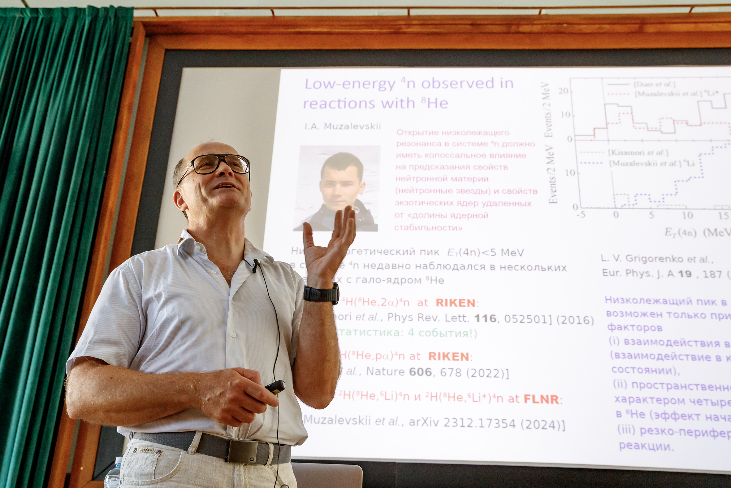 The first part of the plenary session included key reports on the development of the FLNR Accelerator Complex, new experimental data on the research of isotopes of superheavy elements, and physics of exotic nuclei. The development of experimental facilities and the results obtained on them were discussed by FLNR JINR researchers: Head of the Scientific and Technological Accelerator Department Vasily Semin, Chief Researcher Leonid Grigorenko, and a junior researcher Nikita Kovrizhnykh.
