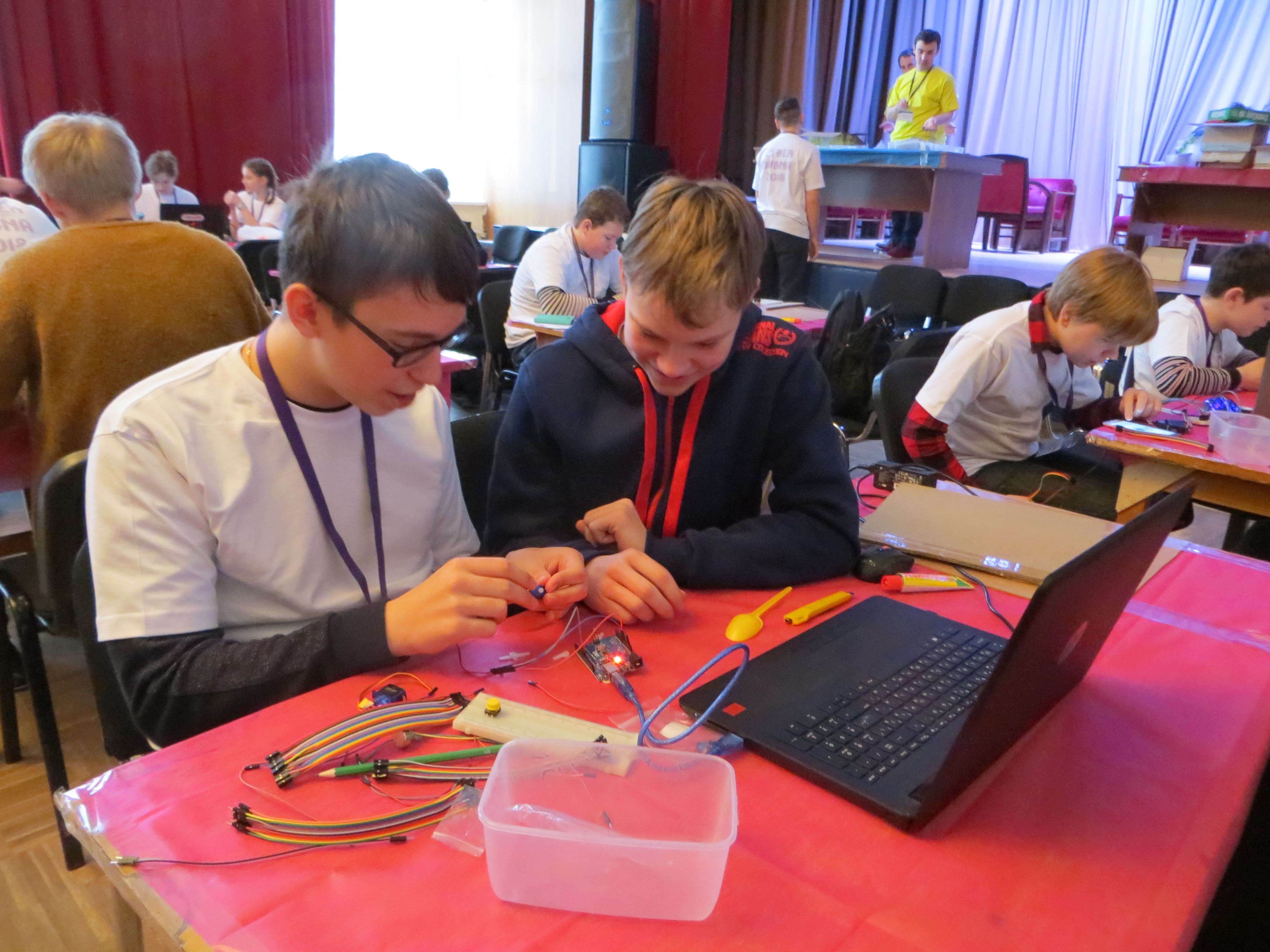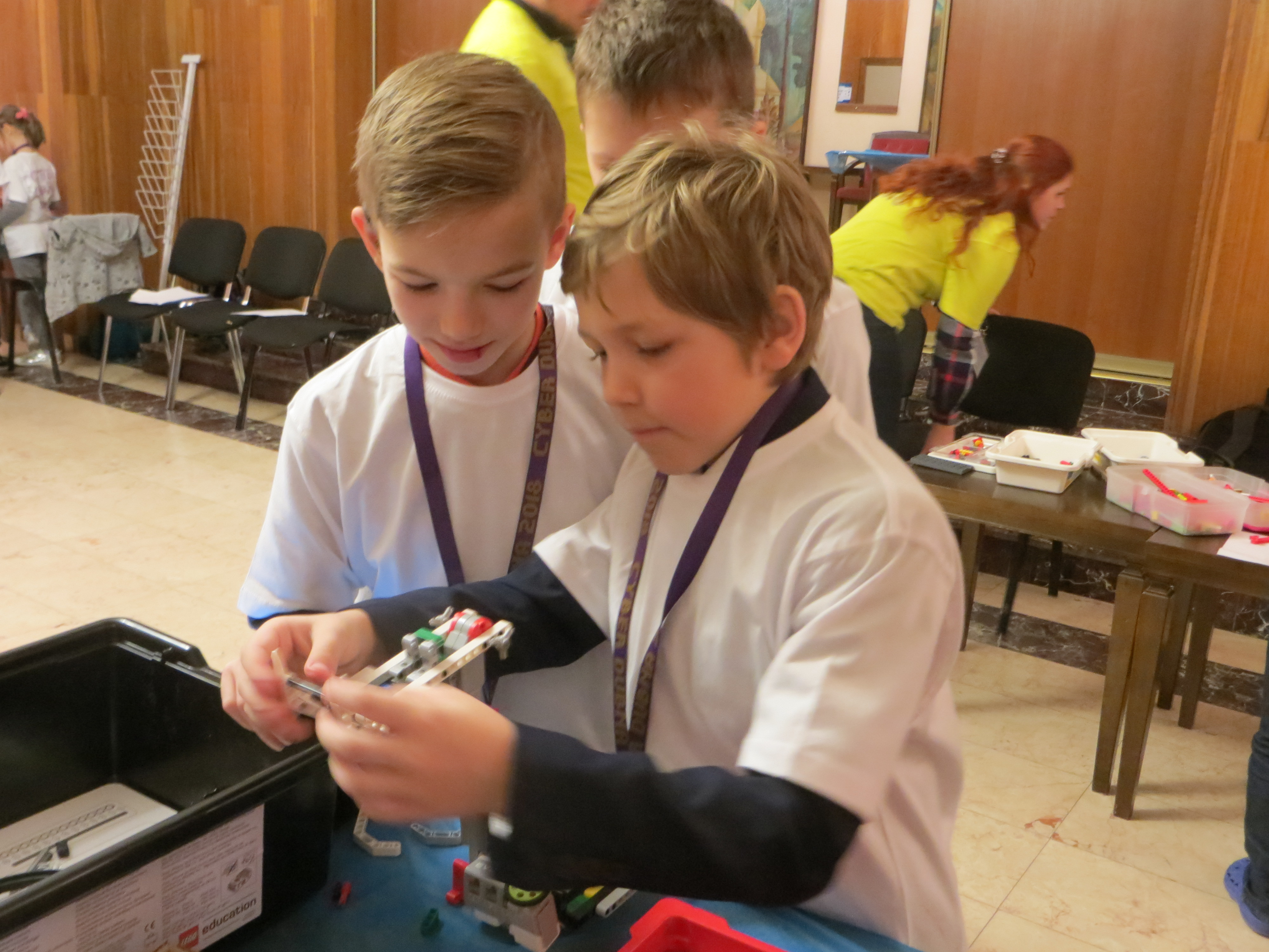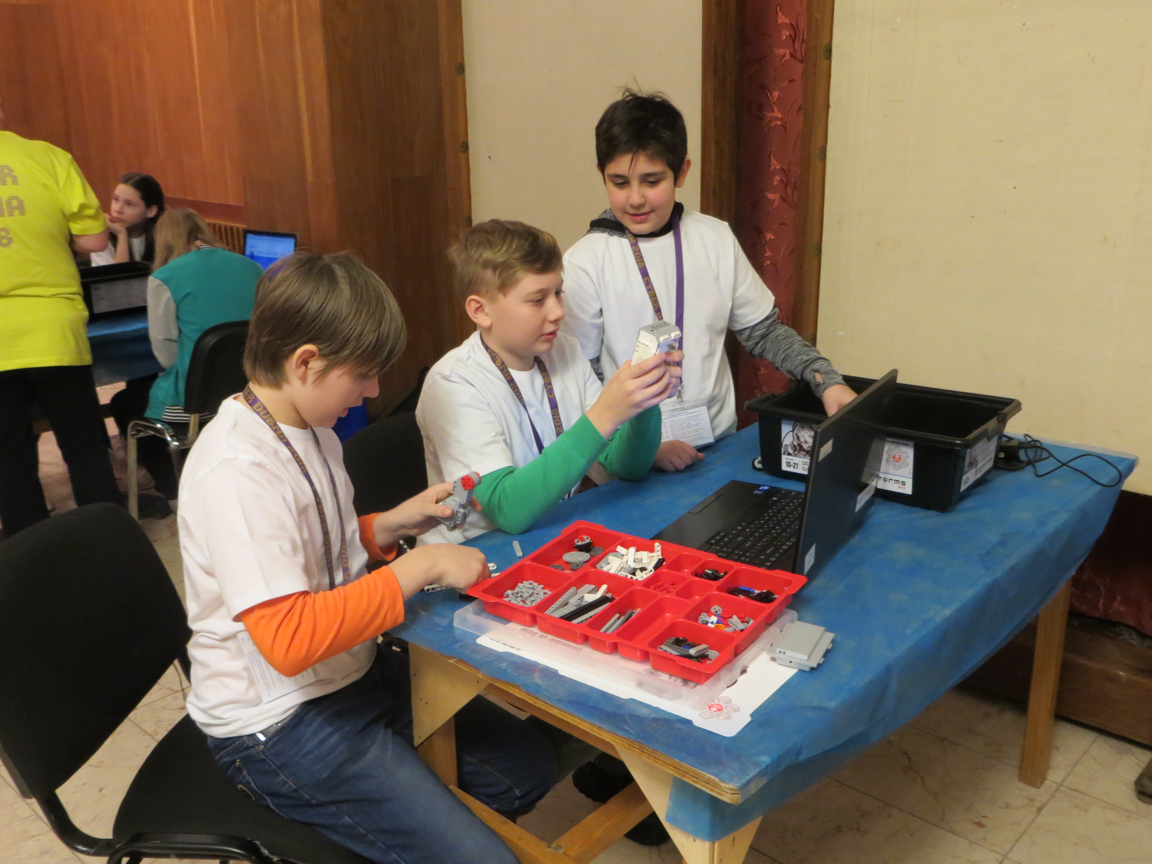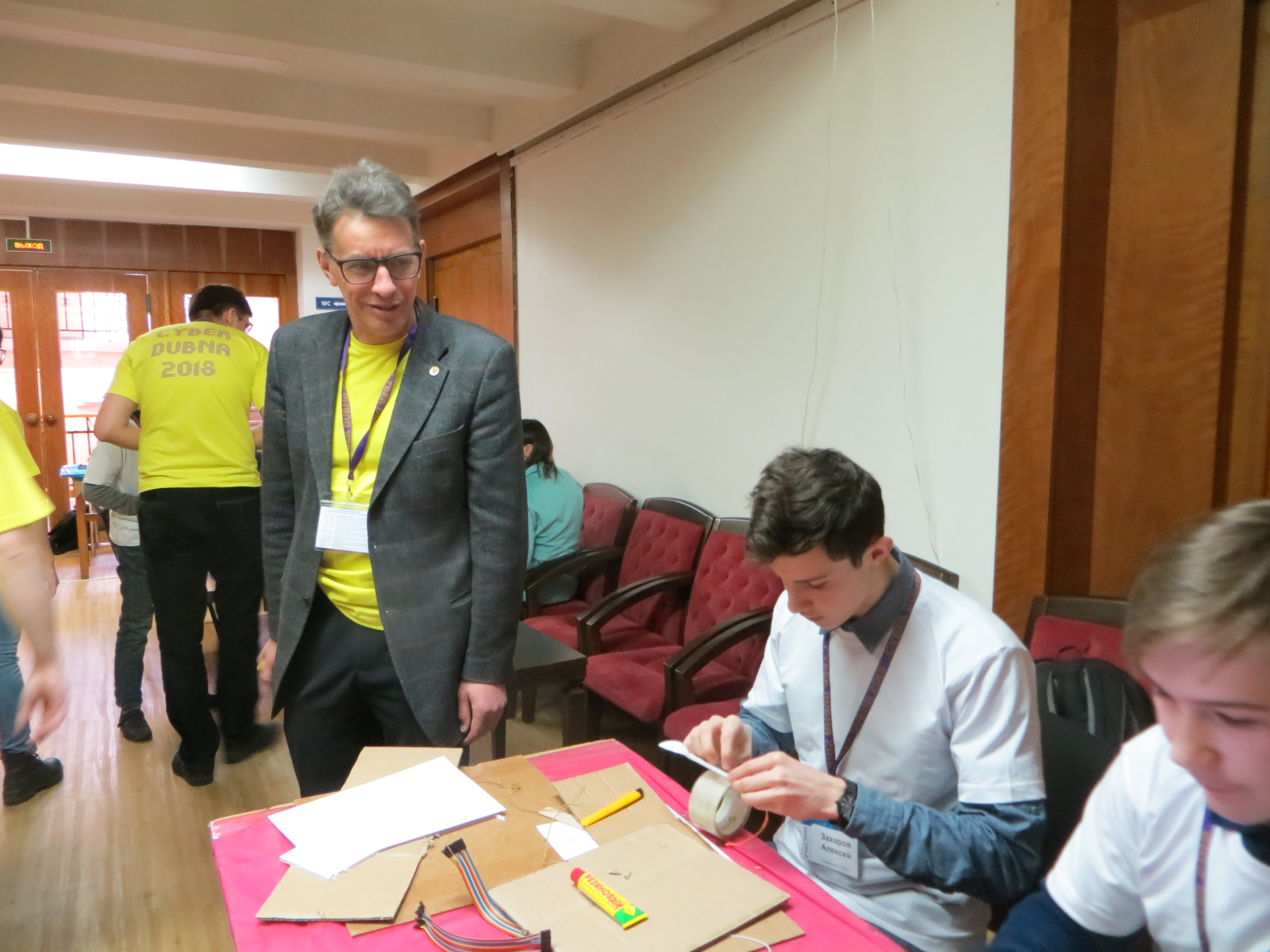 At the last weekend, the JINR Cultural Centre “Mir” was immersed in robotics – more than 120 children took part in the 7th Robotic Tournament Cyber Dubna 2018. The Tournament was organized by JINR and the Trans regional Computer School. School students from 15 towns of the Moscow Region competed in their skills of constructing and programming robots. Students participated in line races, had an opportunity to study at the workshop studio or listen to the lecture “Robots and space”. Their parents and teams leaders got acquainted with the Joint Institute for Nuclear Research in the Museum of History of Science and Technology of JINR.
