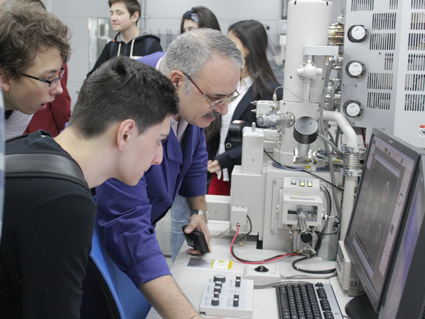 The participants listened to an introductory lecture on the main fields of research and the latest achievements of FLNR, which was delivered by the laboratory specialists A. Artyukh and A. Voinov. Further on, the students accompanied by A. Voinov visited the accelerator IC-100 and the NanoLab of FLNR, where O. Orelovich introduced them to the operation principles of the latest electron microscope.