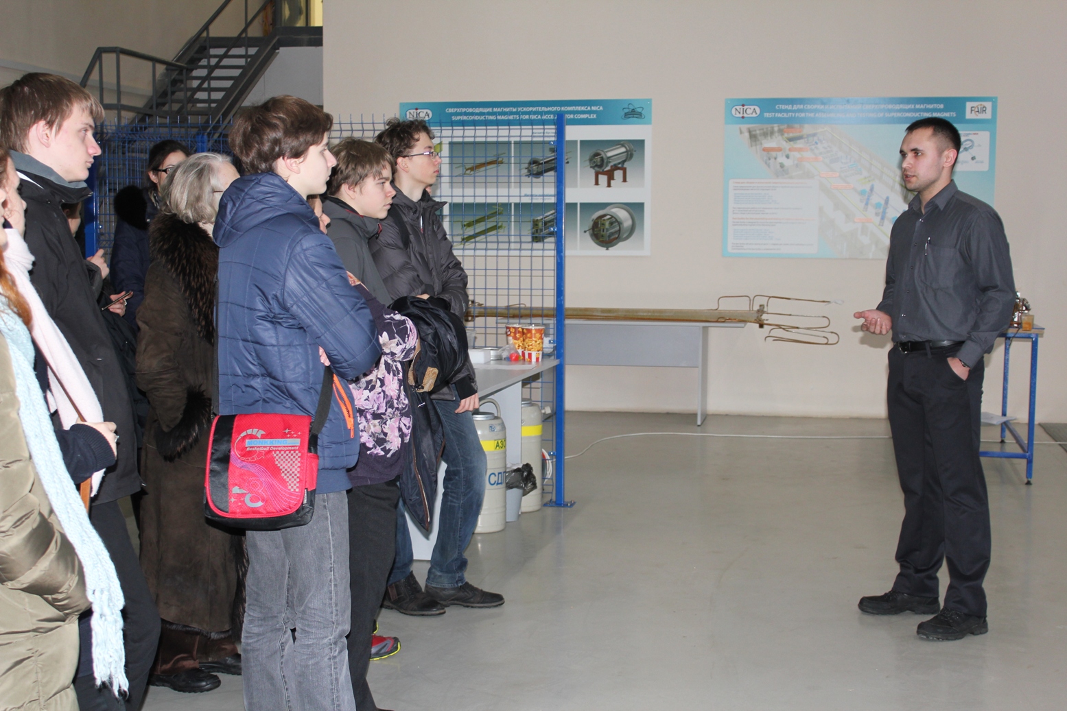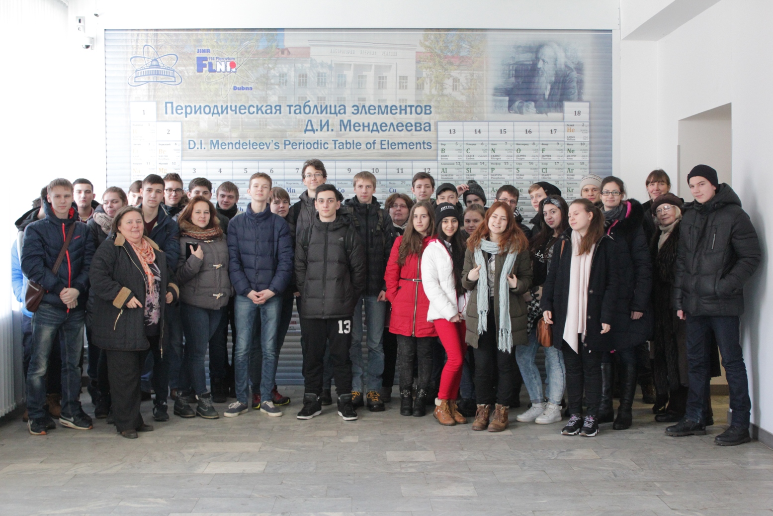 On 17 February 2016, a visit to JINR was organized for 30 high-school students and 6 teachers from gymnasium No. 1797 “Bogorodskaya”, Moscow. The visit programme included: guided tours of Flerov Laboratory of Nuclear Reactions and Veksler and Baldin Laboratory for High Energy Physics.