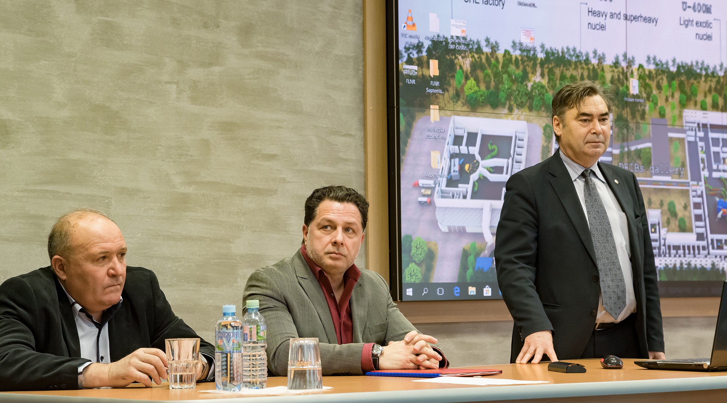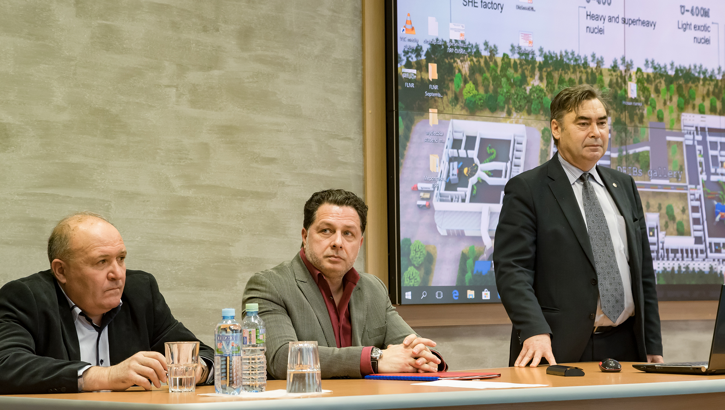 On 20 February 2018, a delegation of the Industrial Center of the Republic of Bulgaria in Moscow visited the Joint Institute for Nuclear Research. The organization is aimed at improving economic, trade and technical relations between the Republic of Bulgaria and the Russian Federation, development of bilateral economic contacts, expansion of Bulgarian export and tourism as well as attracting investments. The guests met the leading JINR specialists, including their countrymen working in Dubna, in the Conference Hall of the Flerov Laboratory of Nuclear Reactions. JINR Chief Engineer Boris Gikal, FLNR Deputy Director Andrei Popeko told about JINR and the Flerov Laboratory of Nuclear Reactions. VBLHEP Deputy Director Rumen Tsenov delivered a presentation for guests in their native language. In his turn, Deputy Chairman of the Centre Tsvetozar Genchev spoke about the activities of the organization and introduced his colleagues. In their presentations, participants of the meeting touched upon some issues concerning JINR procurement and participation of enterprises from the JINR Member States in tenders held by JINR.