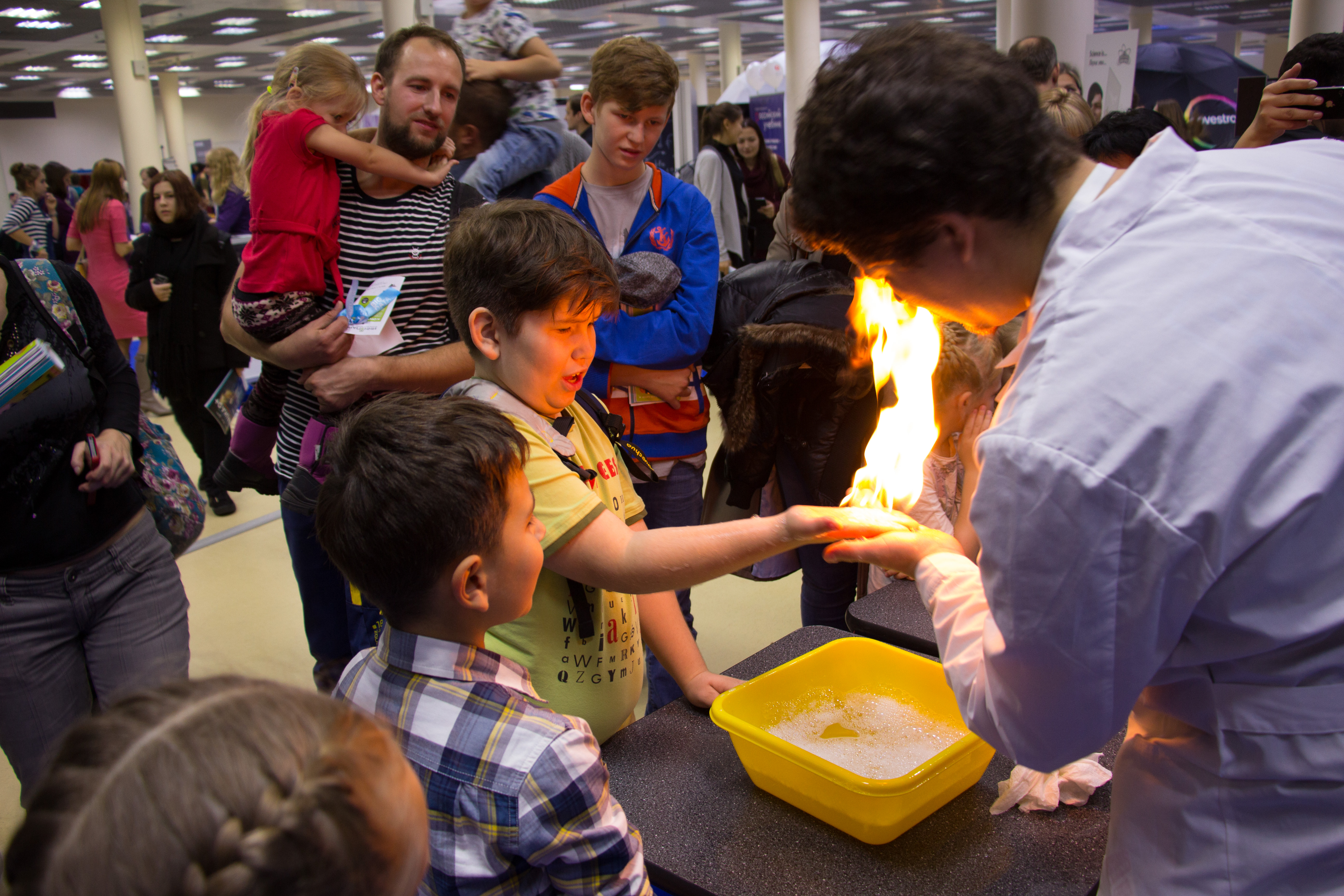 At Expocentre Fairgrounds, a creative and interactive educational programme was arranged for visitors of all ages. They could watch fascinating experiments in physics and chemistry (with liquid nitrogen, dry ice, various chemicals etc.) and even take on the role of the experimentalists’ assistants during some of them; join robotics workshops held by children and their monitors and deepen their knowledge in the field of natural sciences with the help of mind games and educational programmes.