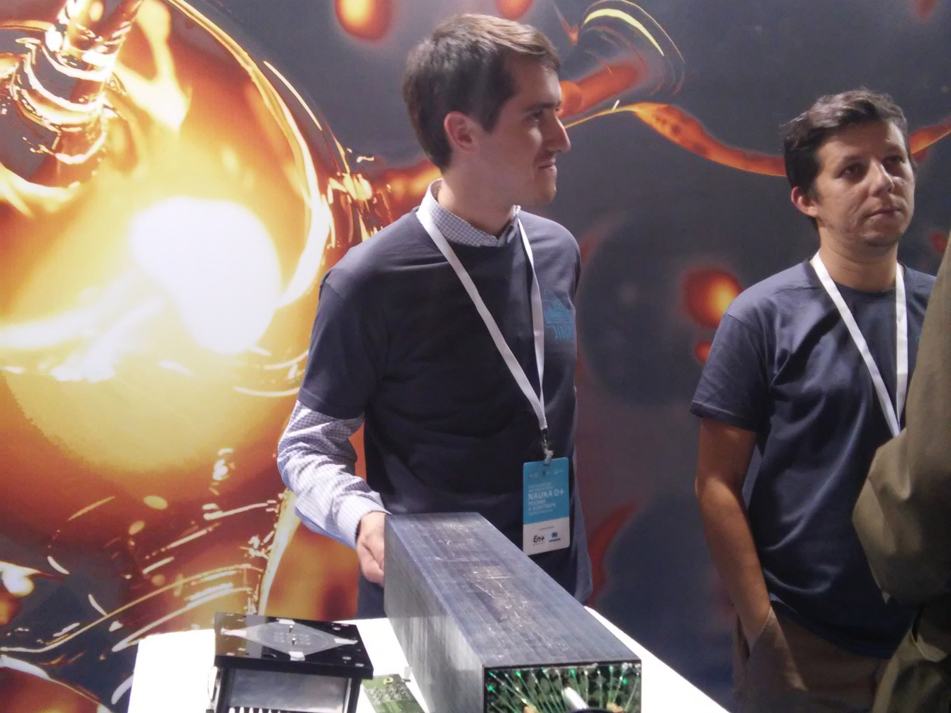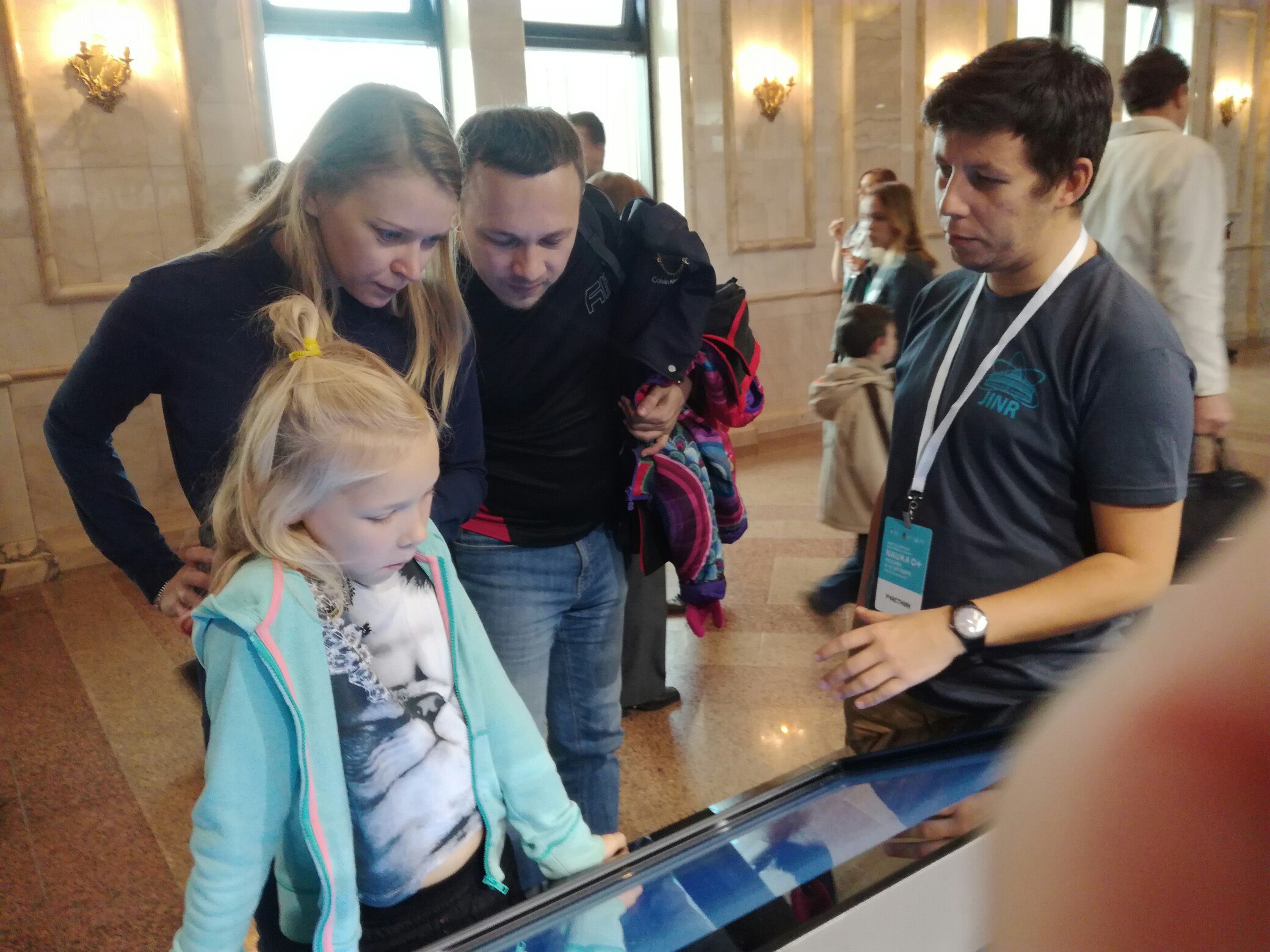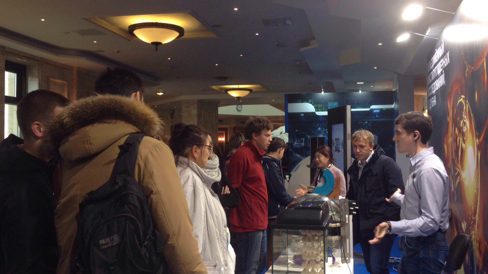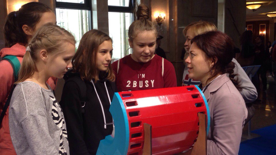 The second exhibition stand this year was located at the MSU Fundamental Library, where young specialists from JINR told visitors about the main research directions of the Institute and illustrated by means of the replicas of the MultiPurpose Detector from the NICA collider and the IBR-2 reactor, the miniature of the deep underwater neutrino telescope used in the Baikal experiment as well as the calorimeter (used in the COMPASS experiment in order to study the structure and spectroscopy of hadrons) how JINR basic facilities operate.