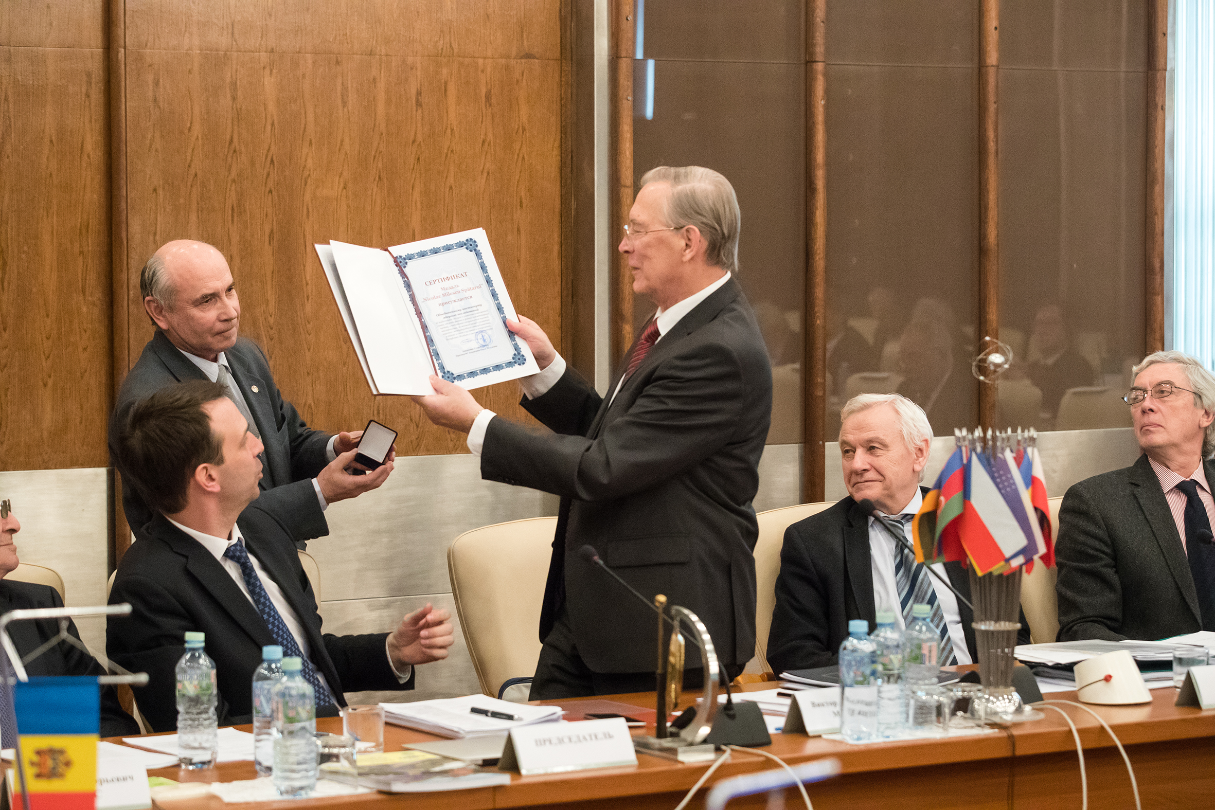 From the Protocol of the session of the JINR Committee of Plenipotentiaries: Regarding the report “Endorsement of the appointment to positions of JINR ViceDirectors” presented by V. Matveev, Director of JINR, the Committee of Plenipotentiaries resolves: to endorse the appointment of Richard Lednický as Vice-Director of JINR until the end of 2021, to entrust the Leader of the NICA Project, Vladimir Kekelidze, to execute partially the powers of JINR’s Vice-Director until the end of 2021 with the continuation of his work as Director of the V. Veksler and A. Baldin Laboratory of High Energy Physics, whose term of office expires in September 2019, to prolong for one year the right granted to JINR Director V. Matveev to extend the term of office or to assign temporary duties of JINR Vice-Directors, including to other persons, until their official approval by the Committee of Plenipotentiaries.