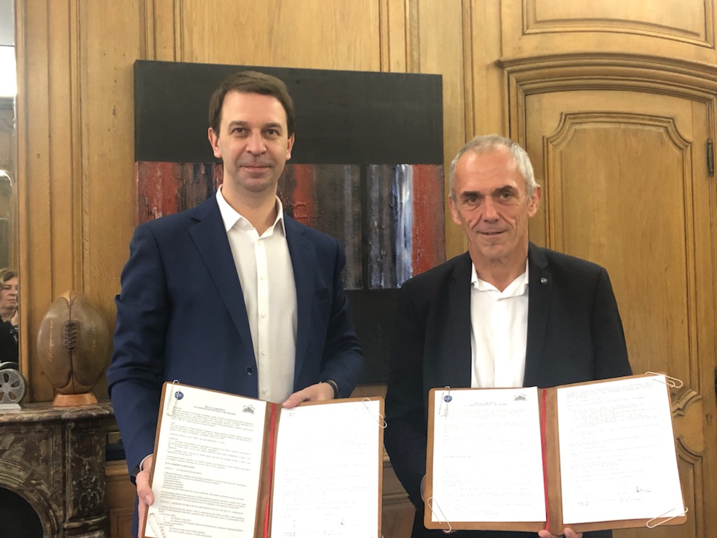 The agreement implies the development of cooperation between JINR and the French National Centre for Scientific Research (CNRS) relating to staff training, which unites governmental organizations in the fields of applied and fundamental research. On 15 November, Director of JINR Grigory Trubnikov and CNRS President Antoine Petit signed the document.
