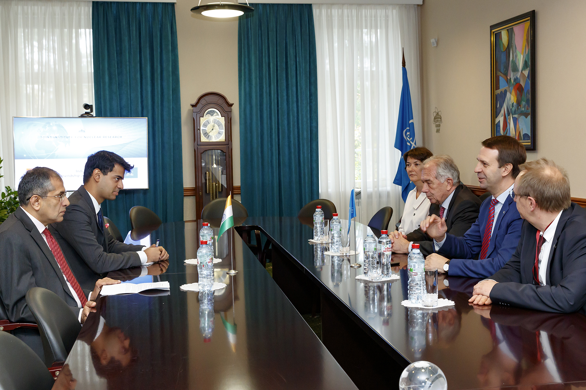 Second Secretary of the Embassy Bharat Yadav also represented the Embassy of India at the meeting at the JINR Directorate. On behalf of JINR, Vice-Director Latchesar Kostov, Chief Scientific Secretary Sergey Nedelko, Head of the International Cooperation Department Otilia Ana Culicov participated in the discussion.