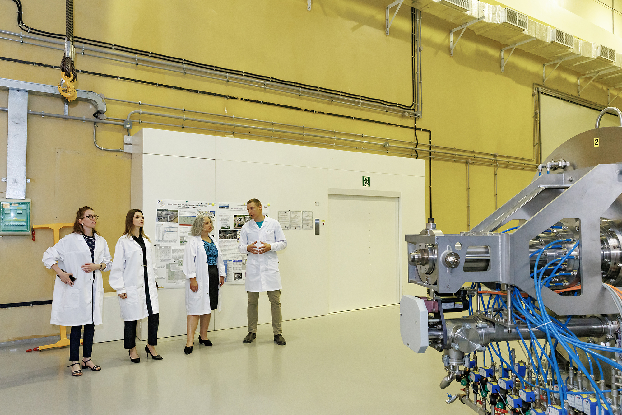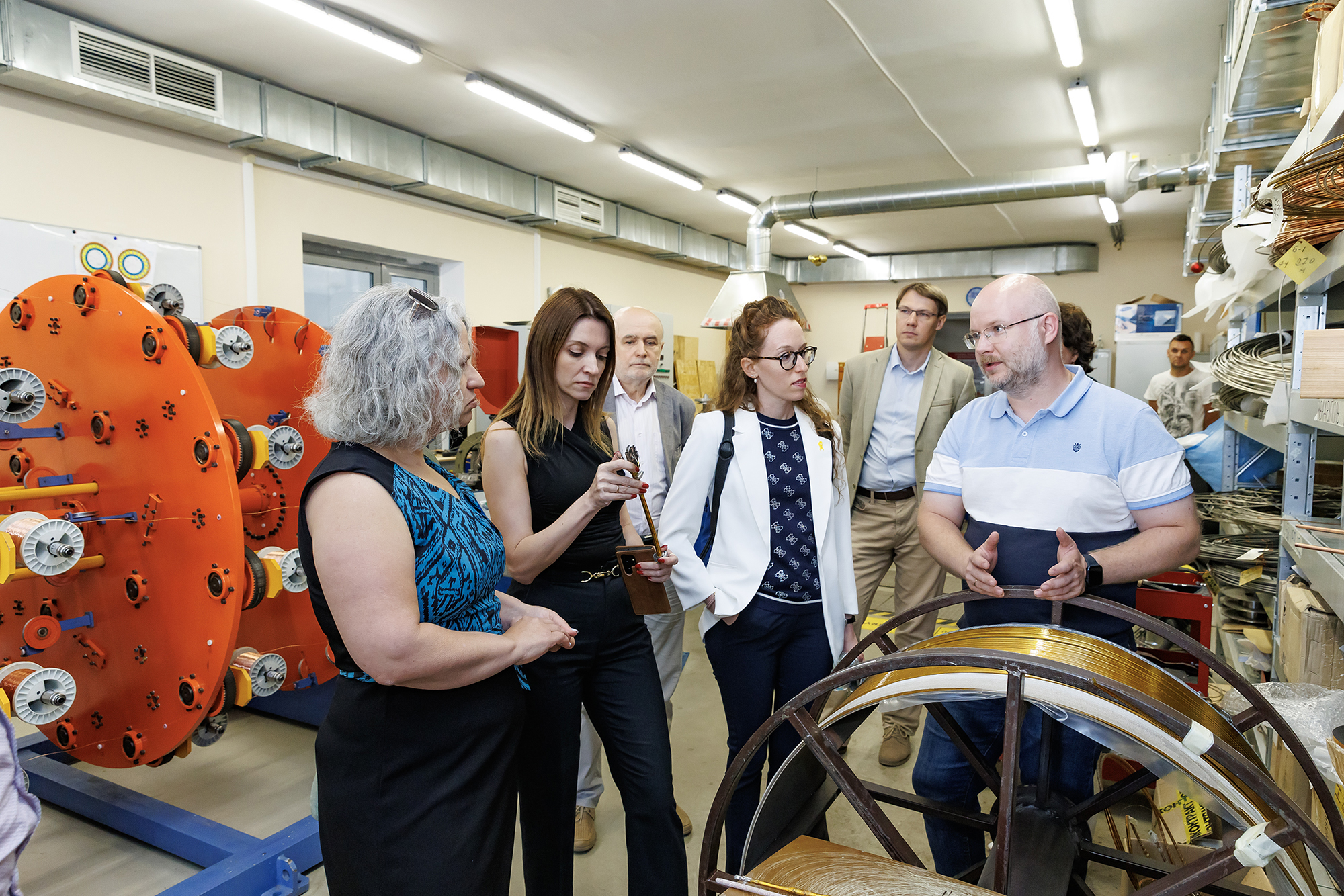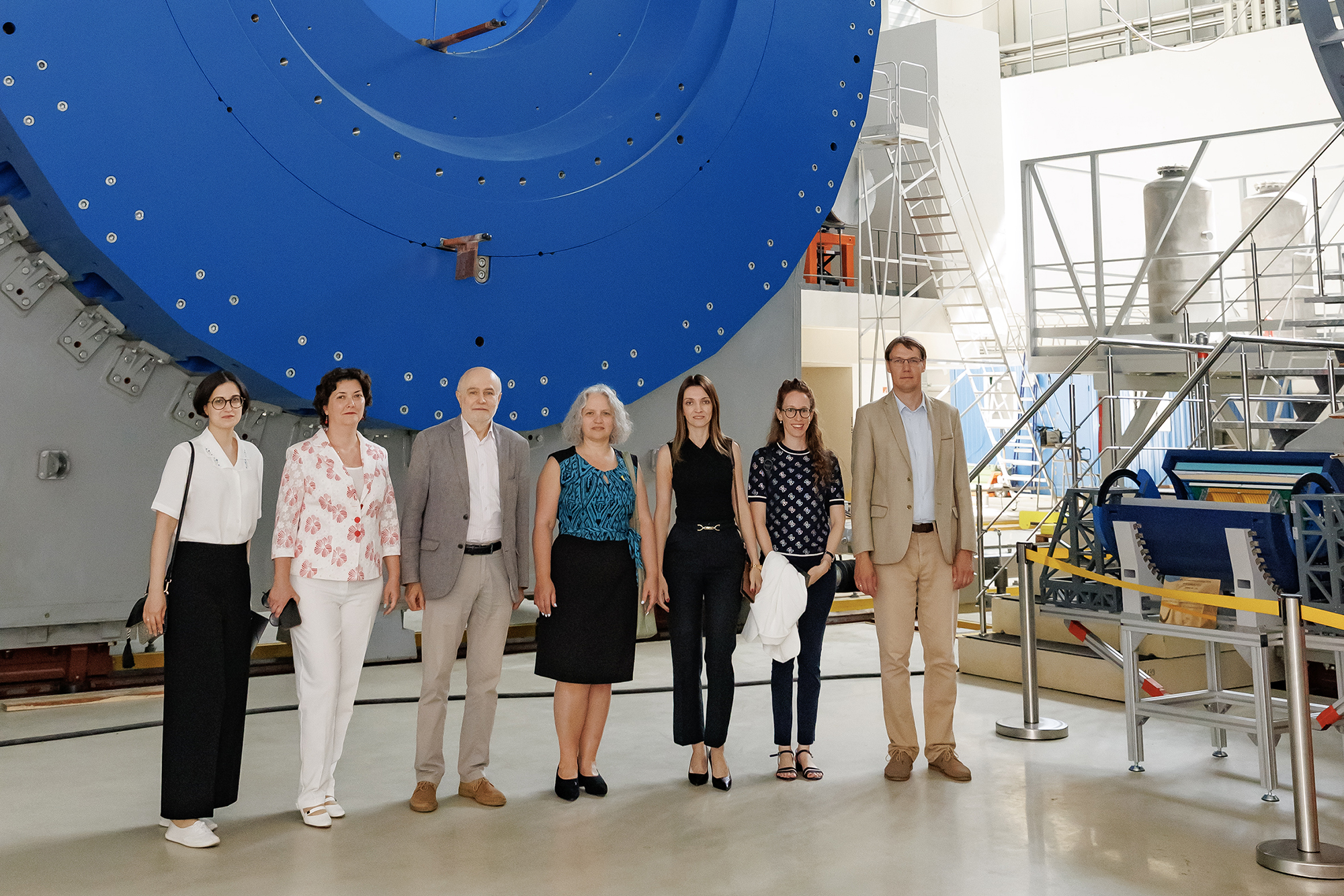 The programme of the visit began with an excursion to the objects of JINR’s large research infrastructure. At the Laboratory of High Energy Physics, the guests toured the NICA Accelerator Complex, including the experimental pavilion of the MPD Detector, the Synchrophasotron Hall, and the superconducting magnet factory. At the Laboratory of Nuclear Reactions, the delegation got acquainted with the Superheavy Element Factory based on the DC-280 Cyclotron and visited the FLNR Applied Physics Centre.