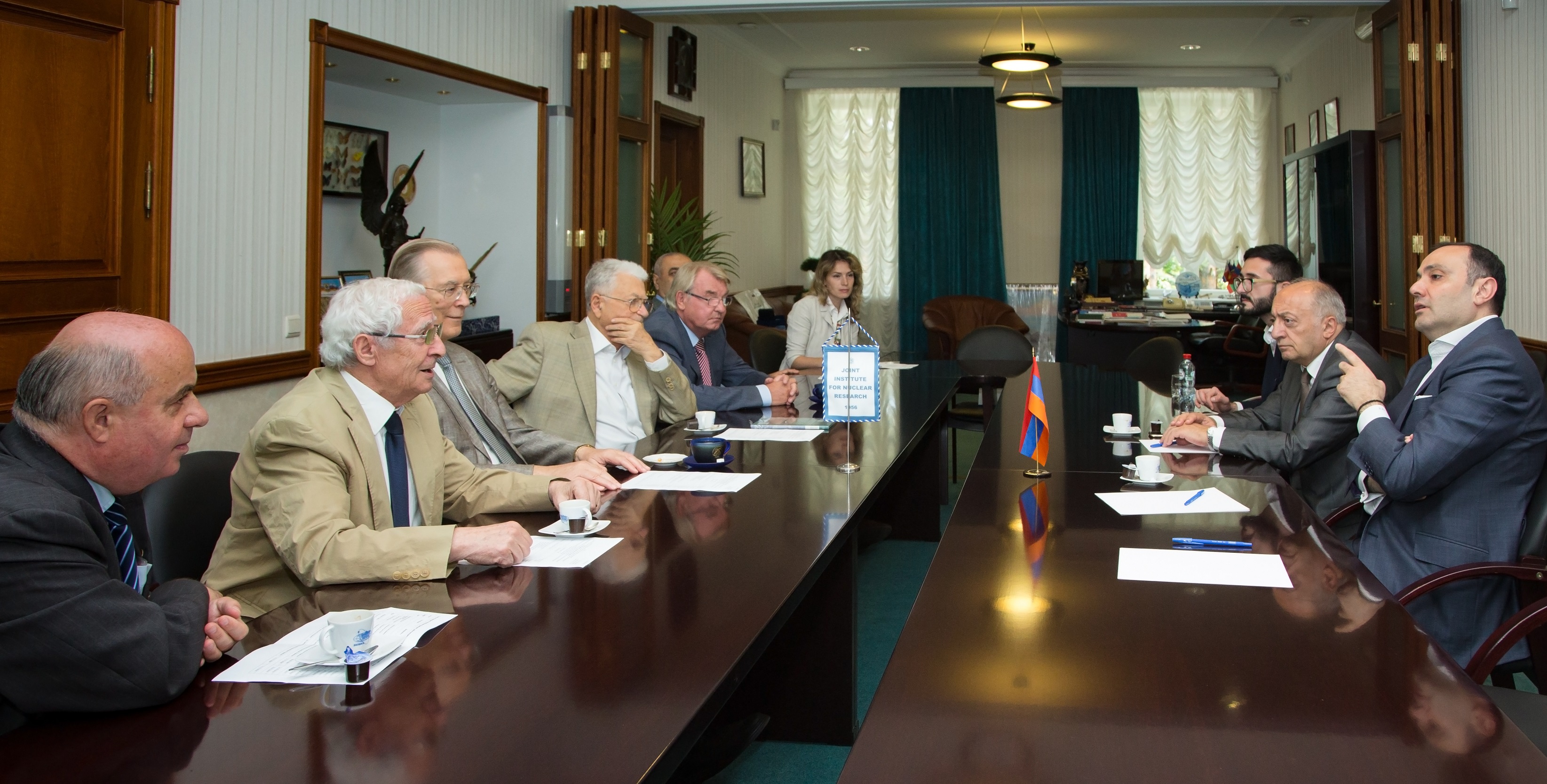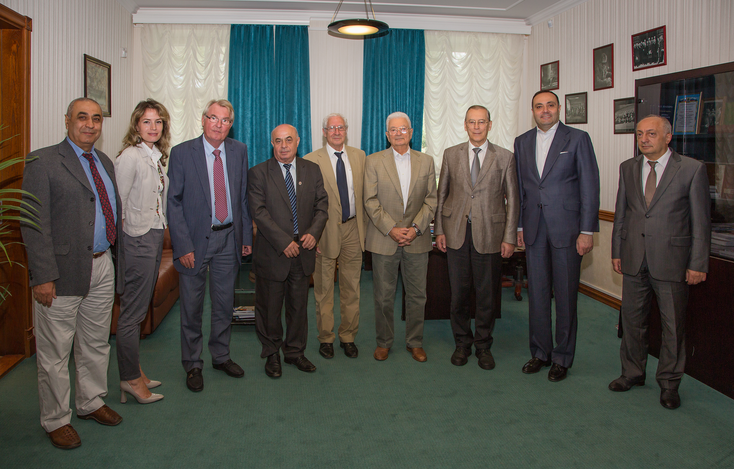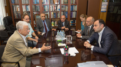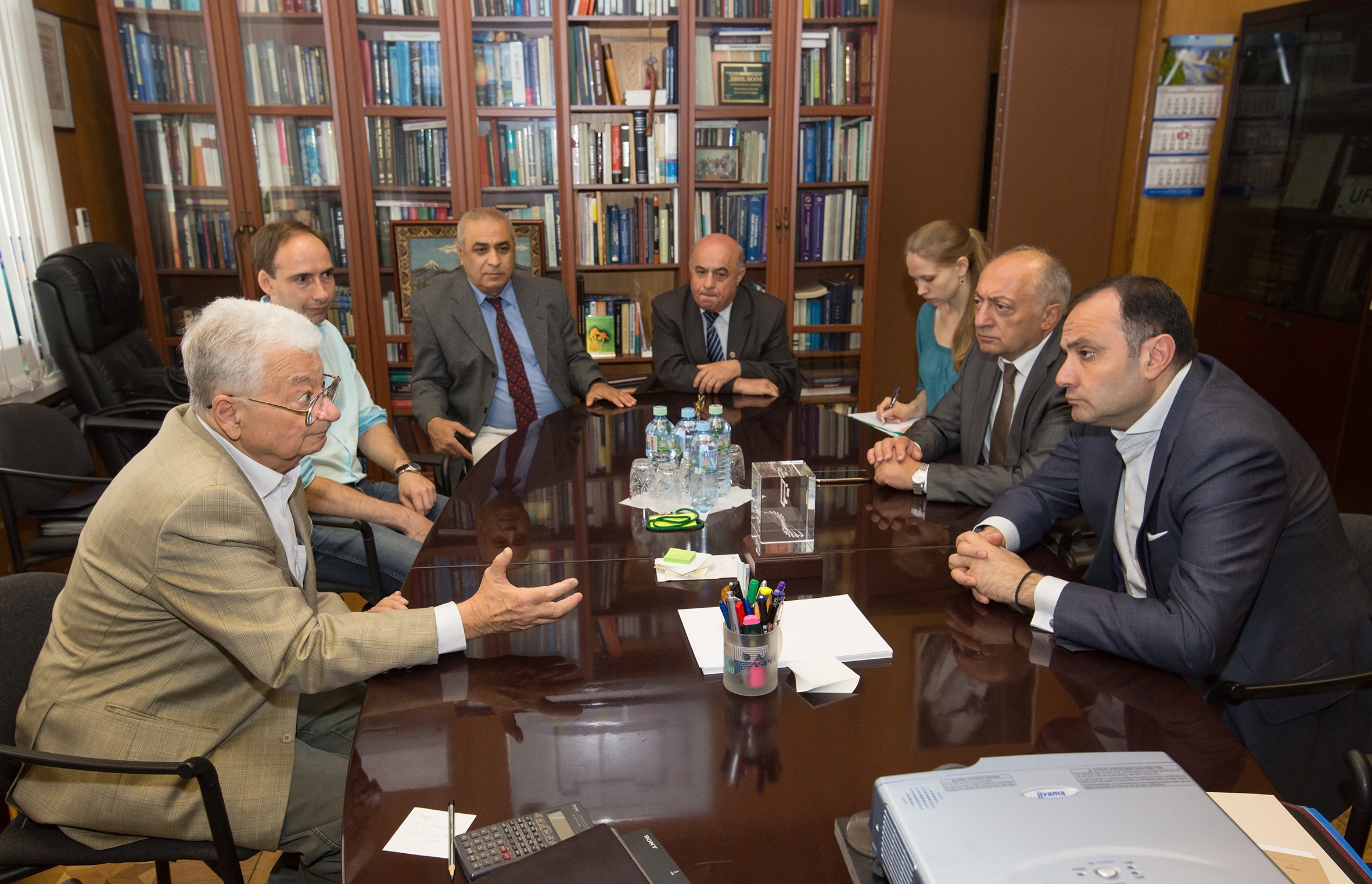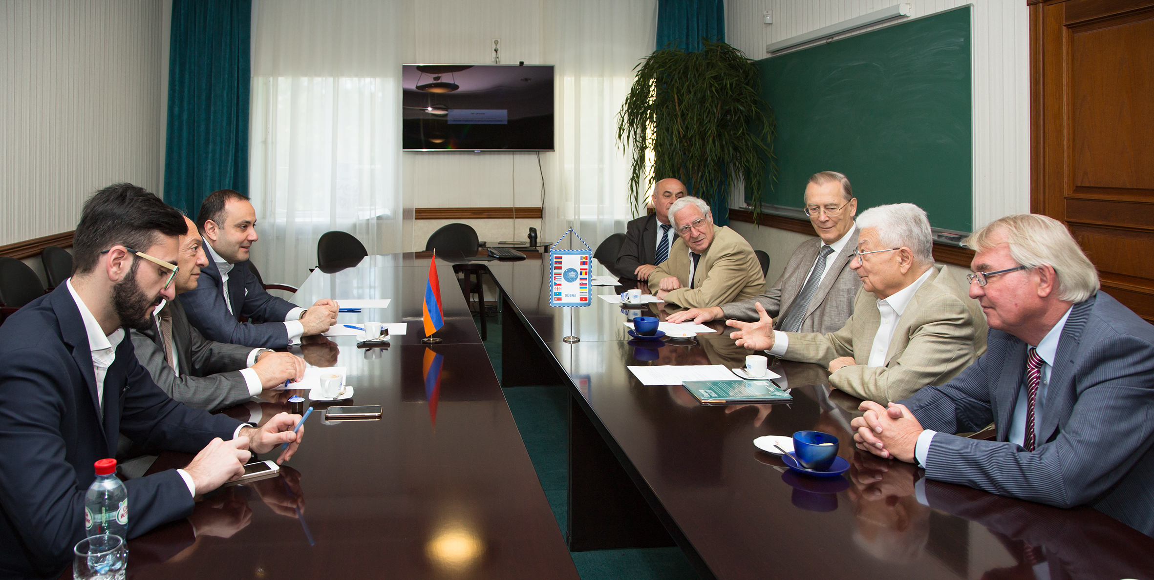 JINR Director, RAS Academician V.A. Matveev, Vice-Director M.G. Itkis, Director of the Flerov Laboratory of Nuclear Reactions S.N. Dmitriev, FLNR Scientific Advisor Yu.Ts. Oganessyan, Deputy Head of the JINR International Cooperation Department A.A. Kotova, leader of the Armenian national group Eh. Airian and senior researcher of the Dzhelepov Laboratory of Nuclear Problems G. Torosyan welcomed the guests at the JINR Directorate.