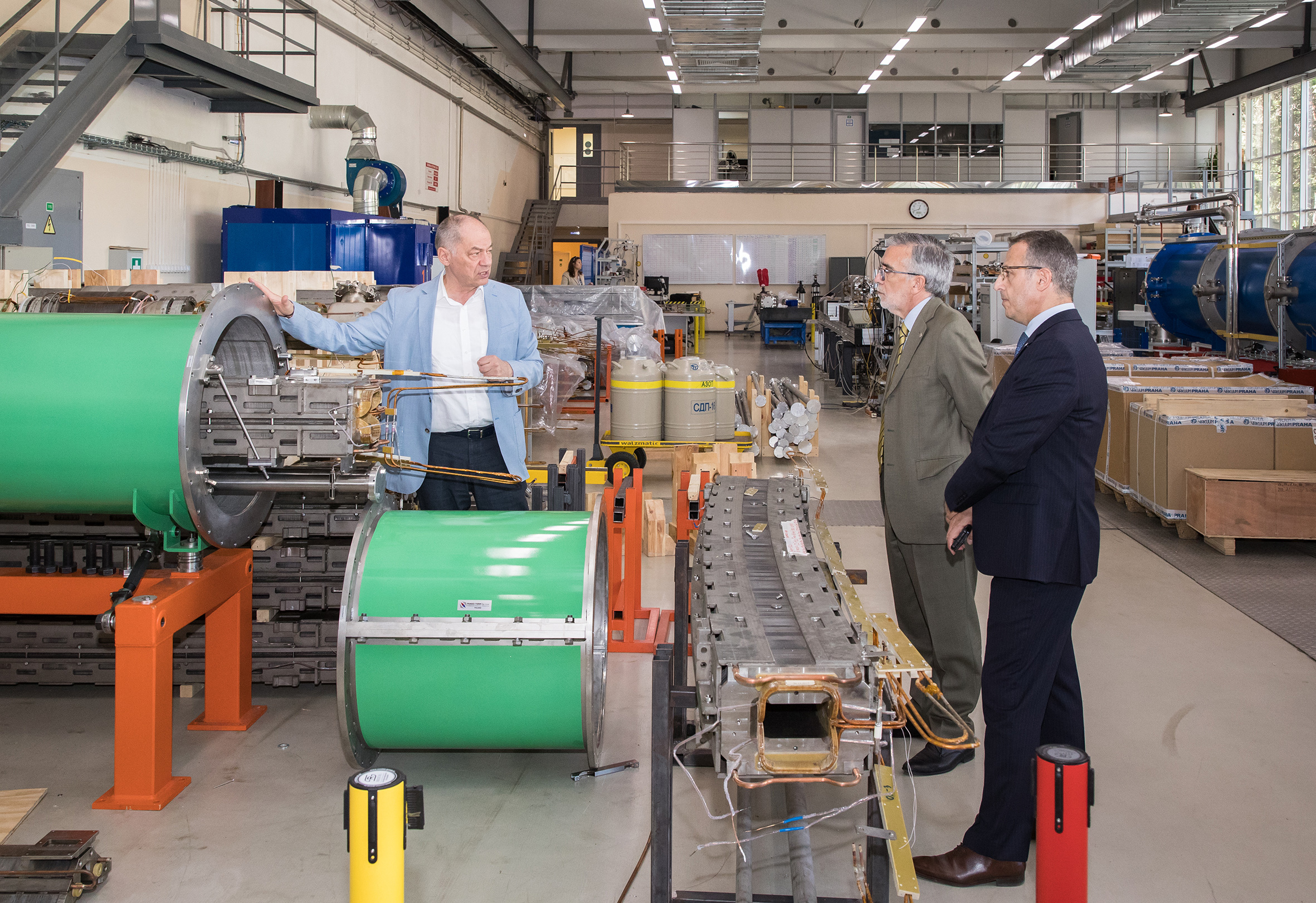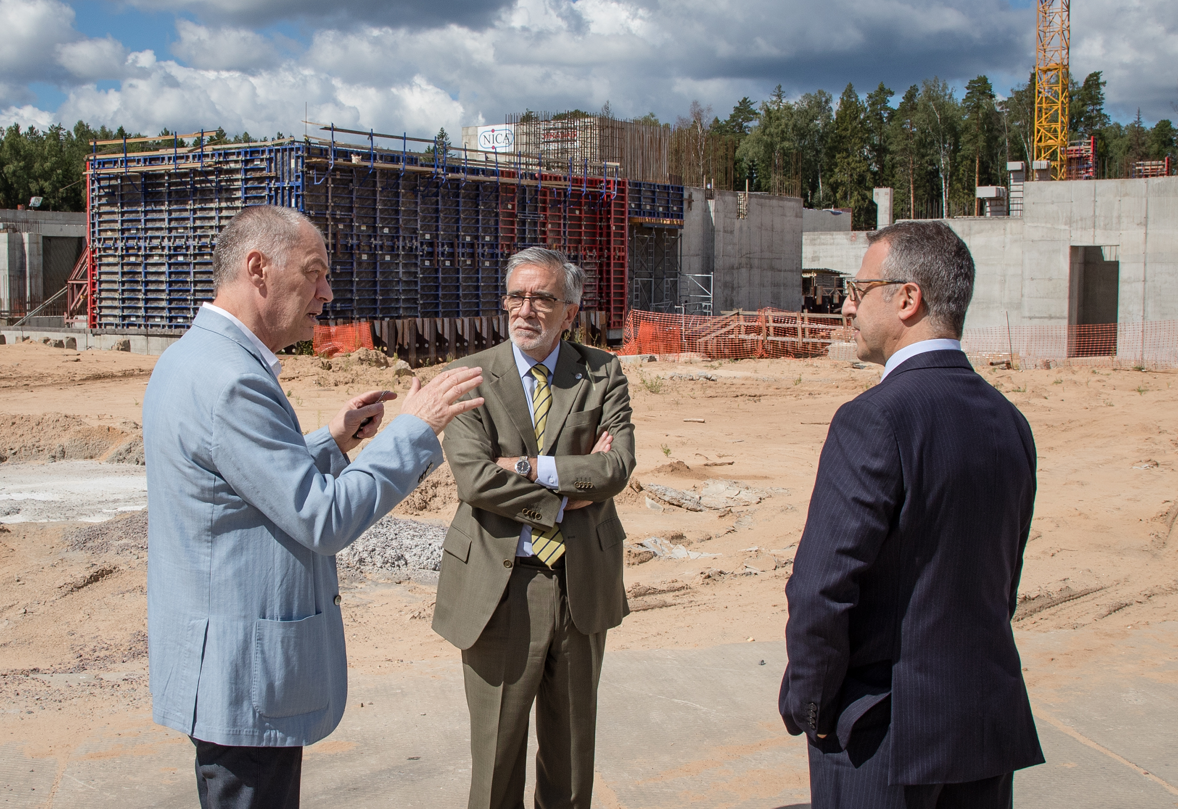 In the photo (left to right): Counsellor on Science and Technology of the Embassy of the French Republic in RF Abdo Malac, Ambassador Extraordinary and Plenipotentiary of the Republic of Chile to the RF Mr. Rodrigo Jose Nieto Maturana and JINR Vice-Director Vladimir Kekelidze during the excursion to VBLHEP