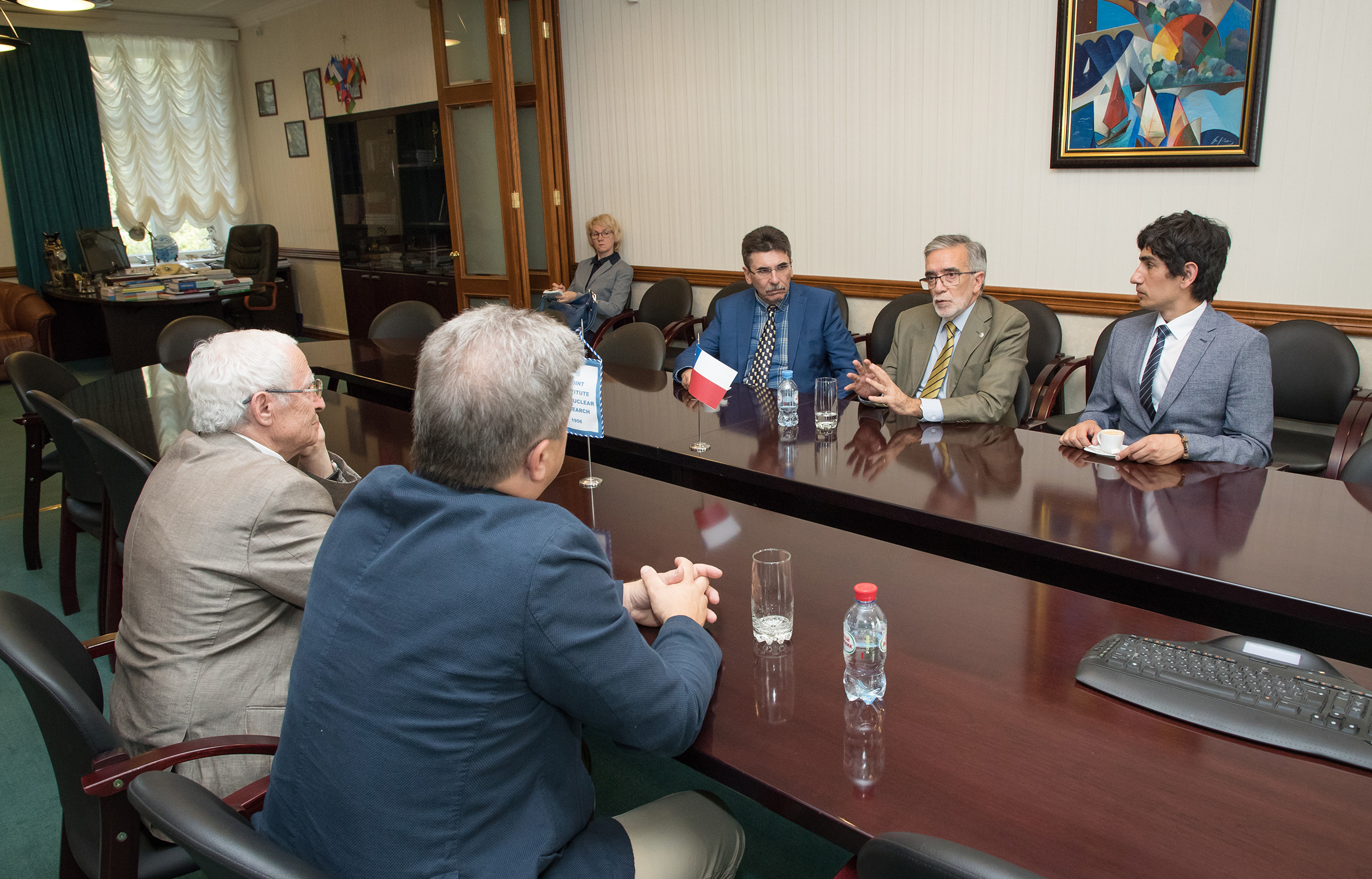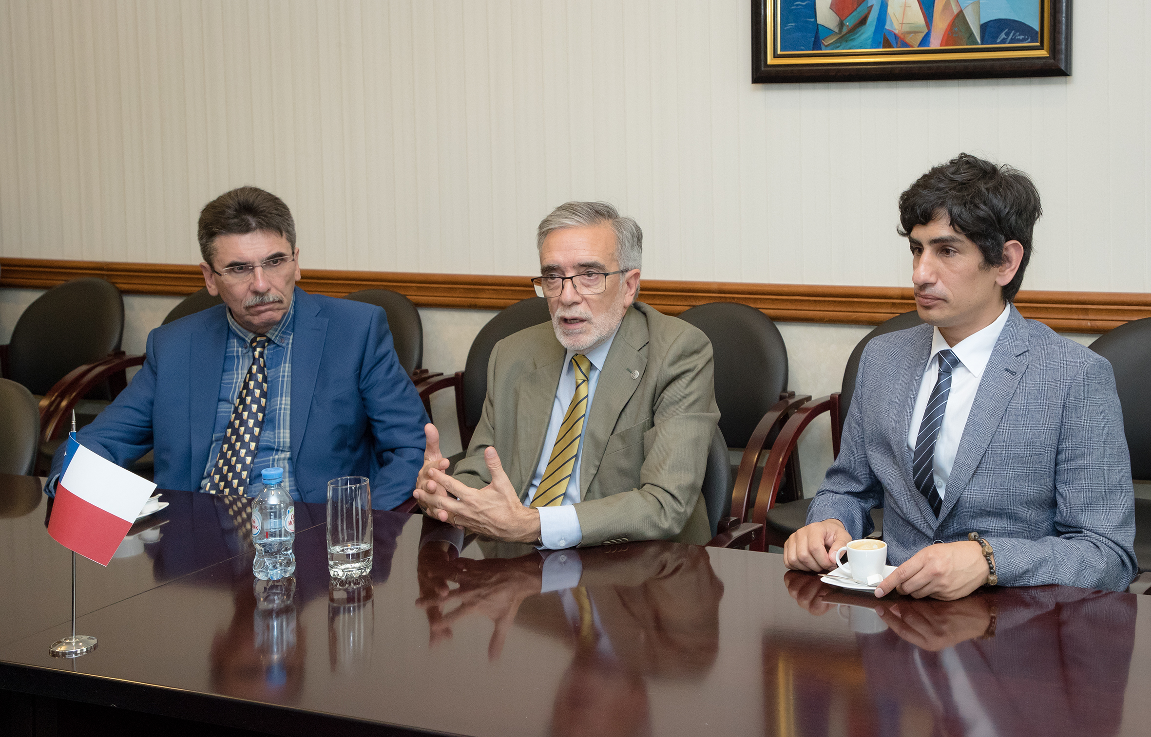 The Ambassador met with representatives of the Federico Santa Maria Technical University (Valparaiso, Chile) in JINR who participate in joint work with JINR on NICA/MPD: an engineer of the CCTVal Scientific and Technical Centre Elias Rosas and titular Professor Sergey Kovalenko, who previously worked for a long time at the Dzhelepov Laboratory of Nuclear Problems of JINR and currently collaborates with JINR scientists in neutrino physics and physics beyond the Standard Model.