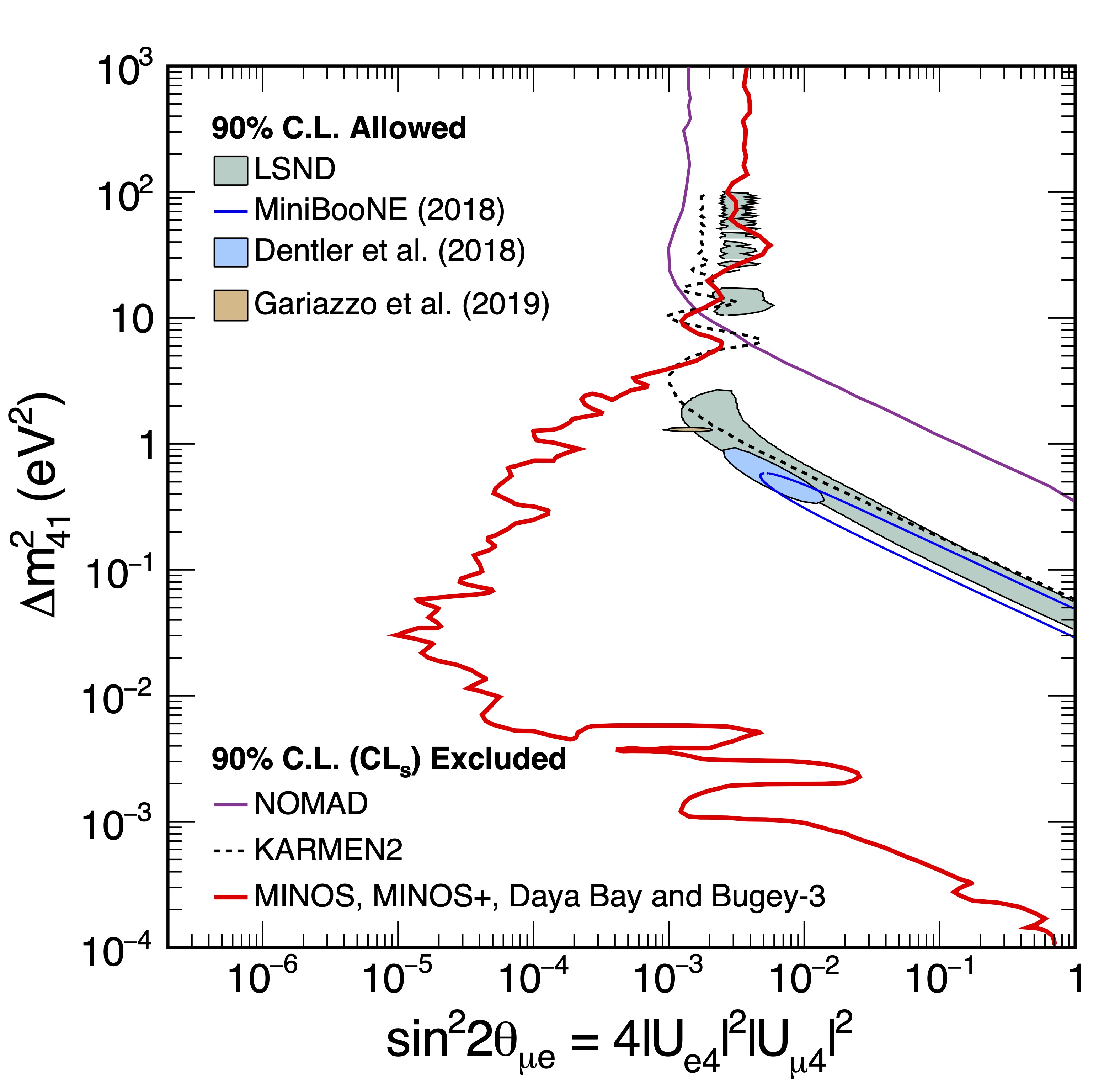 Even though the vast majority of accumulated data to date can be explained by three known neutrinos, a few experiments have reported anomalous observations suggesting the existence of additional types. Among these are the LSND experiment at the Los Alamos National Laboratory and the MiniBooNE experiment at Fermilab. Both exposed their detectors to a beam of muon neutrinos and reported an excess of electron neutrino candidate events beyond what would be expected from oscillations involving only the three known neutrinos, but possibly reconcilable if a new type of neutrino – a sterile neutrino – was involved. Sterile neutrinos would not be directly detectable for they do not interact with matter, but their oscillation with the three known neutrinos would provide a unique pathway to establish their existence. However, the new results from Daya Bay and MINOS+ question this possibility.