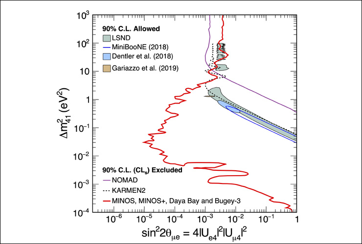 An international group of more than 260 scientists have produced one of the most stringent tests for the existence of sterile neutrinos to date. The scientists from two major international experimental groups, Daya Bay in China and the MINOS+ at the Department of Energy’s Fermilab, are reporting results in Physical Review Letters (Phys. Rev. Lett. 125, 071801 (2020)) ruling out oscillations into one sterile neutrino as the primary explanation for unexpected observations in the recent LSND and MiniBooNE experiments.