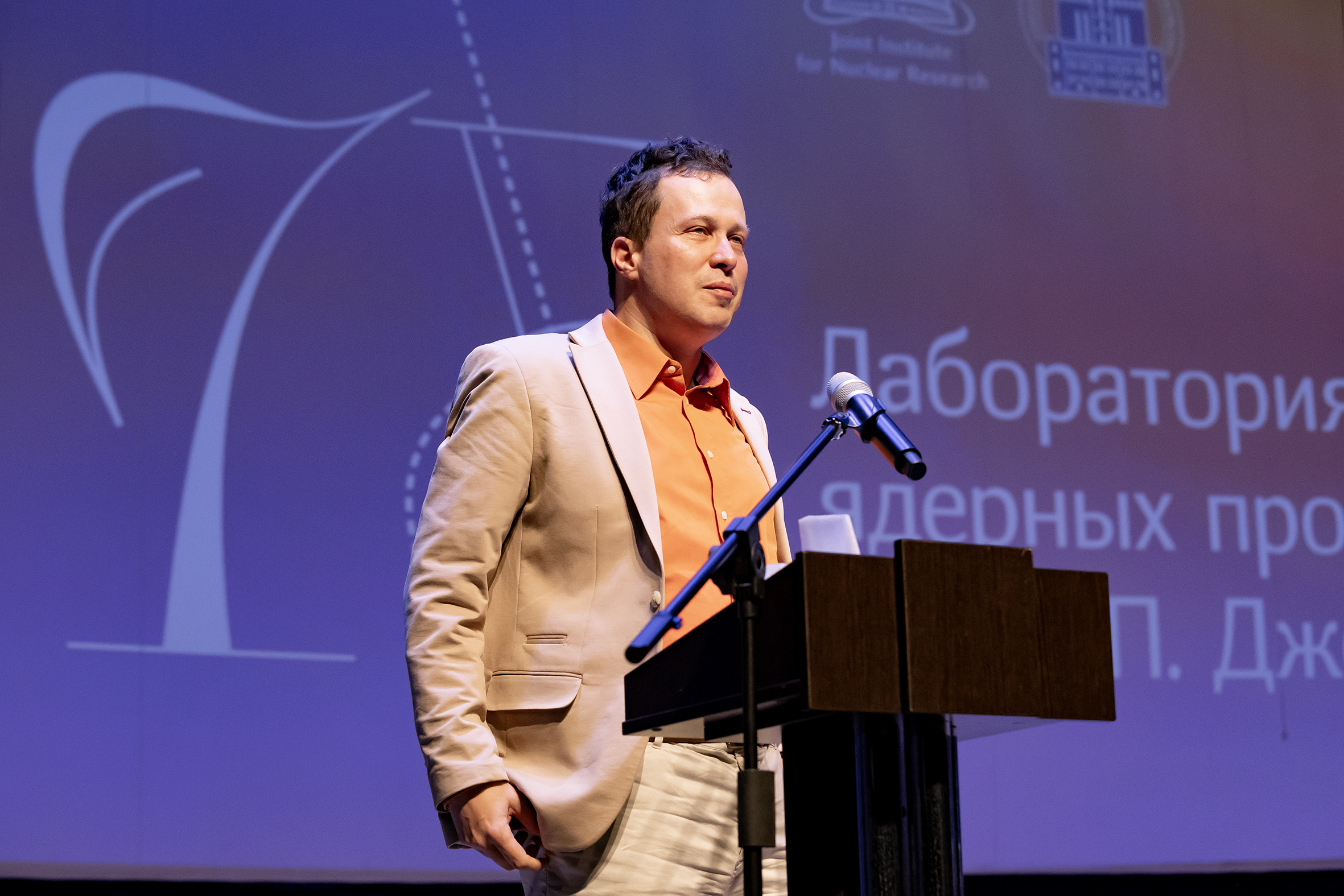 AYSS JINR Chair, Deputy of the Dubna City District Council of Deputies, a DLNP JINR researcher Vladislav Rozhkov highlighted the Laboratory’s key role in shaping many scientific fields that have definen modern physics ever since the launch of the USSR’s first accelerator, the Synchrocyclotron. “The DLNP history is all about striving to understand the fundamental properties of matter and expand the boundaries of what is possible. The cornerstone of any scientific success is people. This success is impossible without the talent, hard work, and dedication of all those who devote their lives to doing science and developing the laboratories. Your enthusiasm and determination are an inspirational example for new generations of researchers,” Vladislav Rozhkov said.