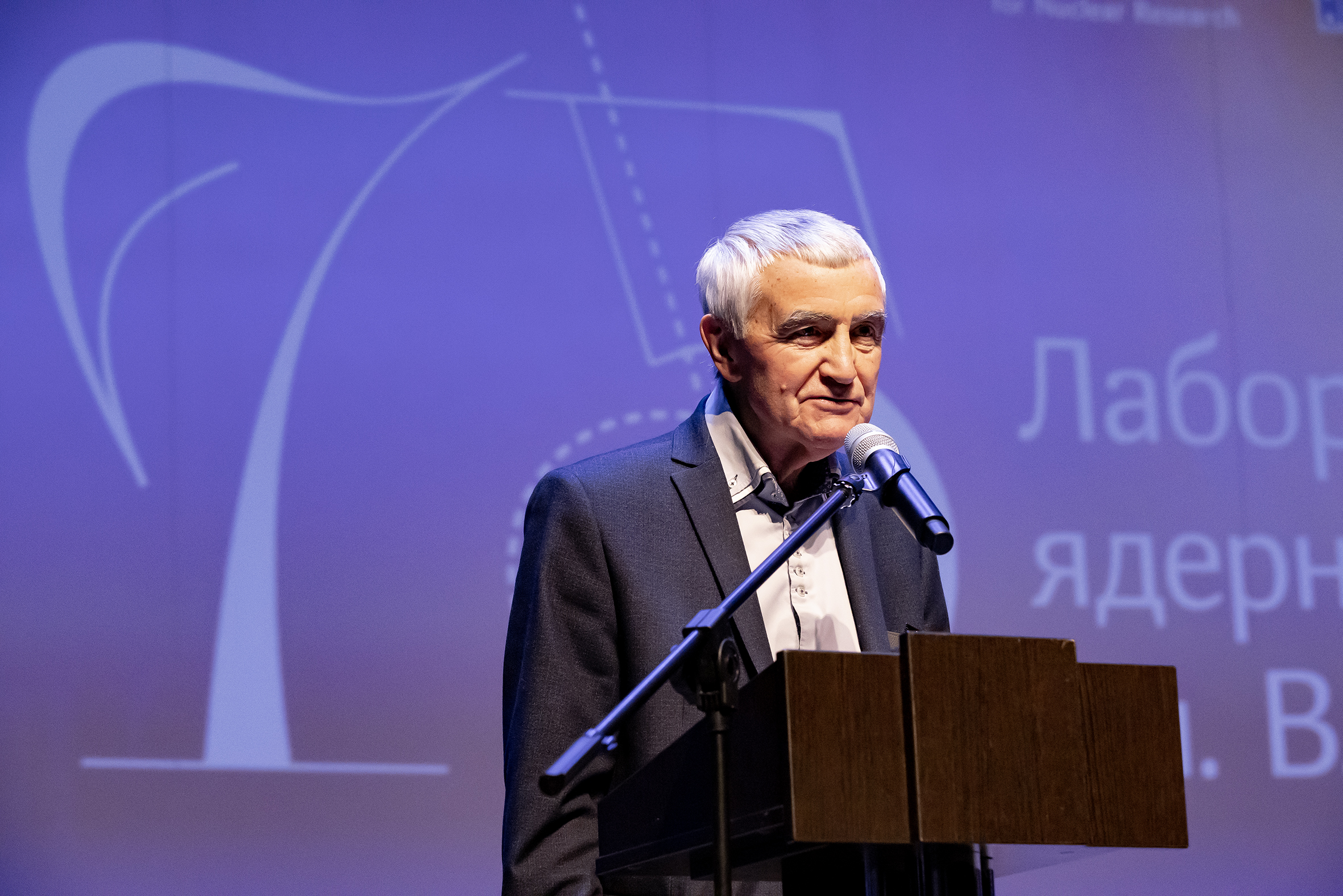 “Much has been discovered in physics over the 75 years since the launch of the first accelerator. My heart swells with pride when I think about the accomplishments and achievements of human thought in which our team was directly involved. Much of the modern physics’ understanding of the world, the nature of things, is largely determined by the research carried out in our Laboratory, at our Institute, or with our participation in radiobiology and nuclear, strong and weak interaction, and neutrino physics,” Evgeny Yakushev summarised. The DLNP Director expressed gratitude to all veterans of the Laboratory who were directly involved in its scientific achievements, from measuring the cross-section of nuclear reactions in Laboratory’s first years to establishing the latest world-class facilities such as the Baikal neutrino telescope.