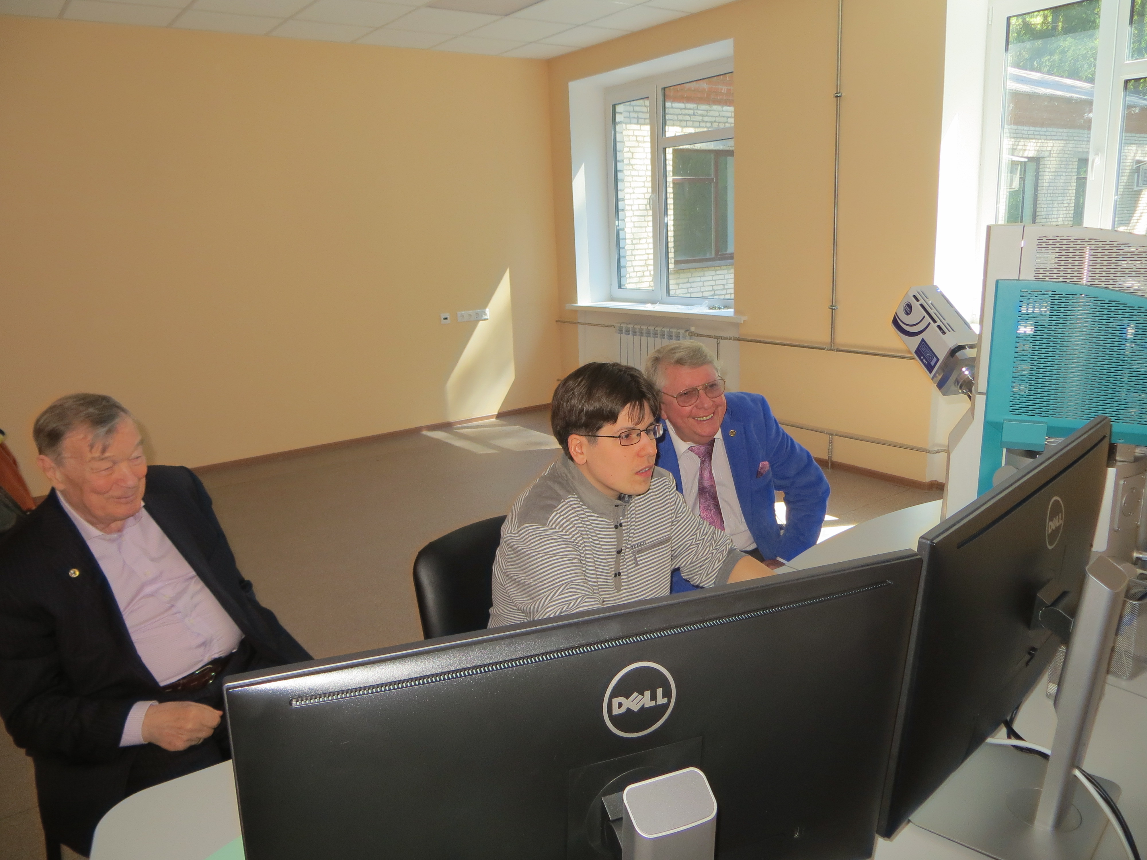 В мае в Лаборатории радиационной биологии ОИЯИ заработал новый электронный микроскоп. С его возможностями познакомились начальник сектора астробиологии ЛРБ академик РАН Алексей Юрьевич Розанов (Палеонтологический институт РАН, Москва) и профессор Ричард Гувер (США).