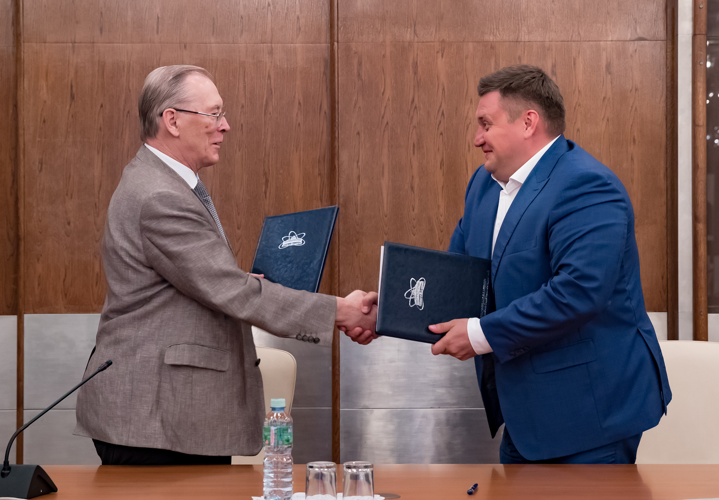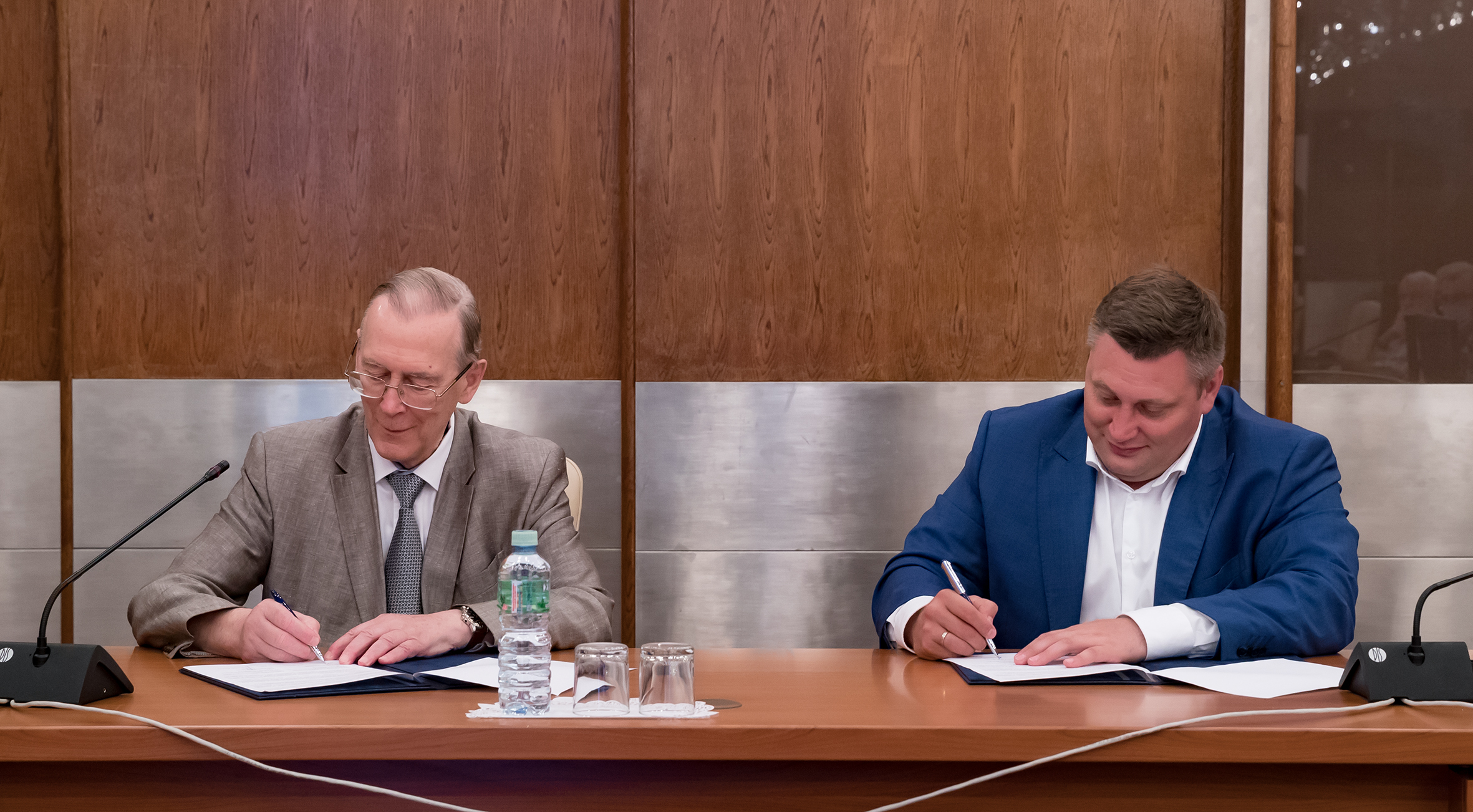 Director of the JINR University Centre S. Z. Pakuliak gave examples of the favourable experience of cooperation between JINR and the Dubna City Administration in the field of education. And to continue and consolidate everything achieved at the meeting, JINR Director V. A. Matveev and Head of the Dubna City Administration M. N. Danilov signed an Agreement between JINR and the Dubna City Administration on educational issues.