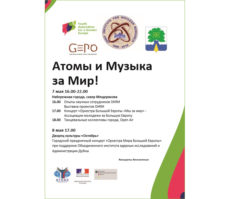 I visited Dubna in October 2015 during the visit of foreign journalists under the “Rossotrudnichestvo” program. I was particularly impressed with the Joint Institute for Nuclear Research: principles, working conditions of scientists and cultural environment, in which they are immersed. Dubna – is an example of city of the future. There I met people who are open to new ideas. Then it occurred to me that we could unite the peaceful nuclear technology research and music, because both of these phenomena represent the way of the human mind in search of truth. Science and music for me are inseparable things. The idea of the concert “Music and Atoms for Peace” were born, on the basis of this concept. On May 7, we will have a joint event outdoors with research staff of JINR: while we will play on stage, researchers will demonstrate experiments and conduct research with young Dubna citizens.