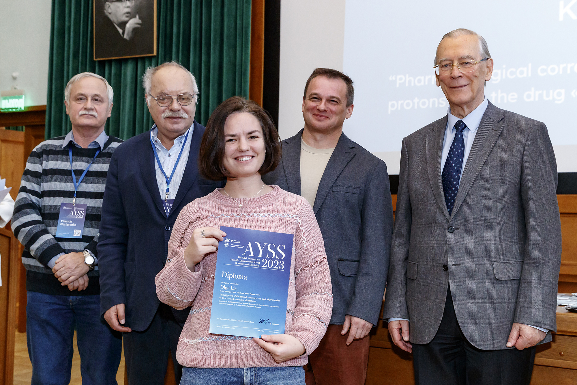 AYSS-2023 Organizing Committee notes: “Such a success of the event would not have been possible without the huge contribution of the Scientific Advisory Board and the DLNP JINR as the co-organizer of the conference. Many JINR employees were involved as moderators of sections and juries, assisting the Organizing Committee in solving issues. DLNP, VBLHEP, FLNP, FLNR, and LRB provided great assistance the external participants. MLIT helped with sound equipment and broadcasting of scientific sections of the conference to JINR Information Centres. BLTP and DLNP provided convenient venues for the event. And the staff of the Institute’s Departments, and the UC in particular, ensured uninterrupted document flow and paperwork for a large number of external participants, whose admission was a non-trivial task. DLNP Scientific Communications Group, the Communications and Information Support Department, and the UC Social Communications Group provided us with comprehensive information support. And although the conference is traditionally associated with AYSS, the entire Institute worked as a single well-coordinated mechanism. We are grateful for all the help received. This is a truly great scientific achievement, and we want to share the joy of success with all the colleagues involved.”