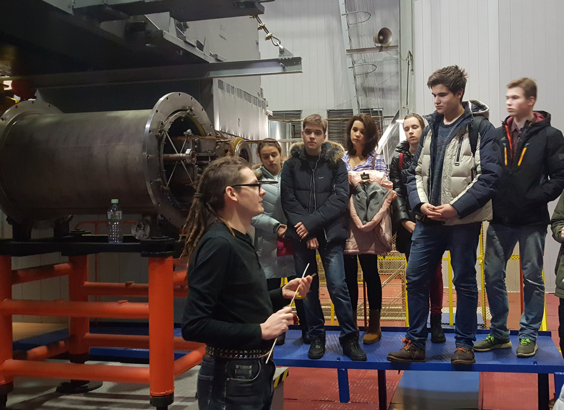 Школьники, заинтересовавшиеся кафедрой физико-технических систем и кафедрой персональной электроники, посетили Лабораторию физики высоких энергий им. В.И. Векслера и А.М. Балдина. Им рассказали о физике тяжелых ионов, взаимодействии кварков и об устройстве многоцелевого детектора MPD проекта NICA. Ребятам показали зал изготовления и тестирования уникальных сверхпроводящих магнитов, легендарный ускоритель Синхрофазотрон и линейный ускоритель ЛУ-20 со сверхпроводящим циклическим ускорителем Нуклотроном, подробно объяснили принцип действия нового линейного ускорителя HILAC будущего ускорительного комплекса проекта NICA.