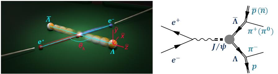 Fig. 1 Graphical illustration of the e+e → J/ψ → ΛΛ̅ reaction (Image by BESIII Collaboration)