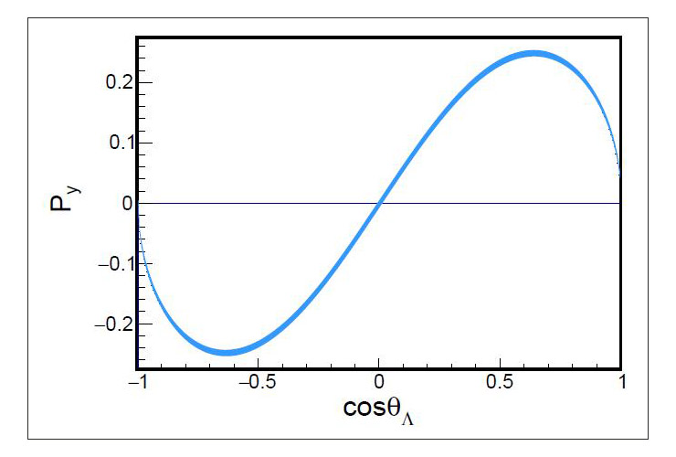 The Λ hyperons in the reaction were polarized in the y direction (defined in Fig. 1) and BESIII has determined the precise value of the polarization, which depends on the production angle θΛ as shown in Fig. 3, with the maximum reaching 25%. The observed polarization makes it possible to determine new values for the parameters of hyperon decays. The BESIII result corrects by 17% the value used in many experiments for decades. This calls for reinterpretation of all Λ hyperon polarization results.