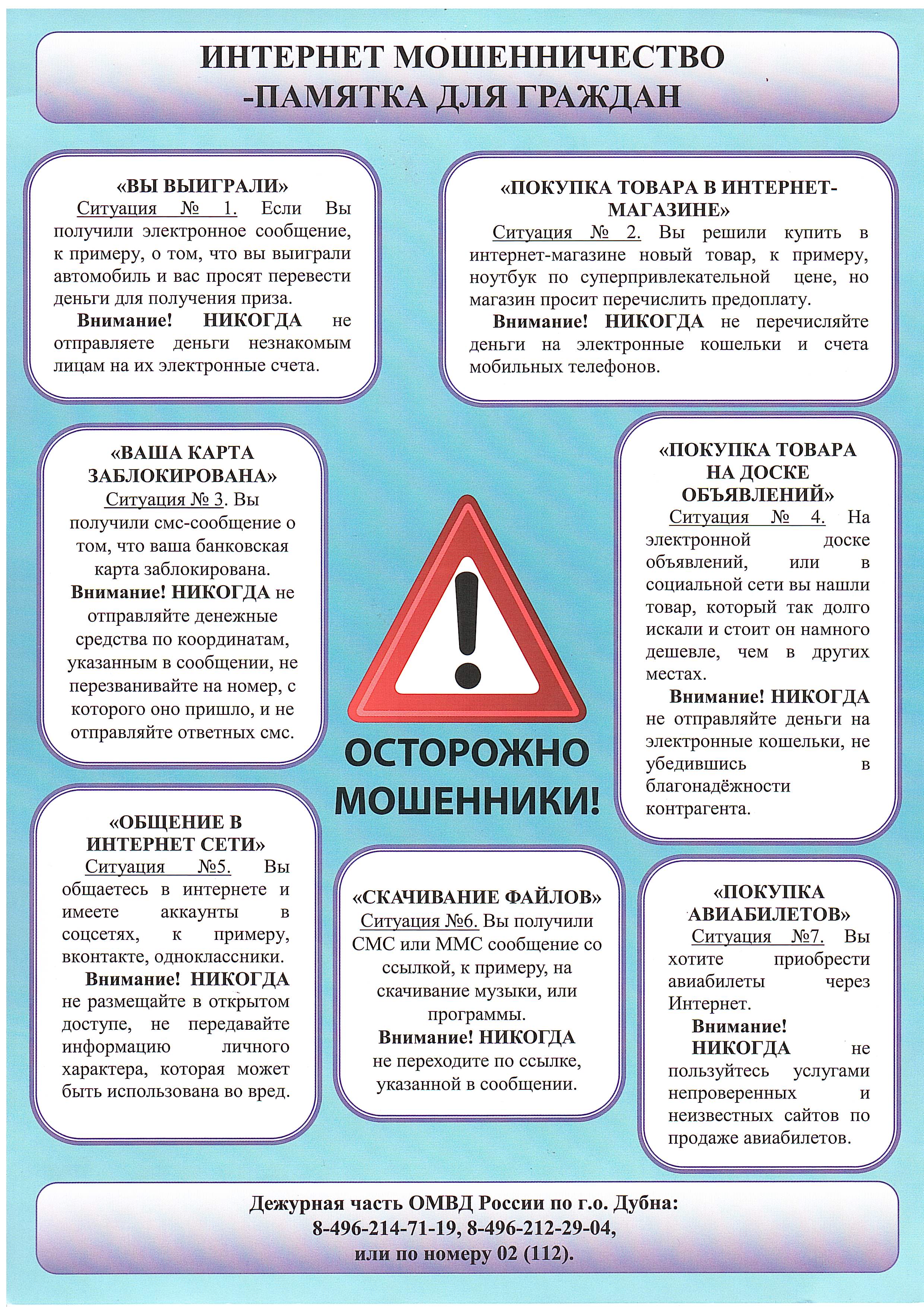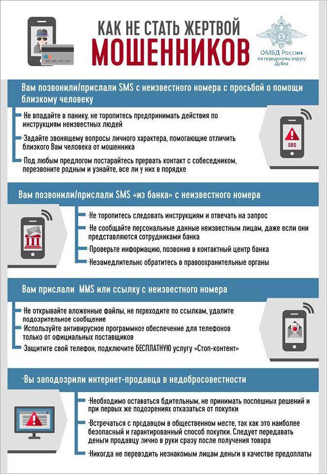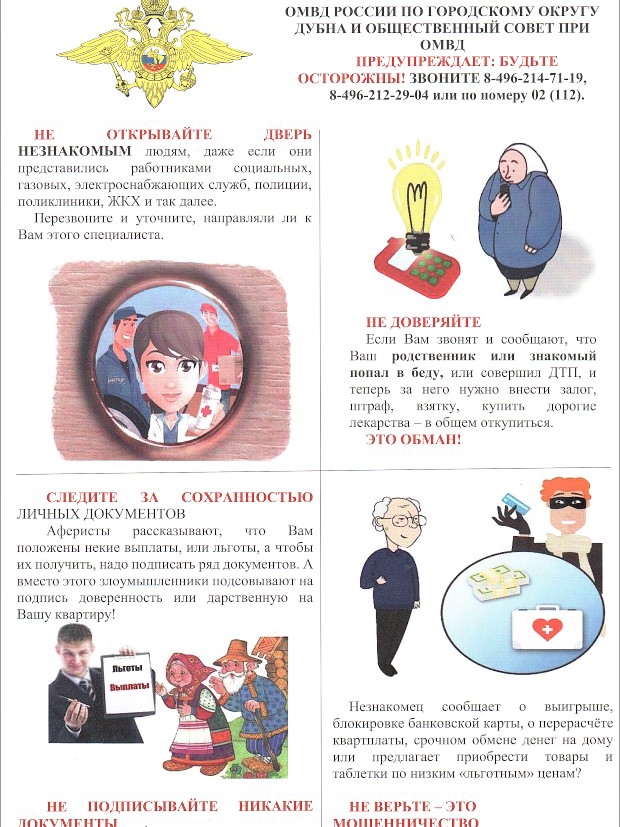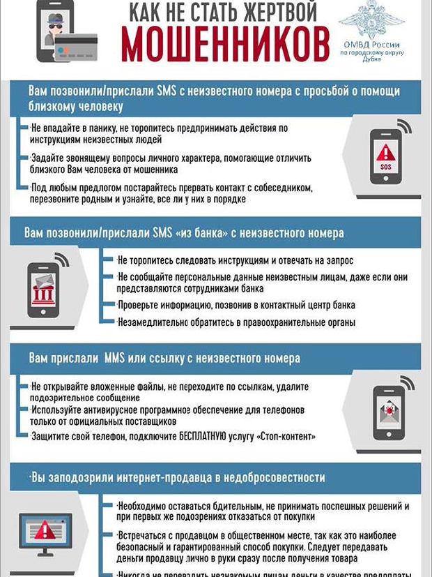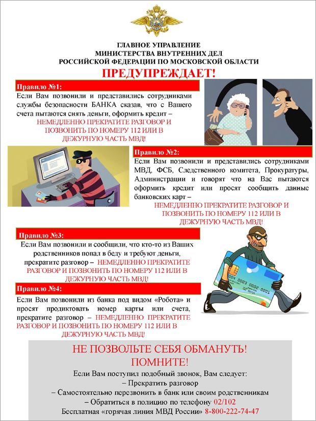 Tips of the Russian MIA Administration for the Dubna region for protecting yourself from scams:
