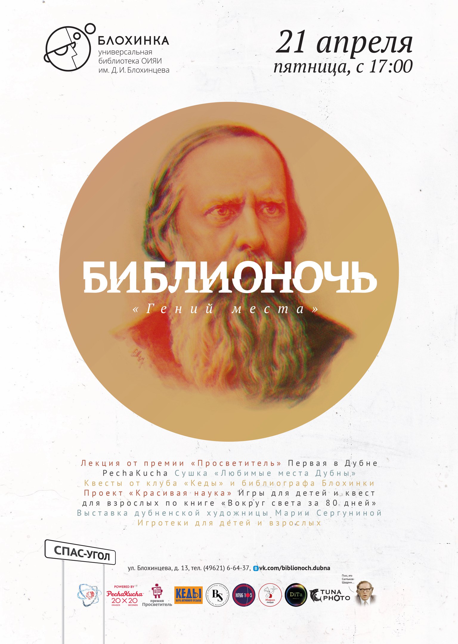 Mikhail Saltykov-Shchedrin become the “face” of this year event poster. The famous writer was born in the village of Spas-Ugol (an hour drive from Dubna) where he spent his childhood and where he often came to during his lifetime.