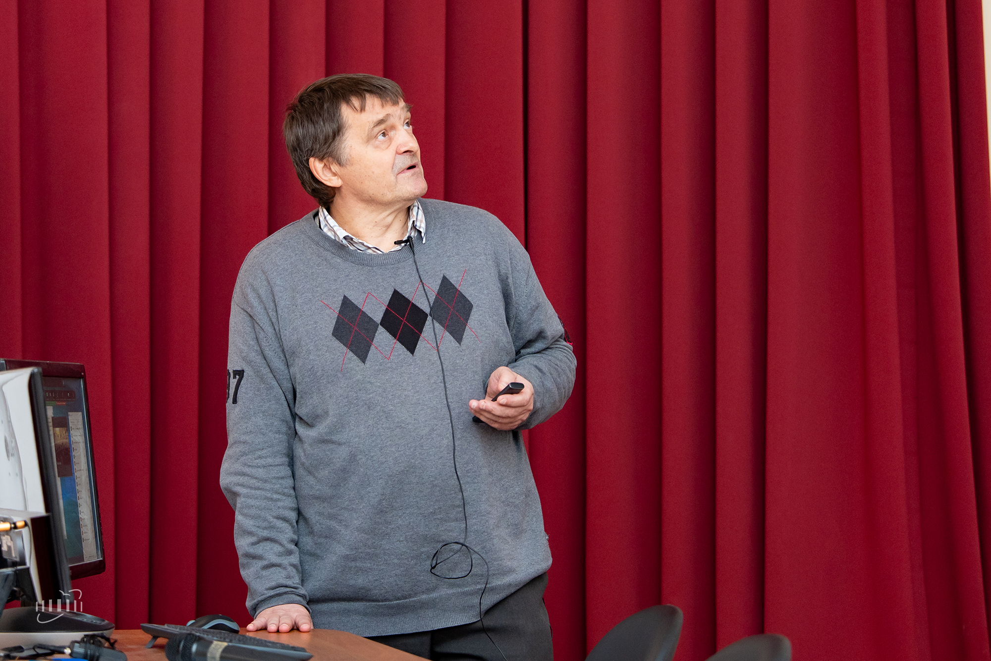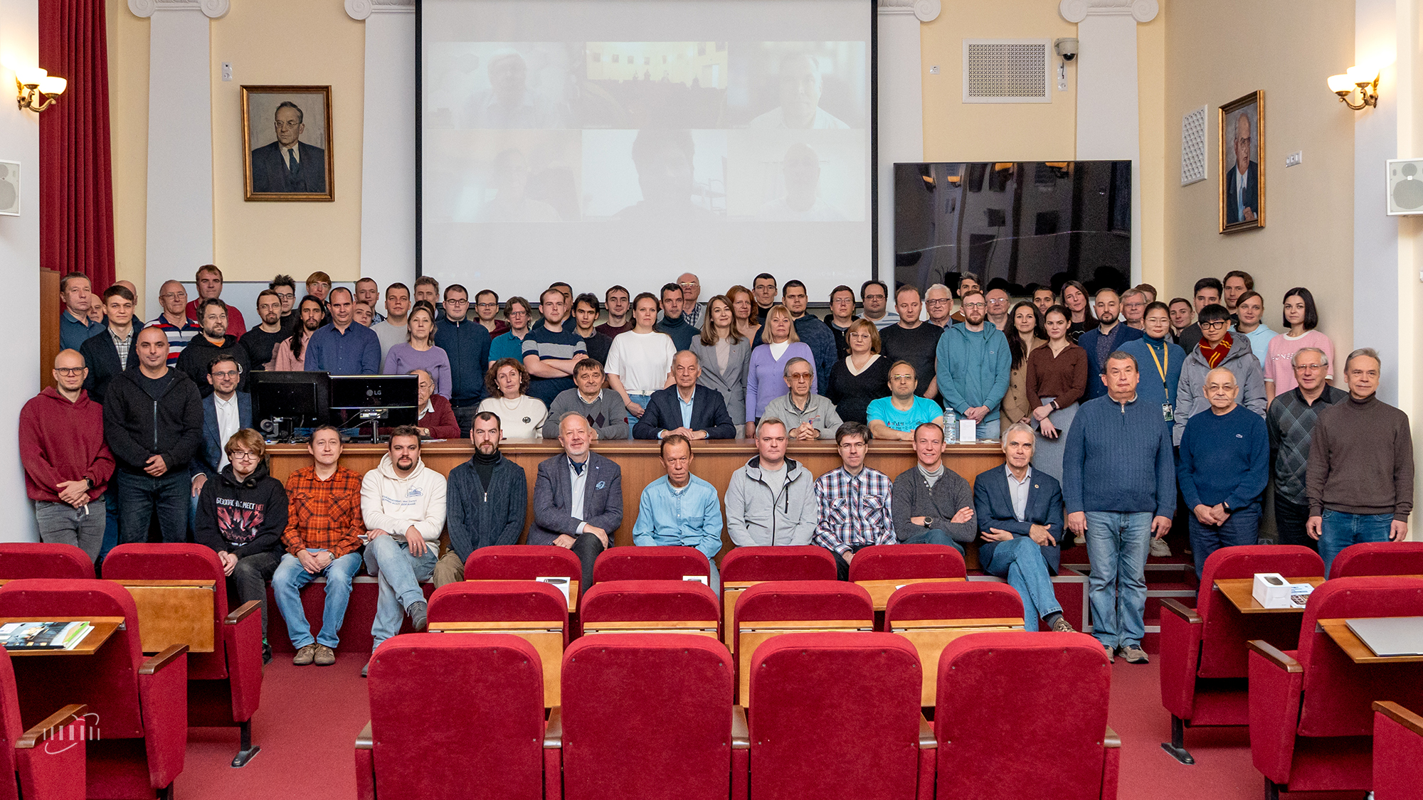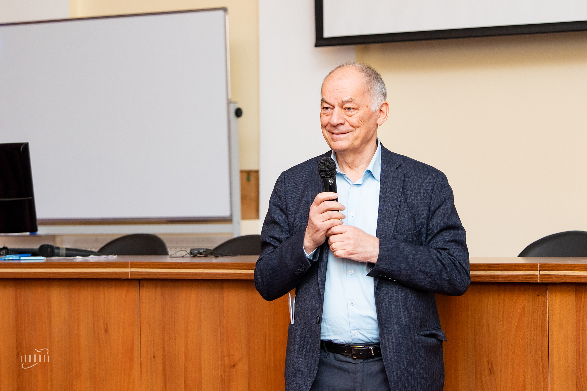 Vice-Director of the Joint Institute for Nuclear Research, Academician of the Russian Academy of Sciences Vladimir Kekelidze gave an opening speech. He congratulated BM@N Collaboration Spokesperson, VBLHEP Chief Researcher Richard Lednicky on his 80th birthday, noting his significant contribution to high energy physics. “Coming from a brilliant scientific school, he is one of the founders of the correlation femtoscopy method, which makes him a true ‘classic scientist,'” the JINR Vice-Director emphasised.