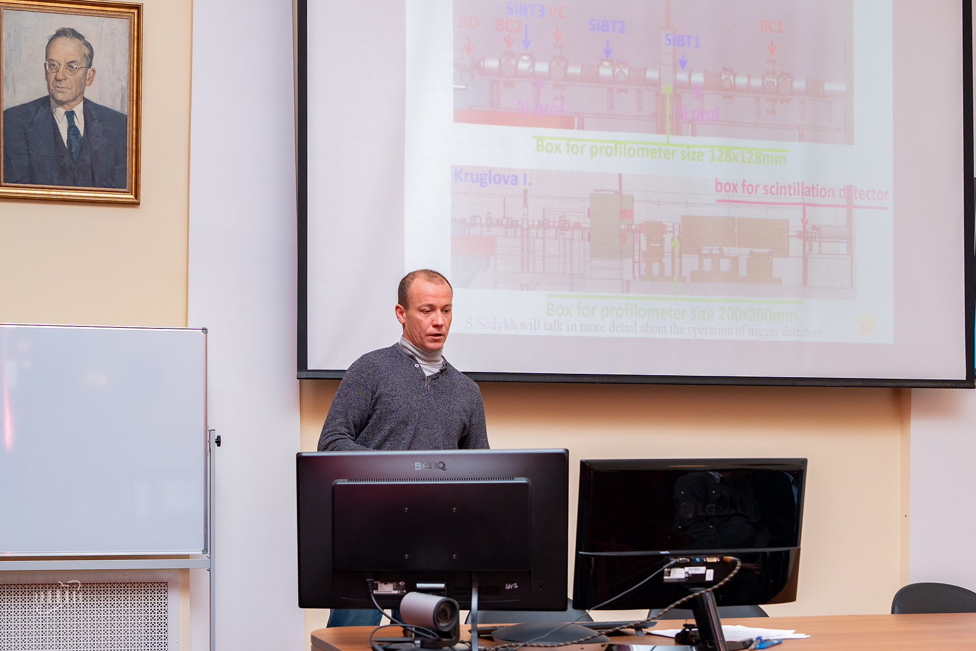 Deputy Head of the VBLHEP JINR Scientific and Experimental Department of the Multi-Purpose Detector (MPD) Semyon Piyadin continued the plenary session with an update on the modernisation and installation of the BM@N detector systems. He shared that the facility’s main detecting elements were successfully installed in the experimental pavilion, and the installation of the central tracking system inside BM@N’s analysing magnet finished. In addition, the collaboration’s specialists conducted tests of all magnetic elements, mechanical drives, and the vacuum ion pipe. Semyon Piyadin emphasised that the launch of the fast beam extraction channel from the Nuclotron to NICA‘s collider and the subsequent configuration of the extraction channel channel are necessary conditions for the implementation of the physics programme of the BM@N Experiment.