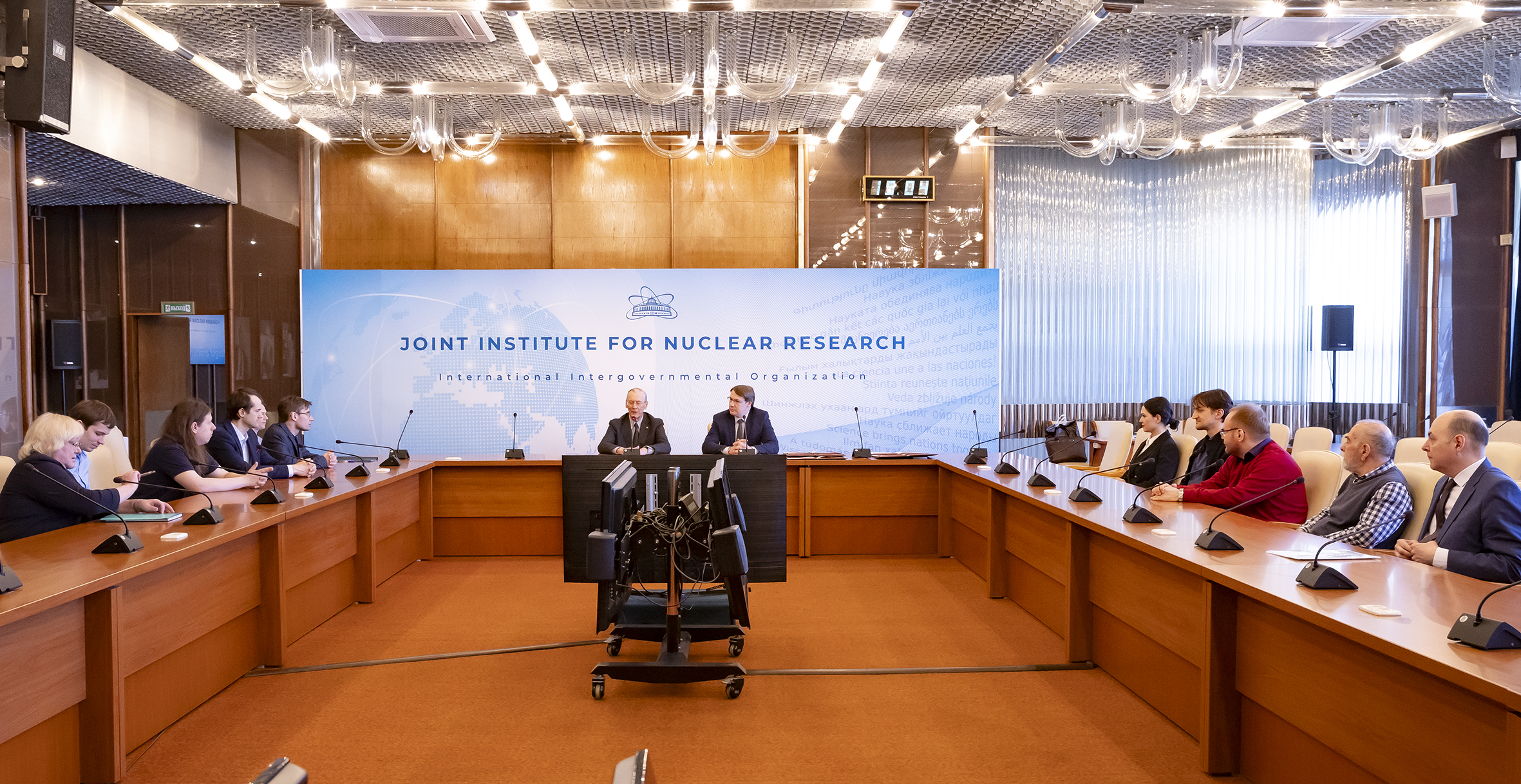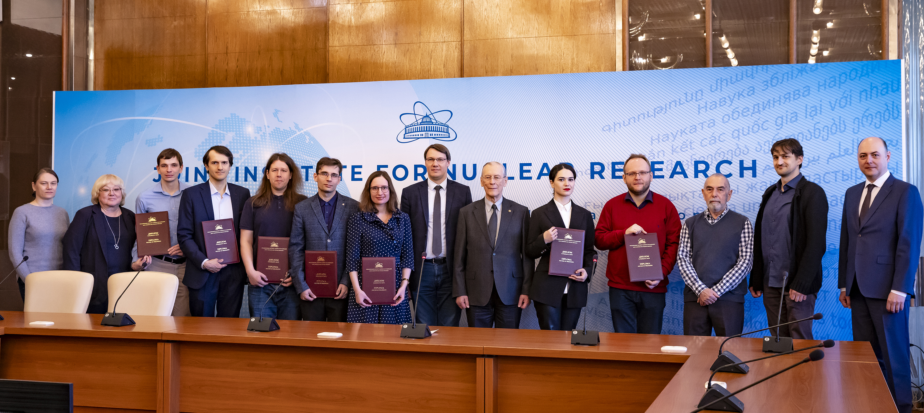 On 5 April, a ceremonial awarding of diplomas for scientific degrees was held at the JINR International Conference Centre. Eight scientists were awarded PhD diplomas. According to tradition, the event was held in a solemn atmosphere with the participation of representatives of the JINR Qualification Committee, guests and scientific secretaries of the dissertation councils in which the defenses were held.