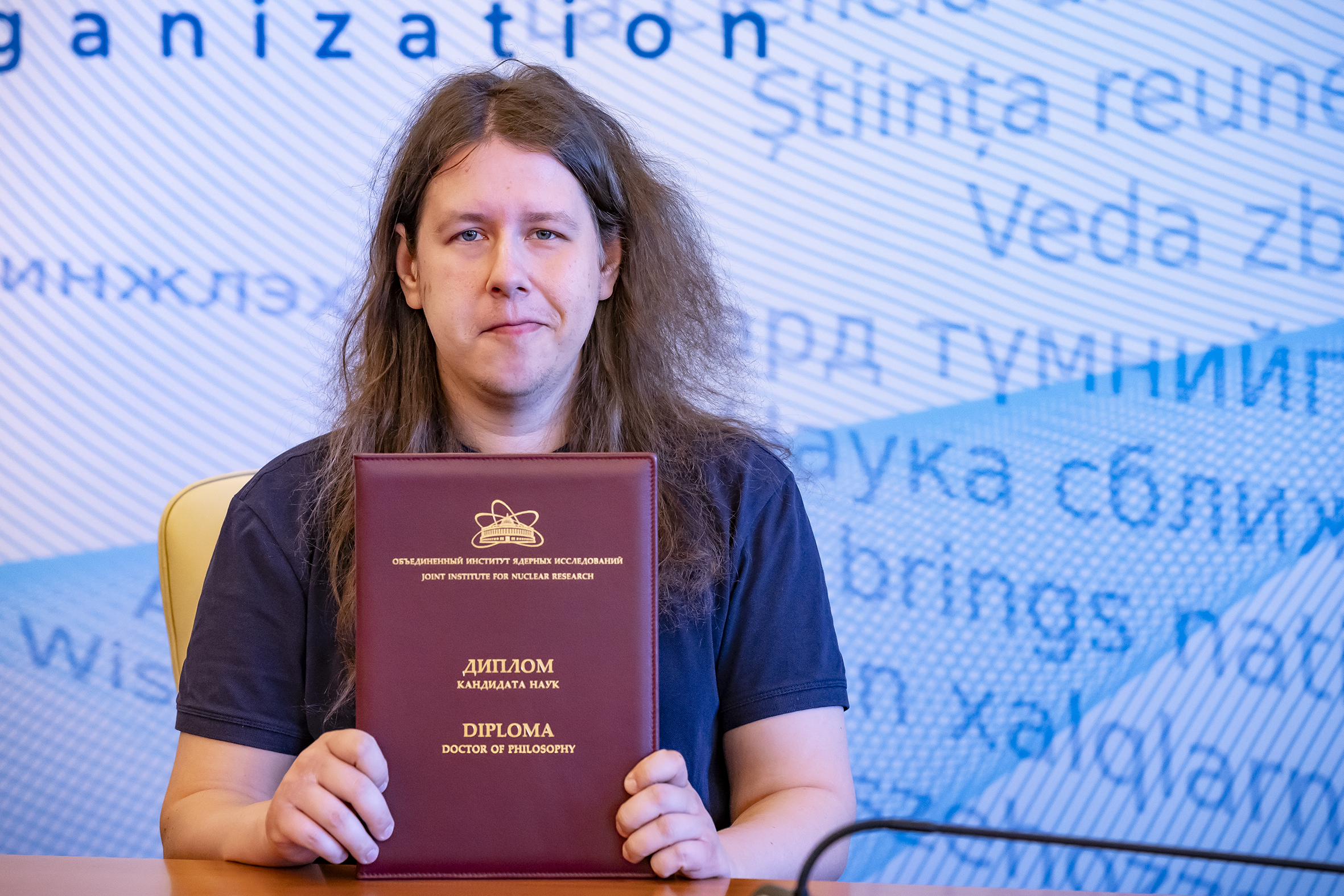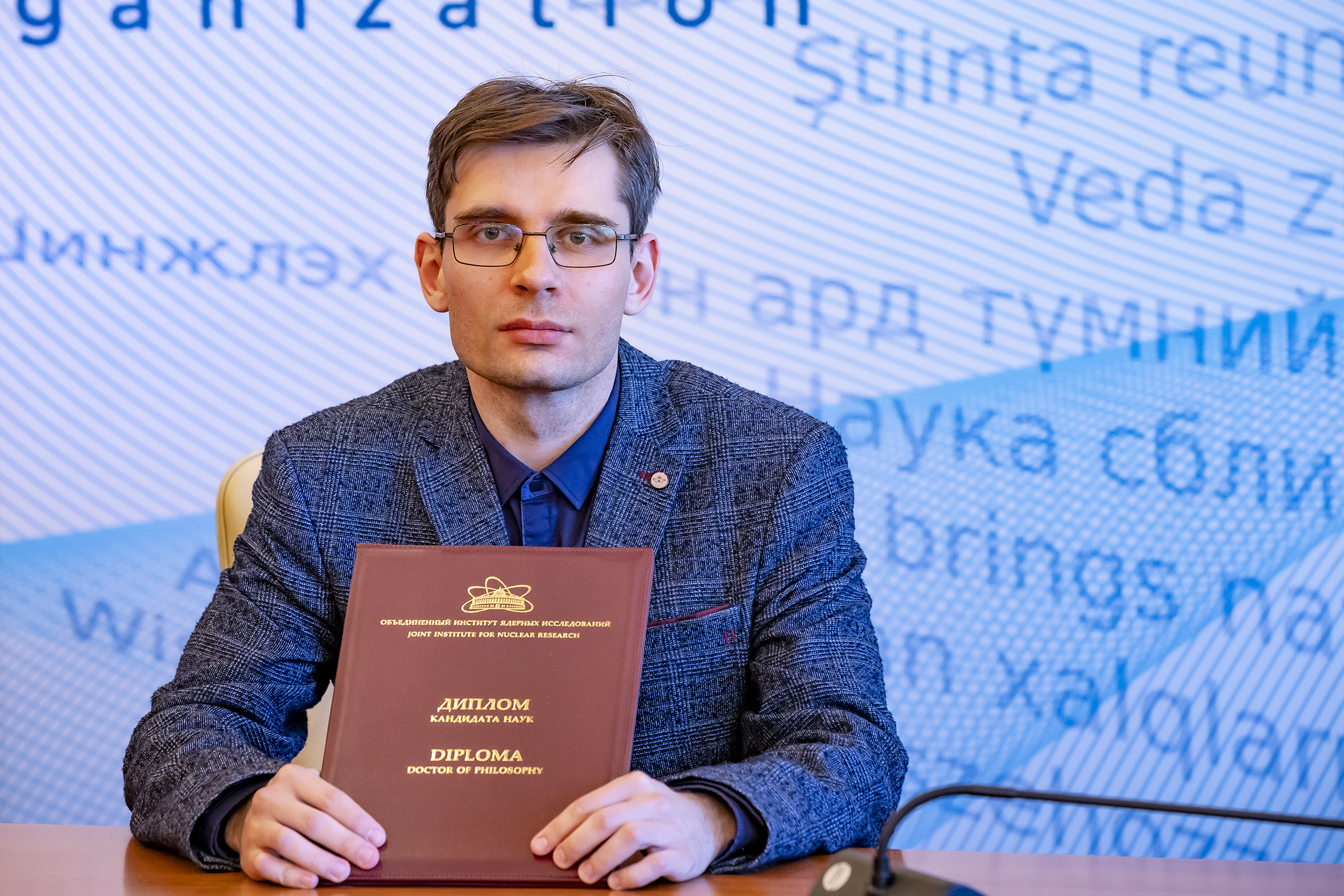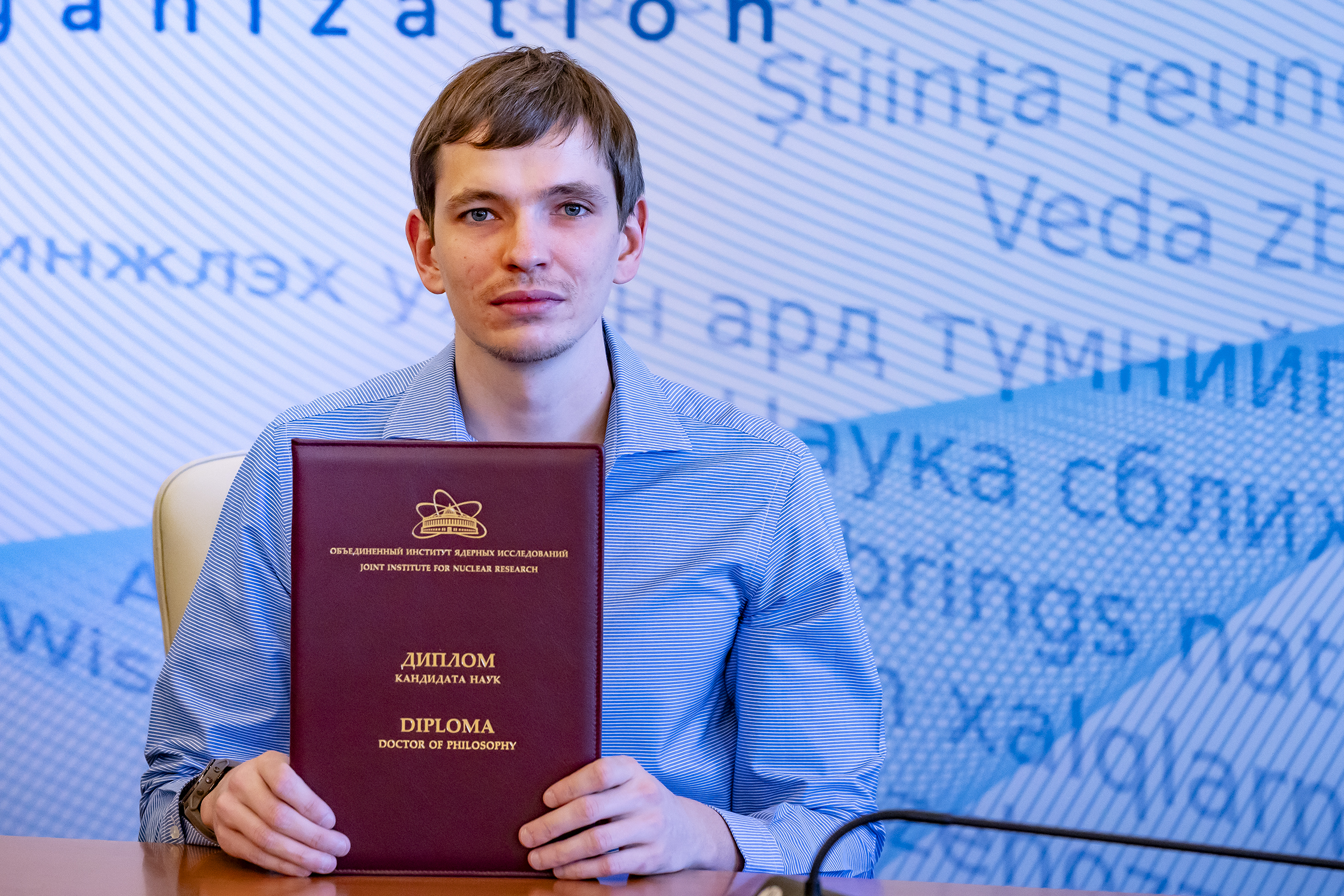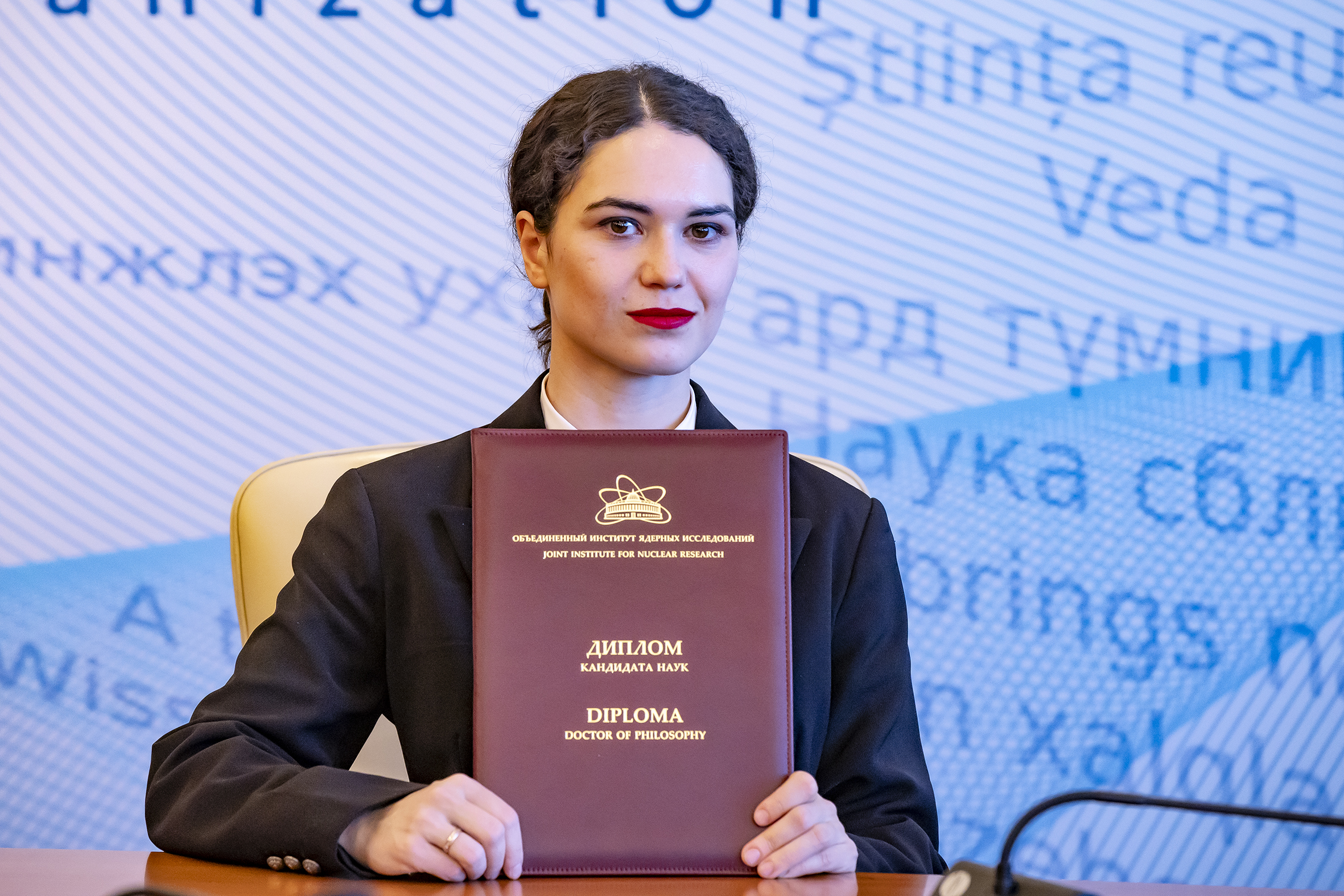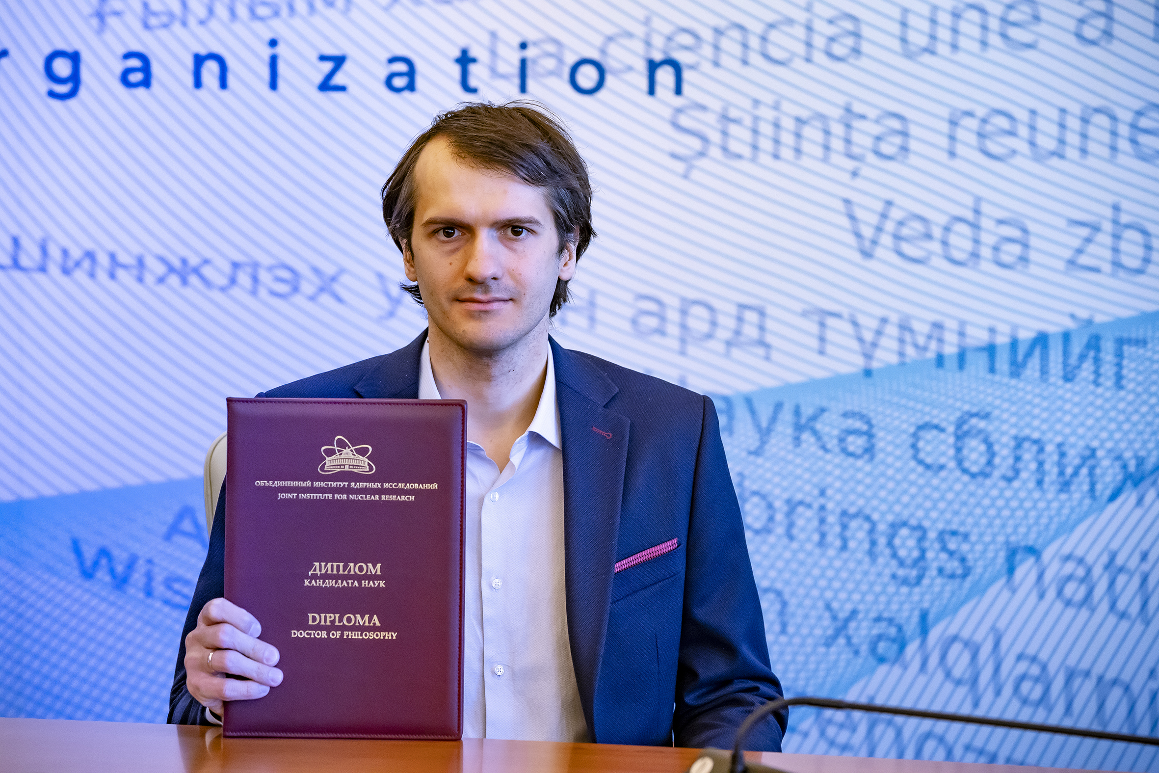 On 5 April, a ceremonial awarding of diplomas for scientific degrees was held at the JINR International Conference Centre. Eight scientists were awarded PhD diplomas. According to tradition, the event was held in a solemn atmosphere with the participation of representatives of the JINR Qualification Committee, guests and scientific secretaries of the dissertation councils in which the defenses were held.