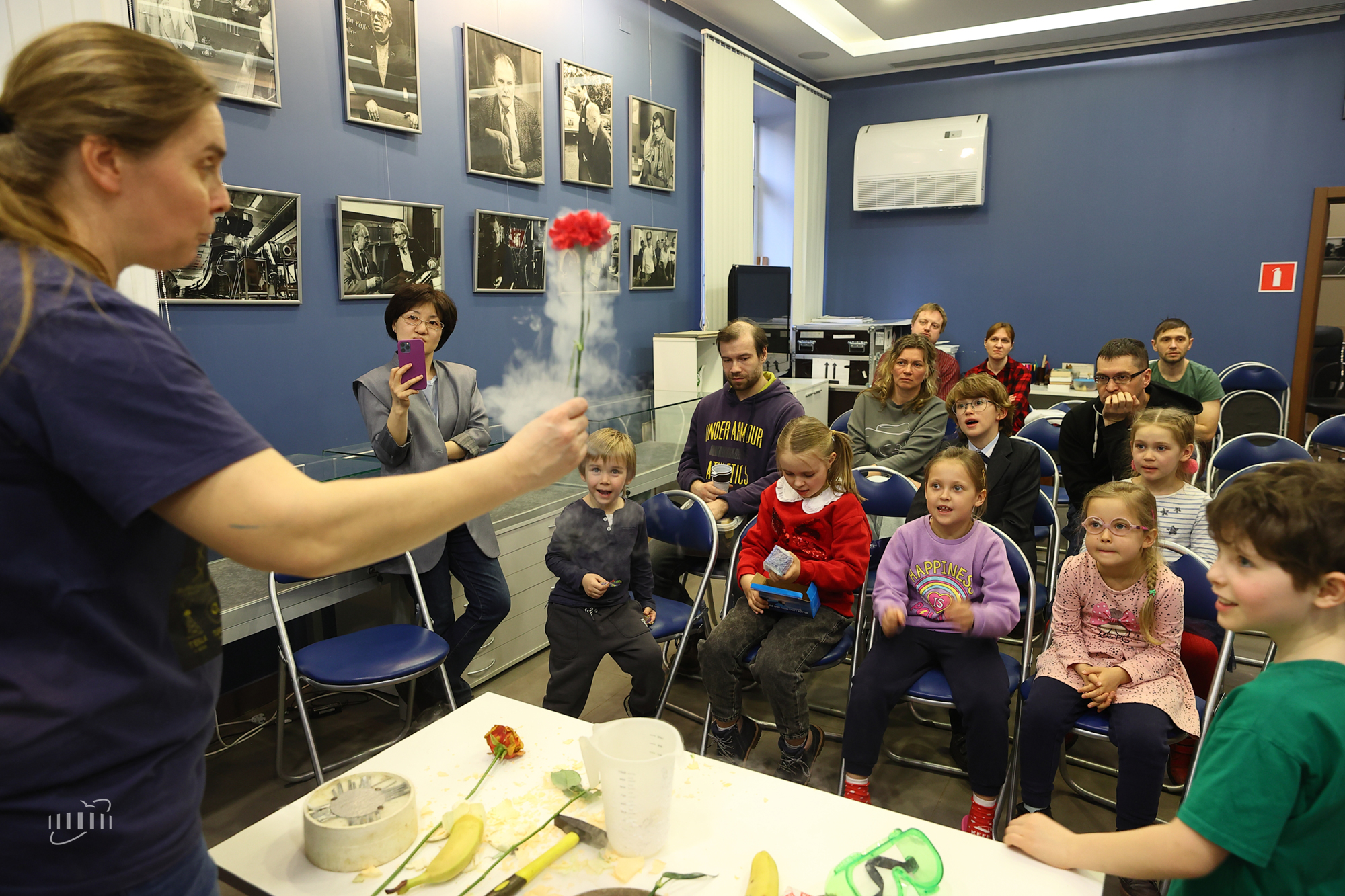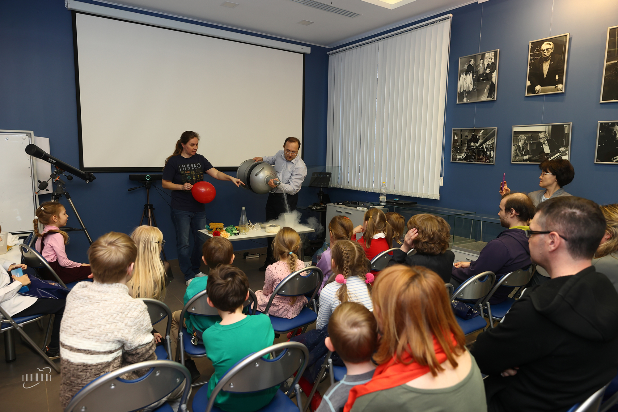 JINR employees Dmitry Dryablov and Anastasia Zlotnikova demonstrated to children the Extreme Cooling experiment with liquid nitrogen. As usual, the readings ended with an intellectual quiz for child-parent teams. The game was a delight not only for children, but also for adults. All the speakers were granted scientific puzzles, diplomas, and merchandise of the Joint Institute.