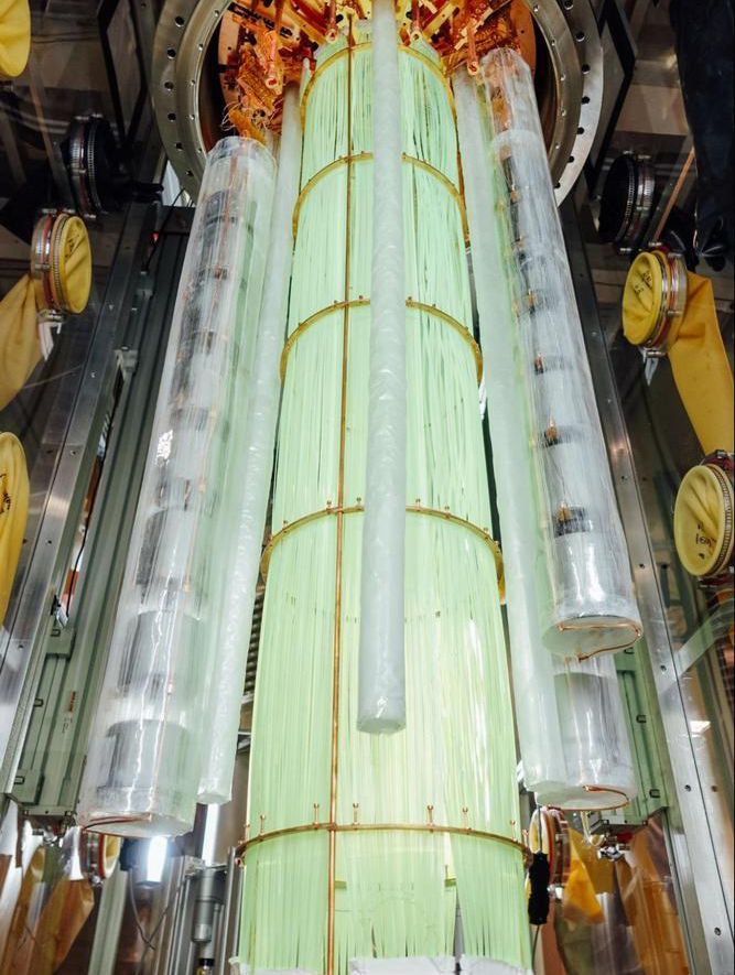 After a rather long preparatory phase, the LEGEND experiment moved on to the final stage — the installation of the first batch of detectors and a liquid argon instrumentation. The collaboration decided first to assemble 4 out of 12 planned strings of detectors (the total mass of 76Ge is about 60 kg) in order to test all components of the experimental setup. It is noteworthy that final materials were used during the installation. This will allow assessing the real background level after collecting data for several months. Even now, the mass of detectors exceeds the total mass of detectors in the predecessor GERDA experiment by more than 50%. At the end of this stage, the assembling of all available detectors is planned.