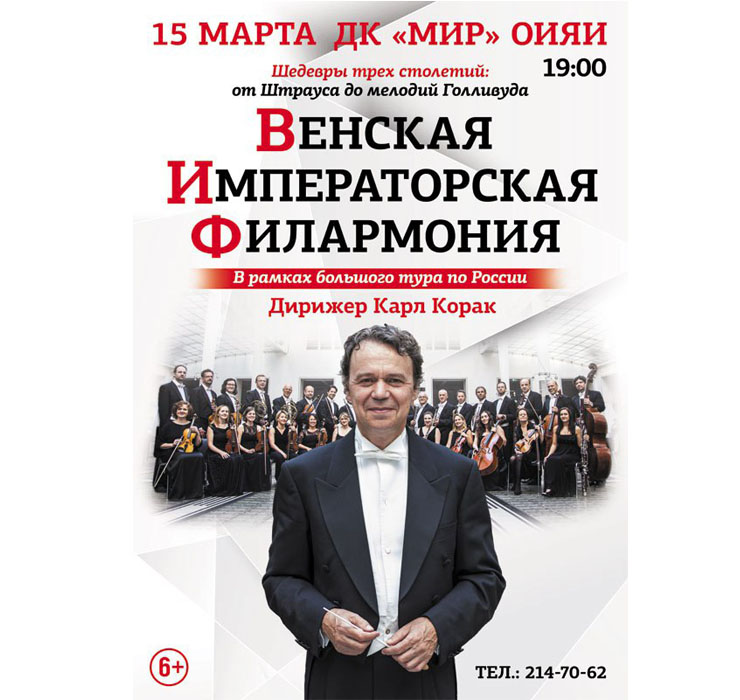 The concert is prepared by the Vienna Empire Philharmonic in the frames of the tour around Russia. The conductor – Karl Korak.