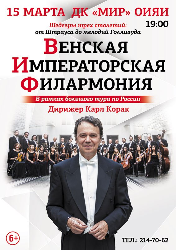 The concert is prepared by the Vienna Empire Philharmonic in the frames of the tour around Russia. The conductor – Karl Korak.