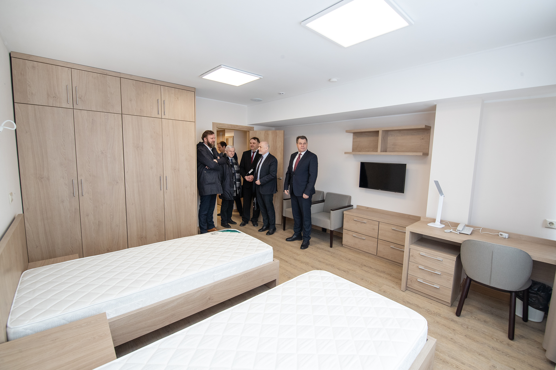 As part of the visit, Vítězslav Pivoňka took part in the opening ceremony of the Dubna Hotel (2, Moskovskaya street) repaired by the order of JINR by the Czech construction company ASARKO. Moreover, the Cezch diplomats visited the open multimedia exhibition being prepared in honour of the 65th jubilee of the Institute. The delegation visited the Laboratory of High Energy Physics where the guests were acquainted with the progress in the implementation of the JINR flagship mega-science project NICA. In addition, in the framework of the programme of the visit, an informal meeting of Vítězslav Pivoňka with representatives of the Czech national group in JINR was organized.