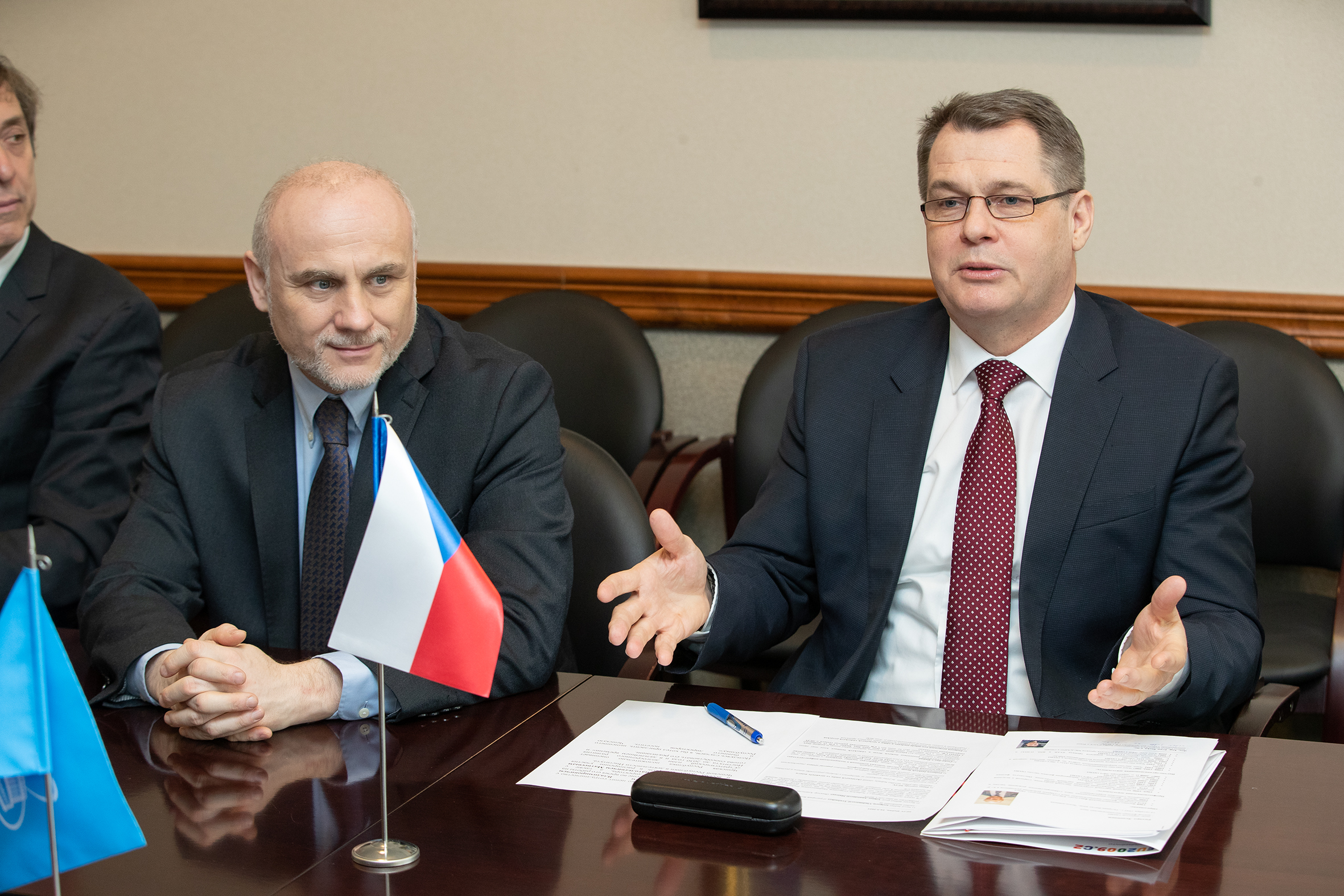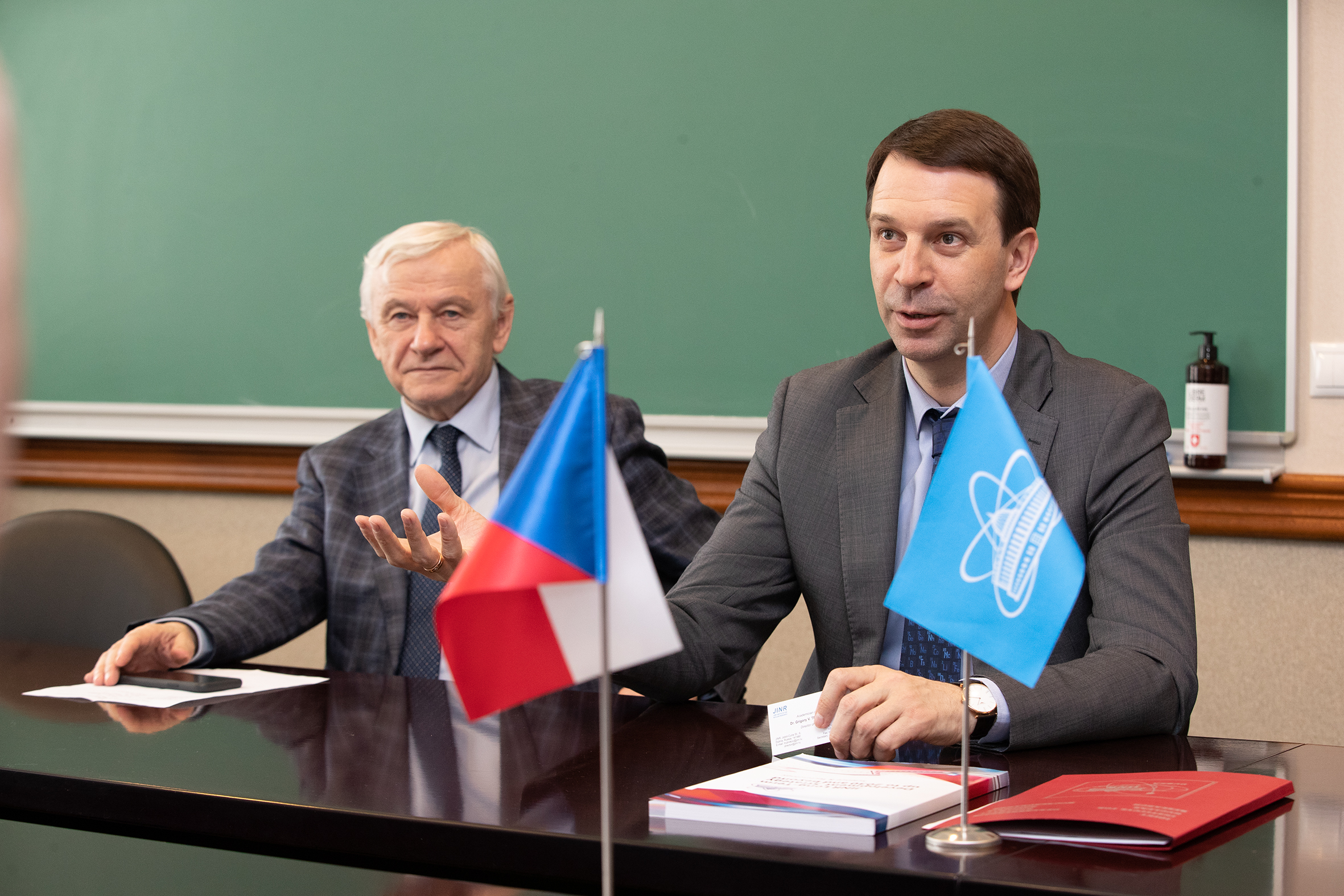 Welcoming the high-ranking guest, JINR Director Grigory Trubnikov noted the active and fruitful participation of Czech scientists in the scientific and organizational activities of the Institute, as well as the considerable contribution of high-tech Czech enterprises to the development of the Institute’s scientific infrastructure. Vítězslav Pivoňka in his response welcomed Academician Trubnikov as Director of JINR and expressed gratitude to JINR ex-Director, Scientific Leader of the Institute Victor Matveev for many years of fruitful joint work.