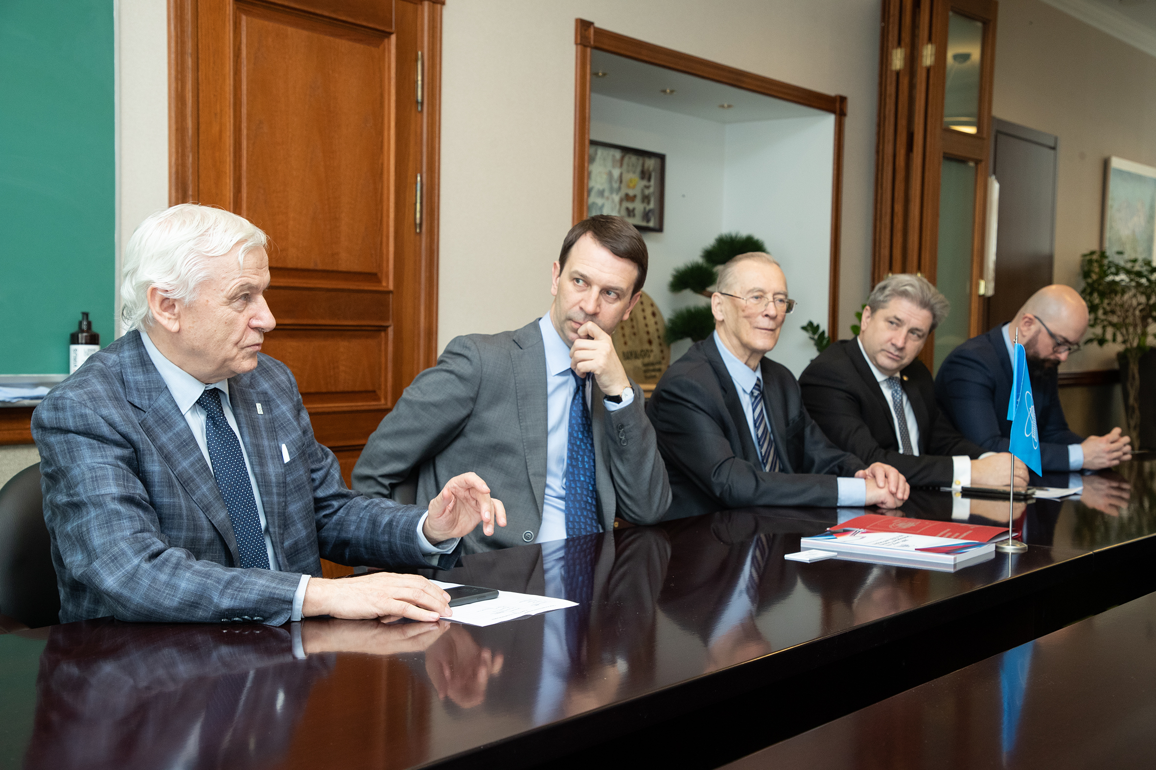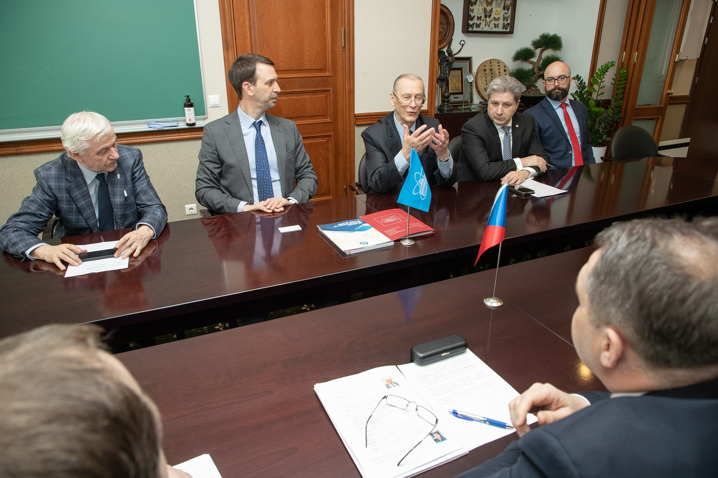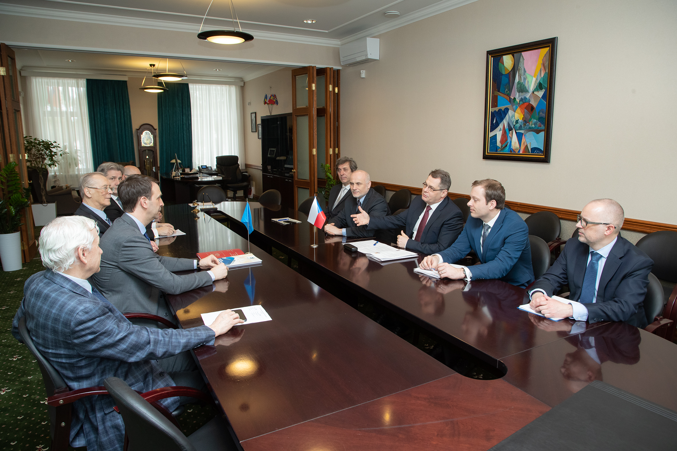 In the JINR Directorate, JINR Director Academician Grigory Trubnikov, Scientific Leader of the Institute Academician Victor Matveev, Vice-Director Richard Lednický, and Head of the International Cooperation Department Dmitry Kamanin welcomed the high-level delegation. Deputy Plenipotentiary of the Czech Government in JINR Ivan Štekl and Head of the Czech national group in JINR Vratislav Chudoba also took part in the meeting.